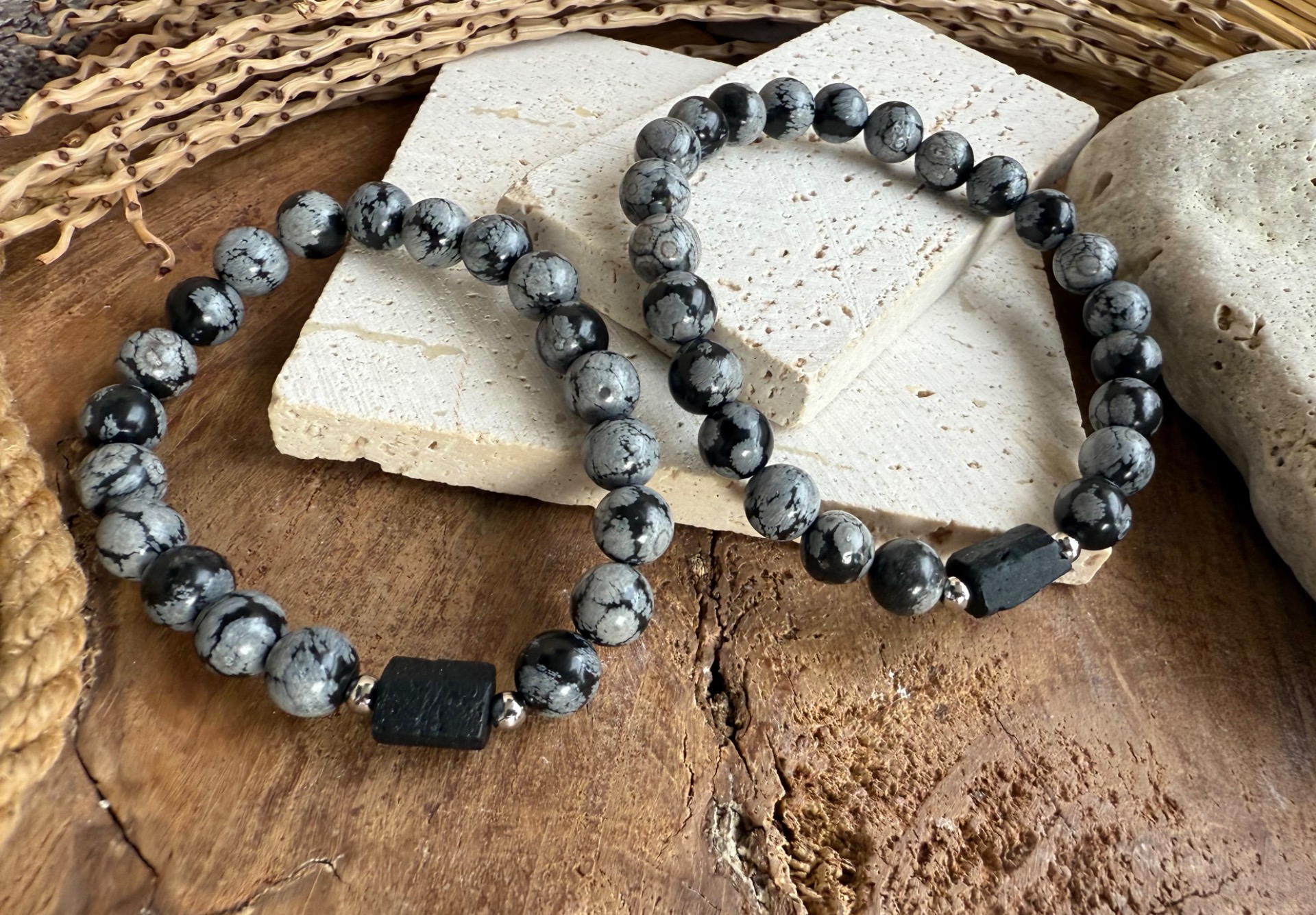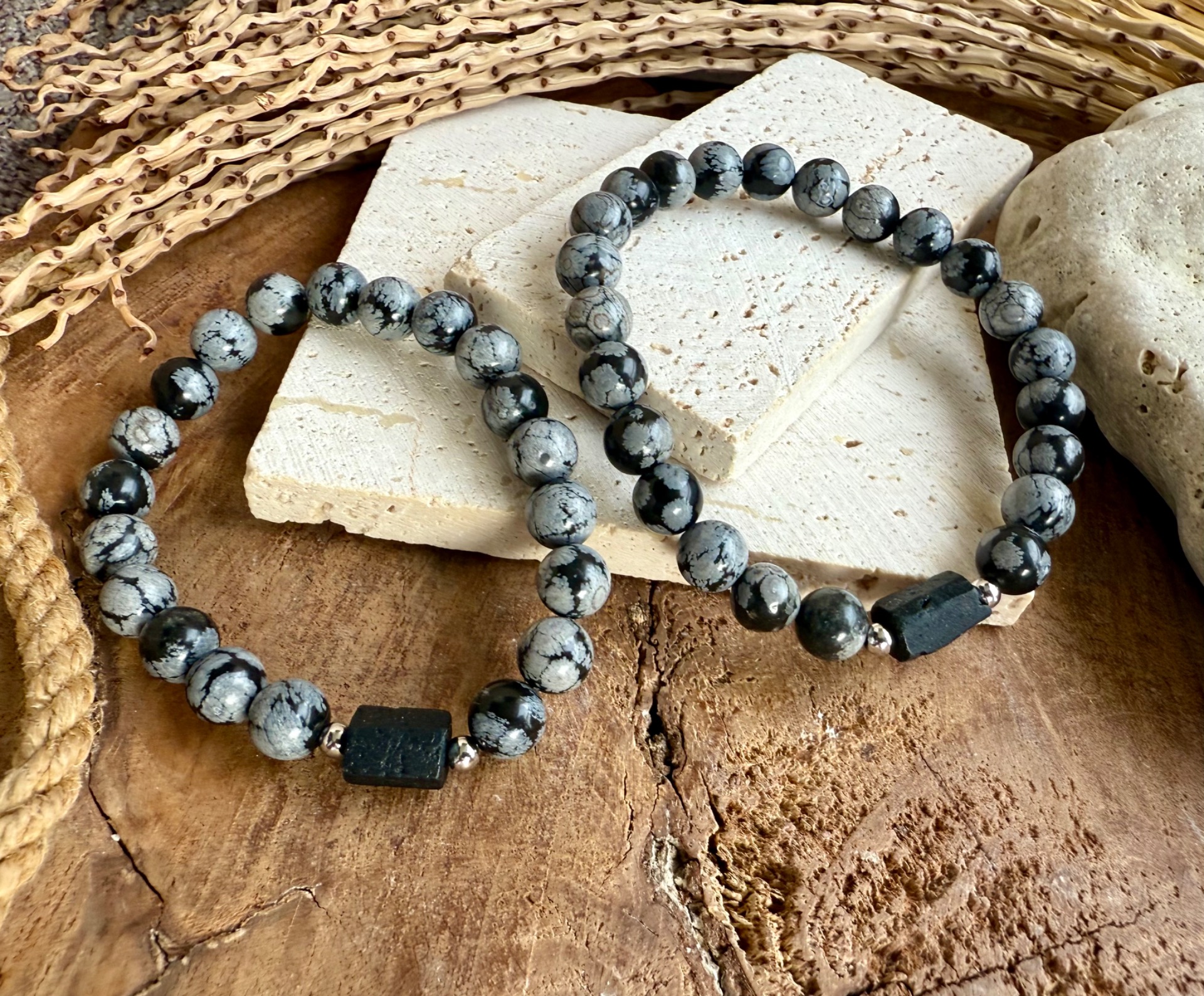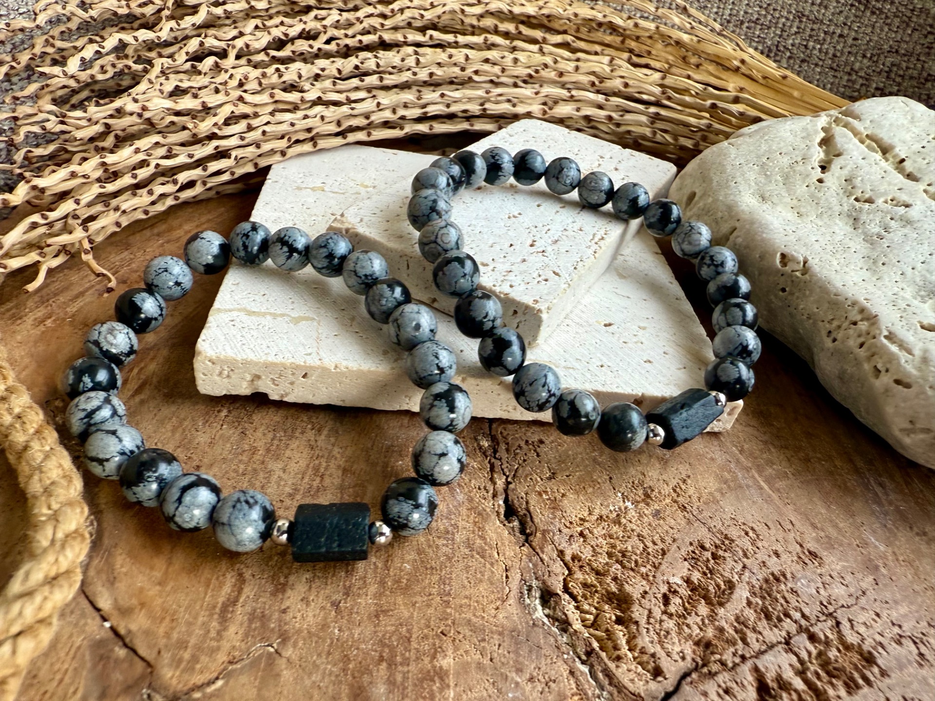 Partnerské náramky – Obsidián vločkový + čierny turmalín