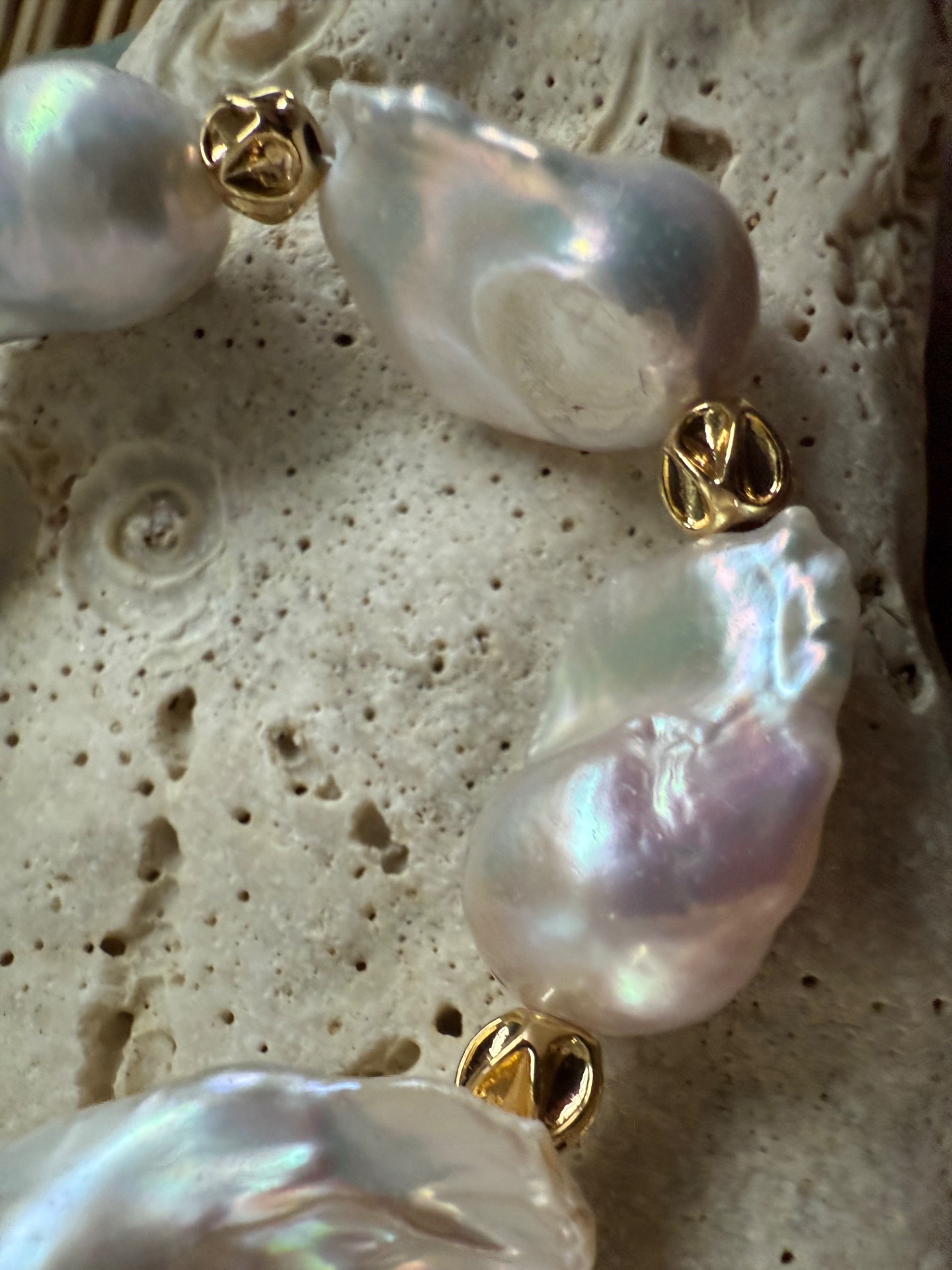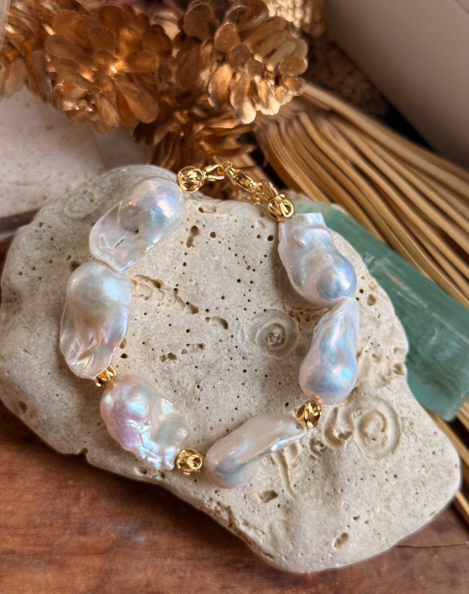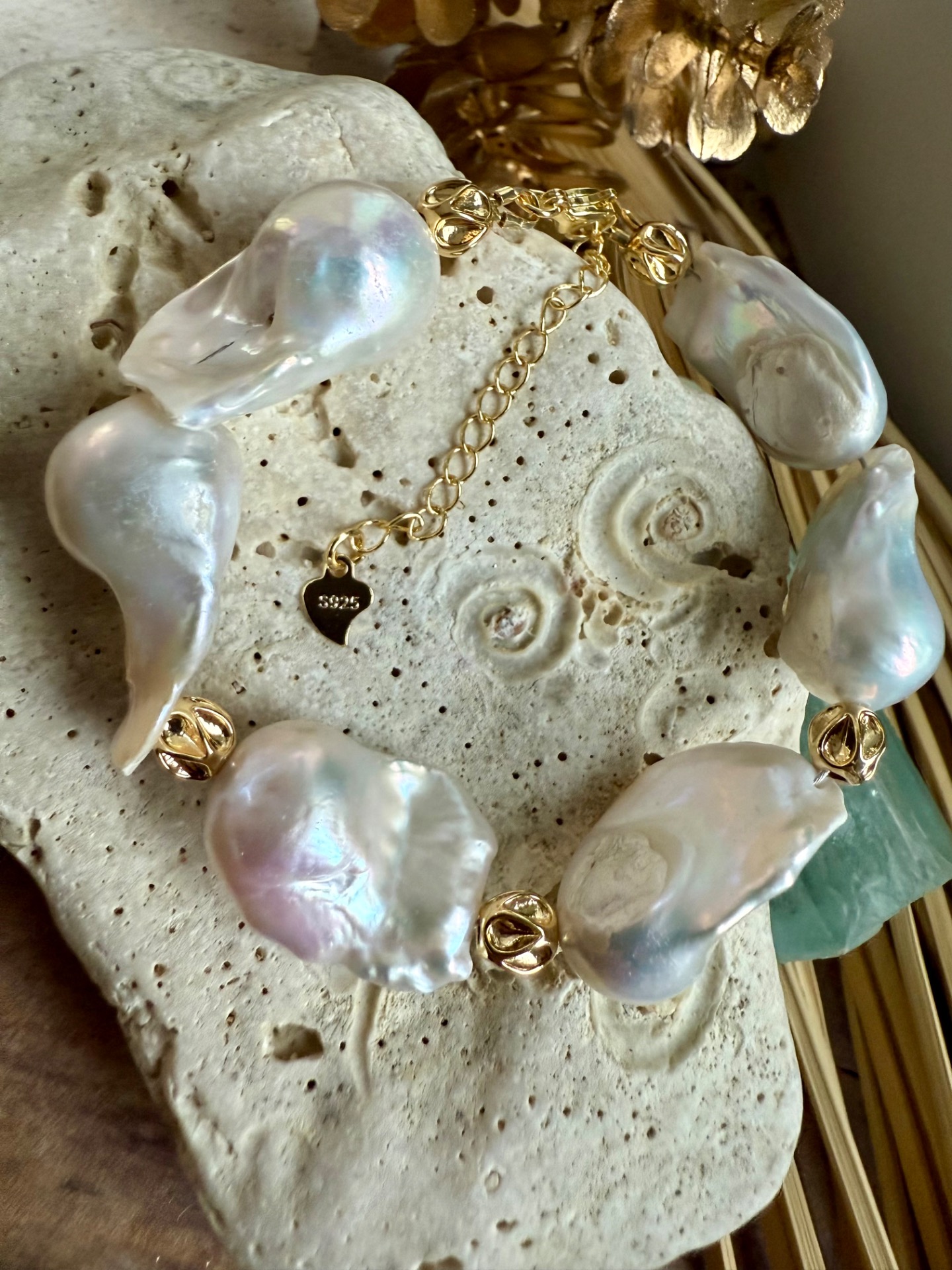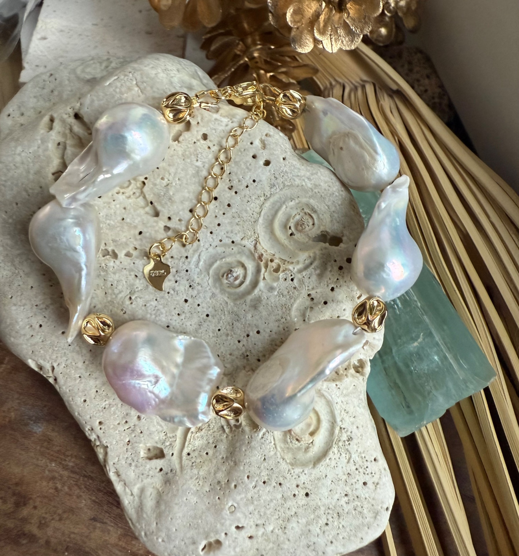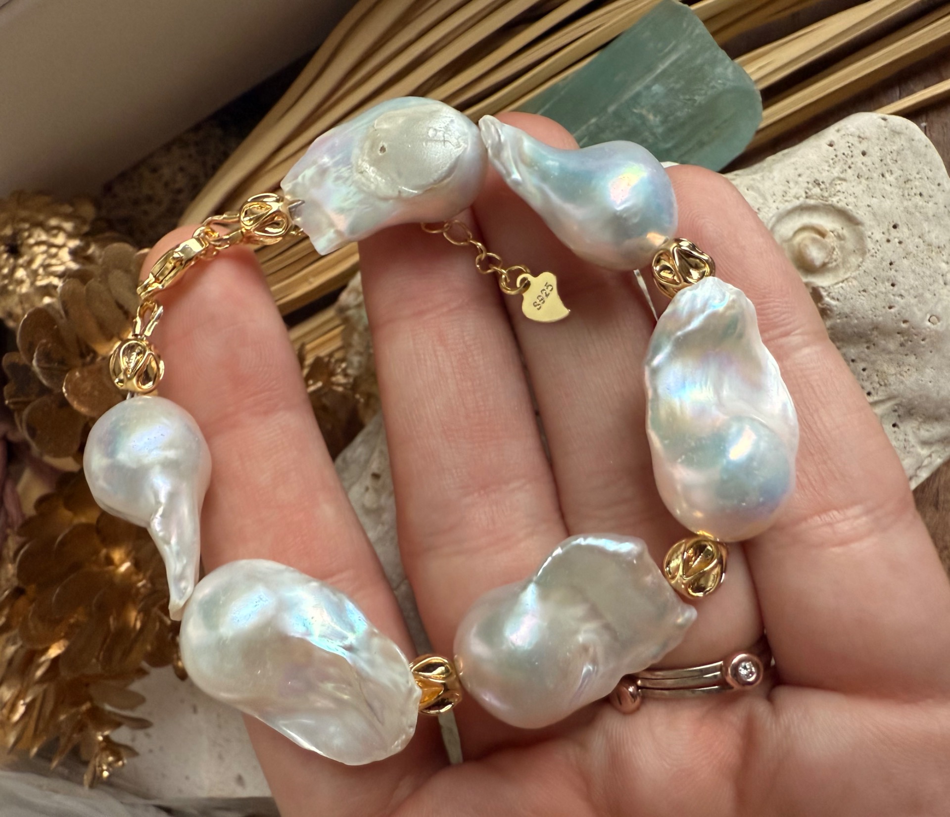 Jemný a luxusný náramok z autentických barokových perál, ktorý zaujme svojou prirodzenou nepravidelnosťou a jedinečným tvarom každej perly.