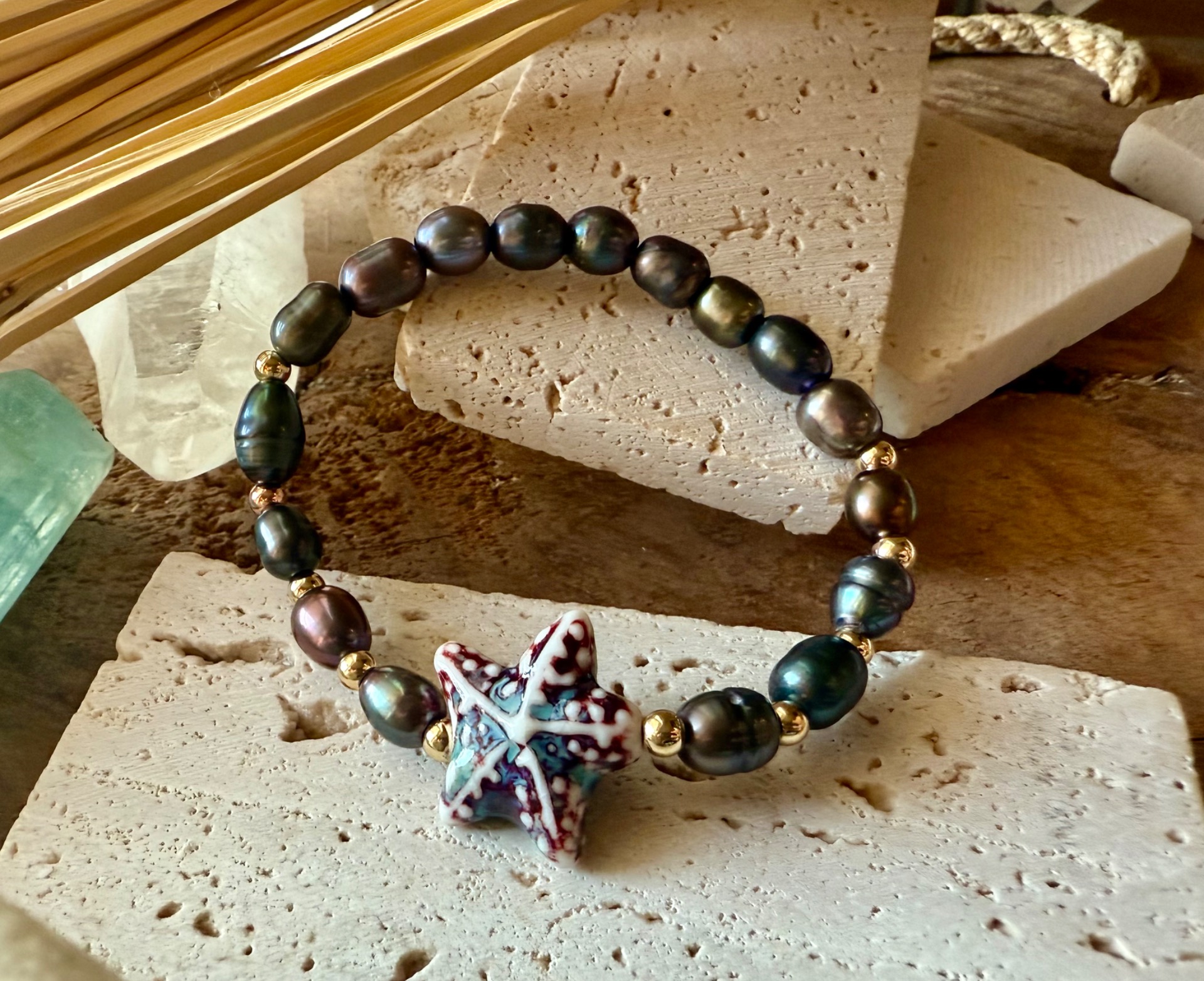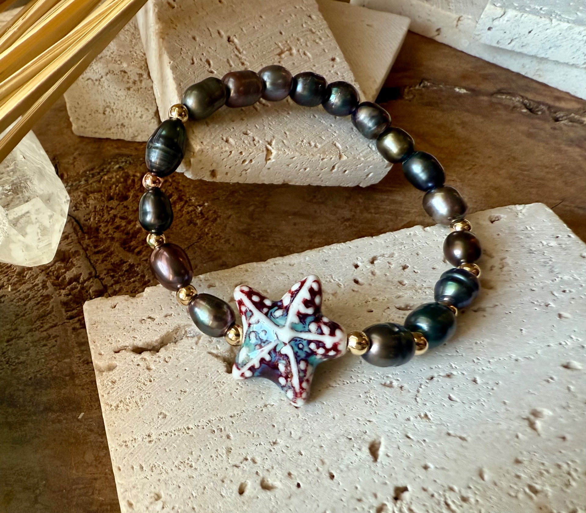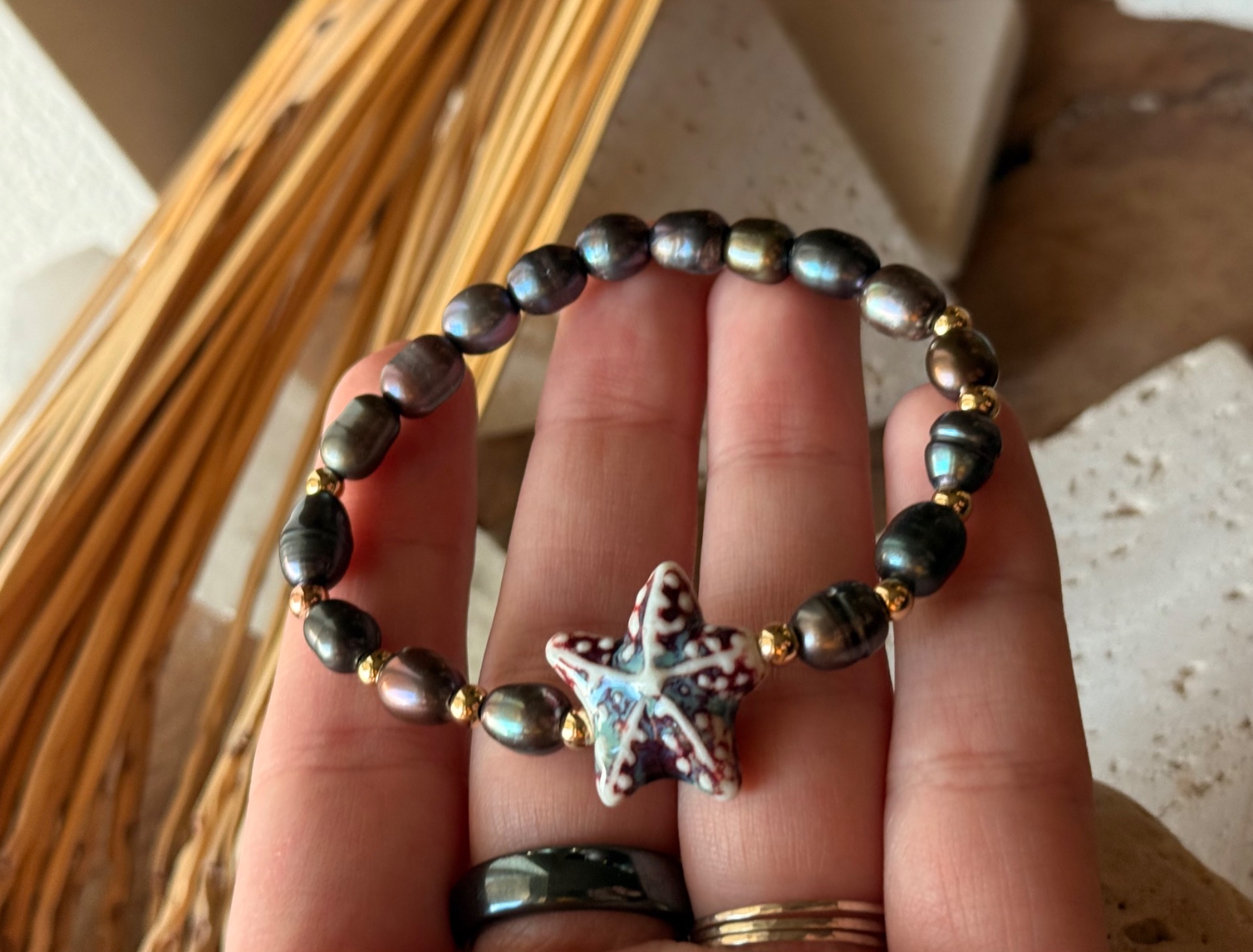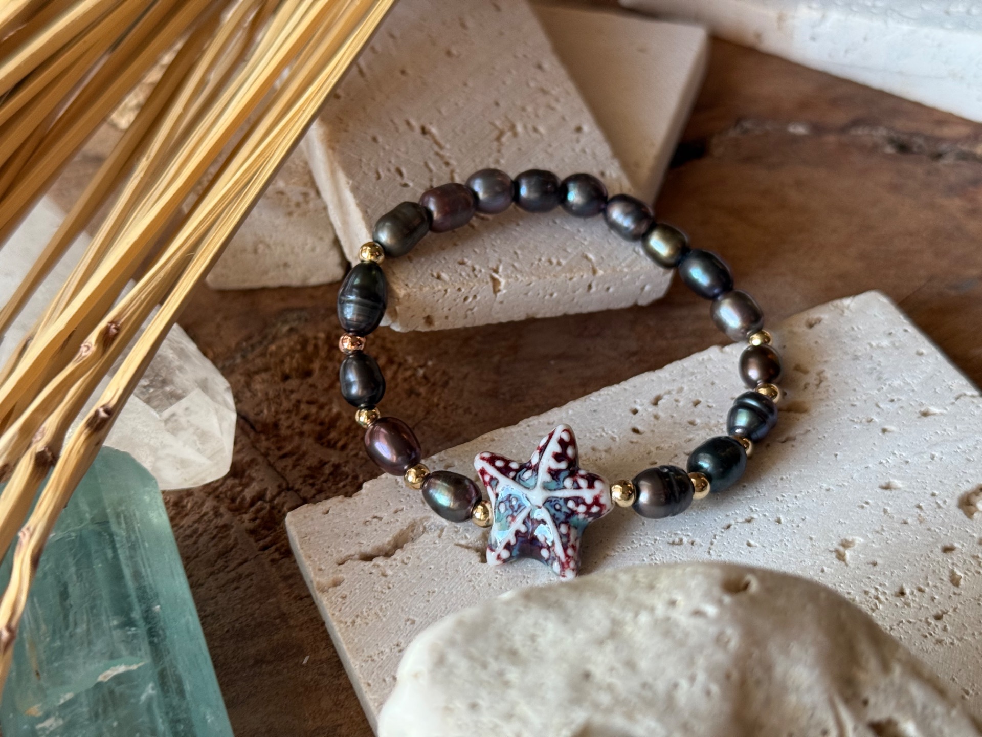 náramok z čiernej perly & porcelánovej hviezdice – kusovka