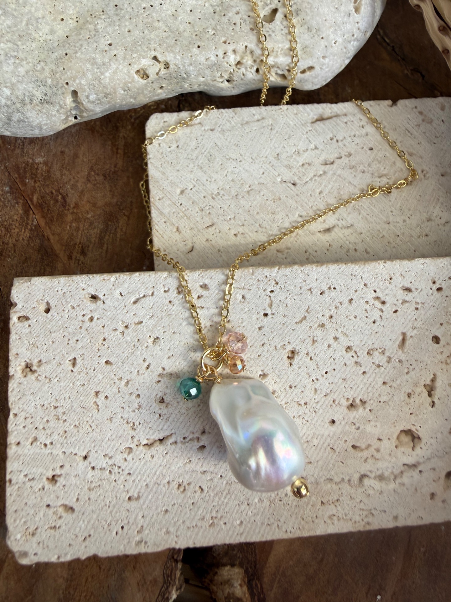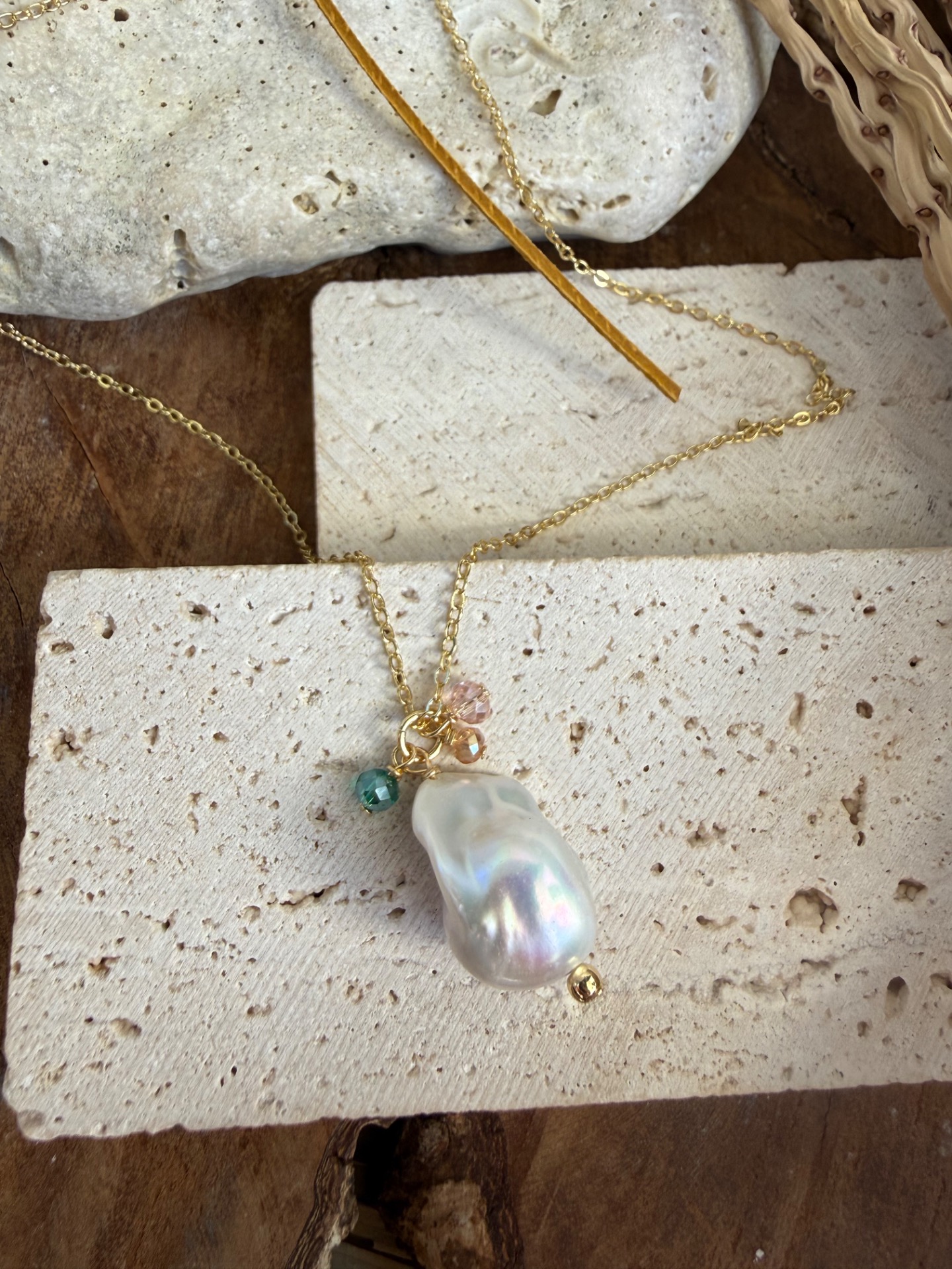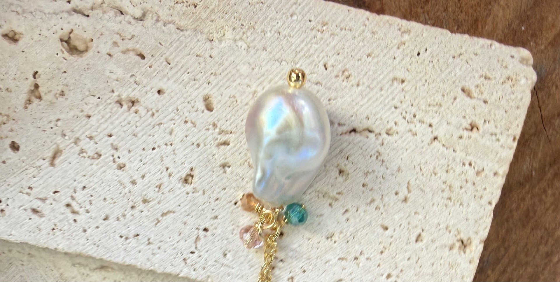 Tento jemný a zároveň výrazný náhrdelník s barokovou perlou v sebe nesie čistú energiu leta, mora a prirodzenej ženskosti. Každá perla je unikát – nepravidelná, autentická, dokonalá vo svojej nedokonalosti.