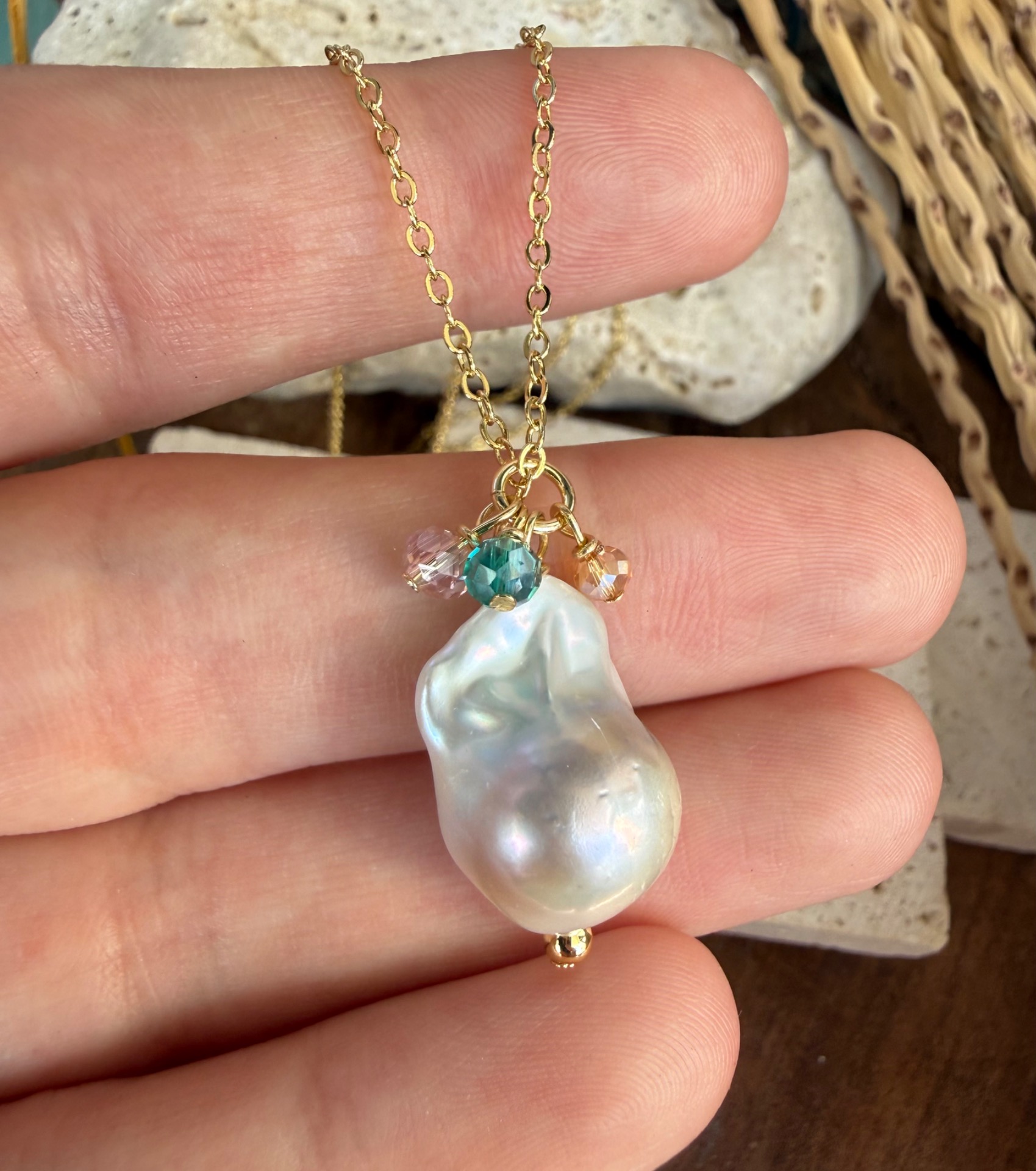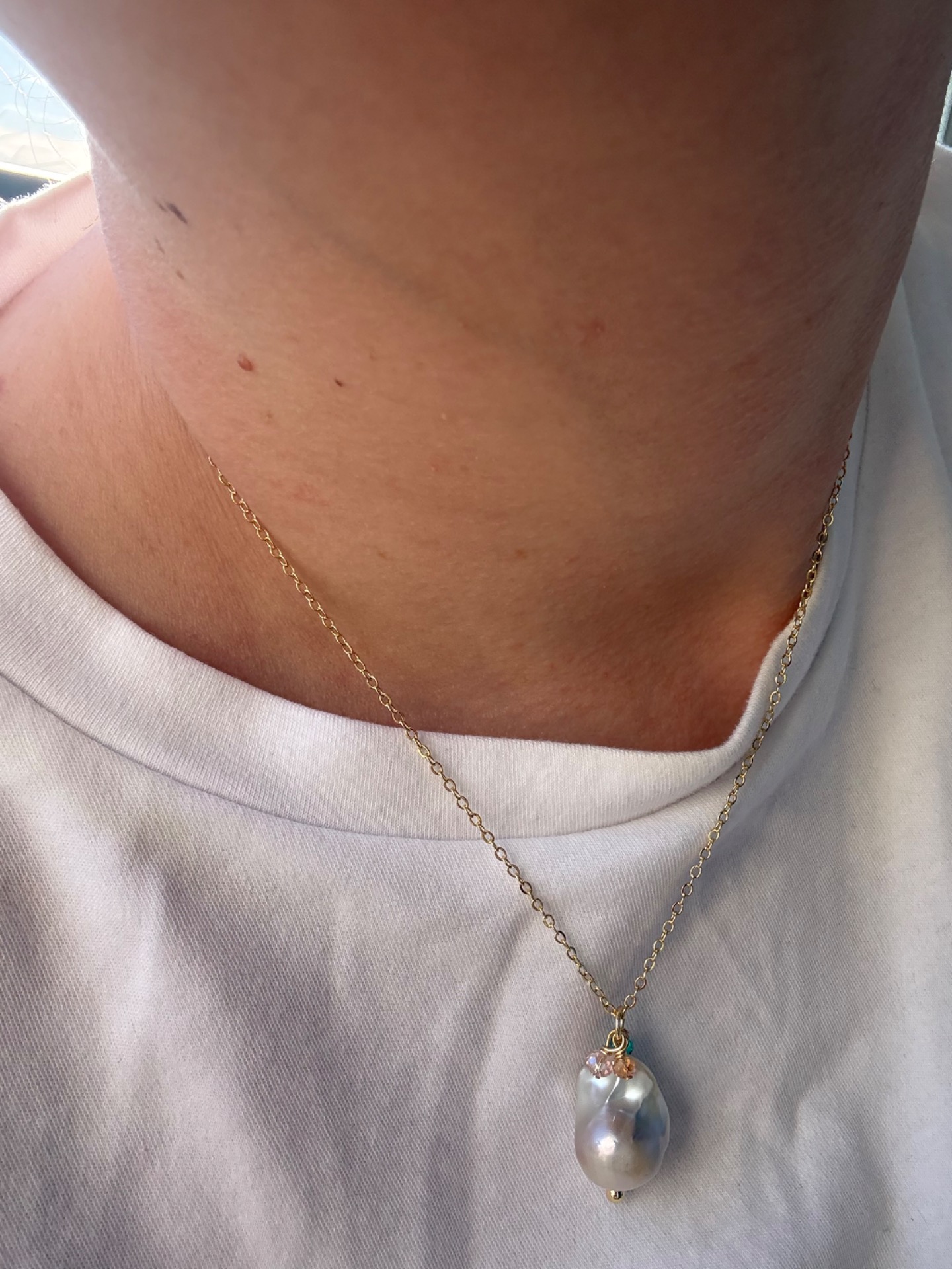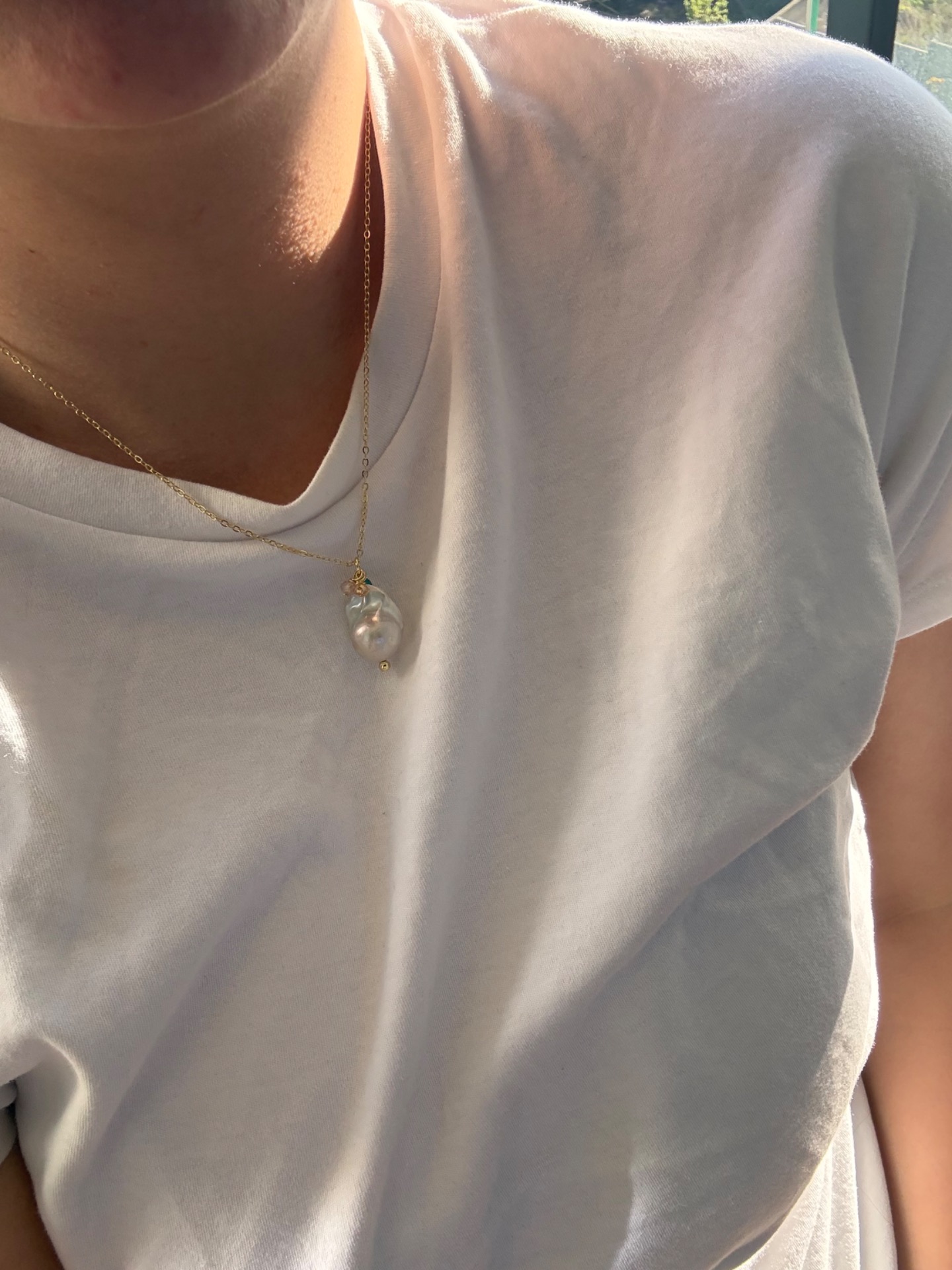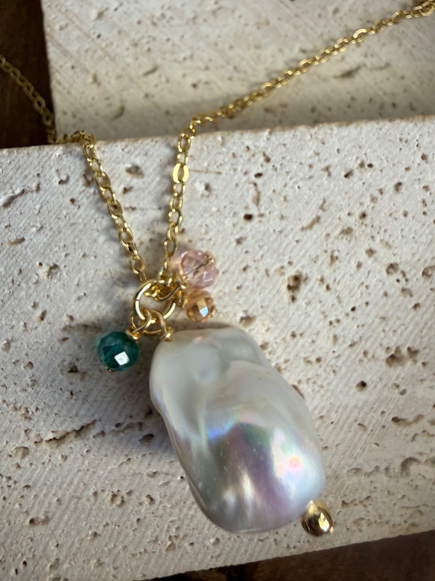 Tento jemný a zároveň výrazný náhrdelník s barokovou perlou v sebe nesie čistú energiu leta, mora a prirodzenej ženskosti. Každá perla je unikát – nepravidelná, autentická, dokonalá vo svojej nedokonalosti.