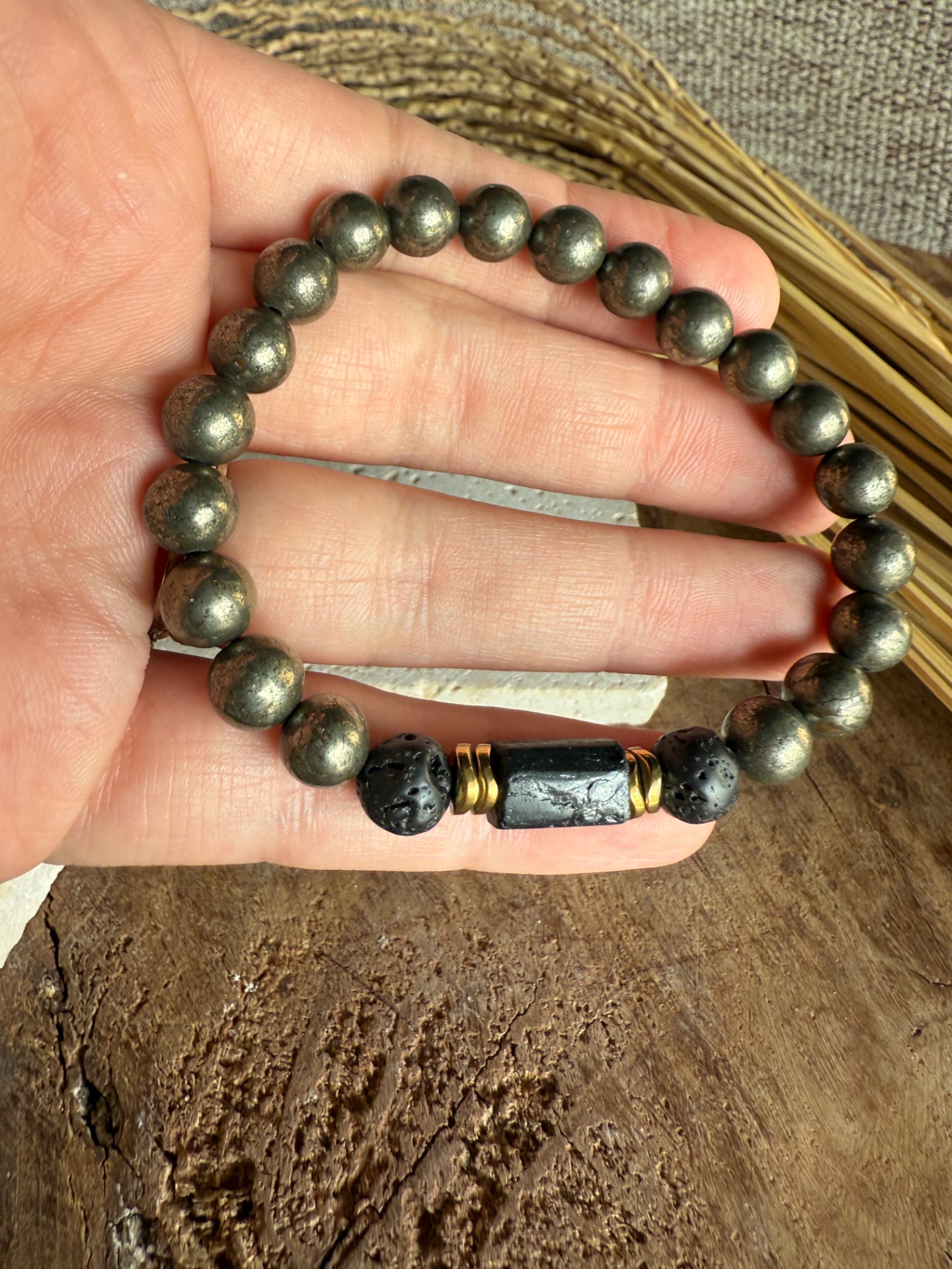 Náramok "Pyrit & Čierny turmalín – ochrana a hojnosť"