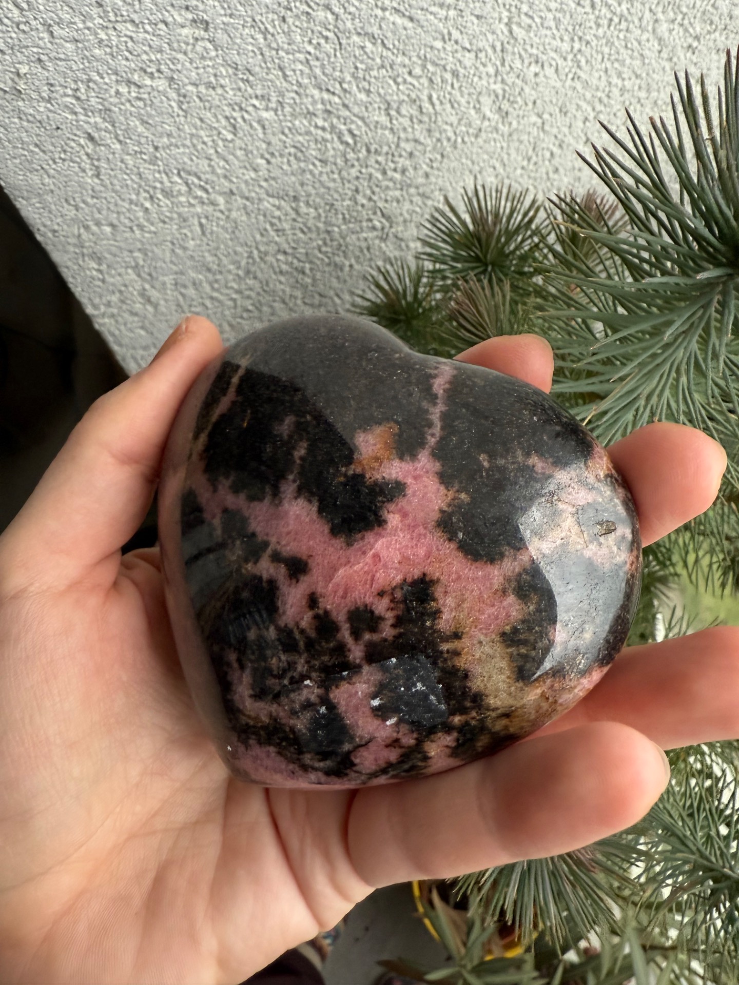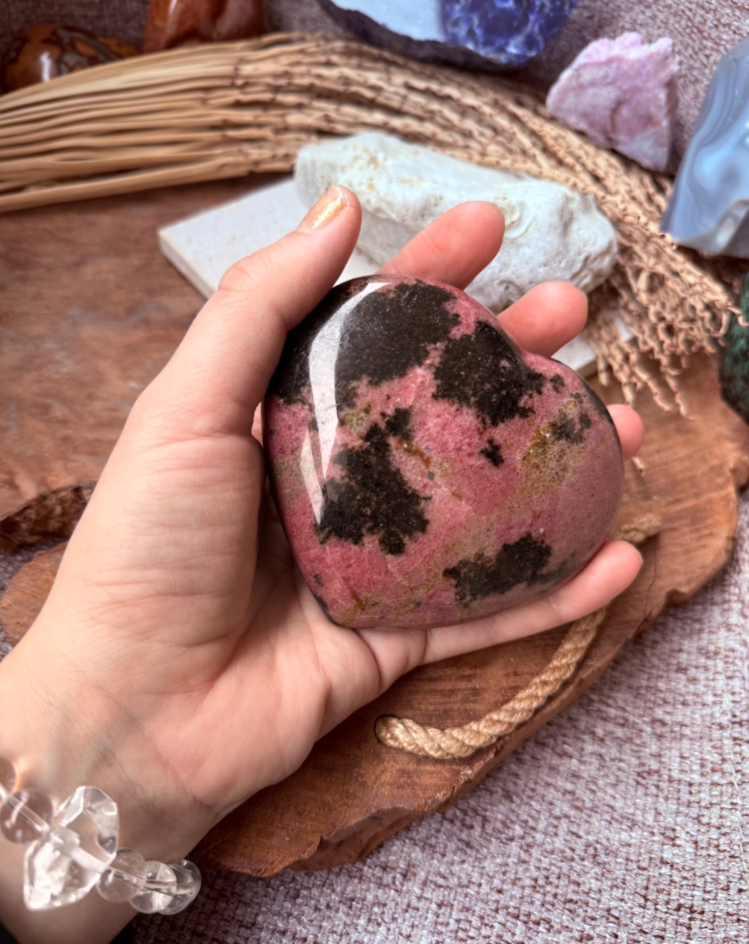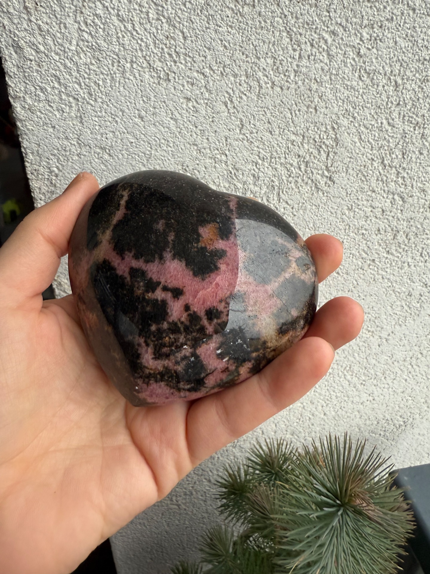Toto srdce z rodonitu váži 0,662 kg a nesie jemnú, liečivú energiu lásky a vnútorného pokoja. Rodonit podporuje emočné uzdravenie, uvoľňuje staré emocionálne rany a pomáha budovať harmonické vzťahy.