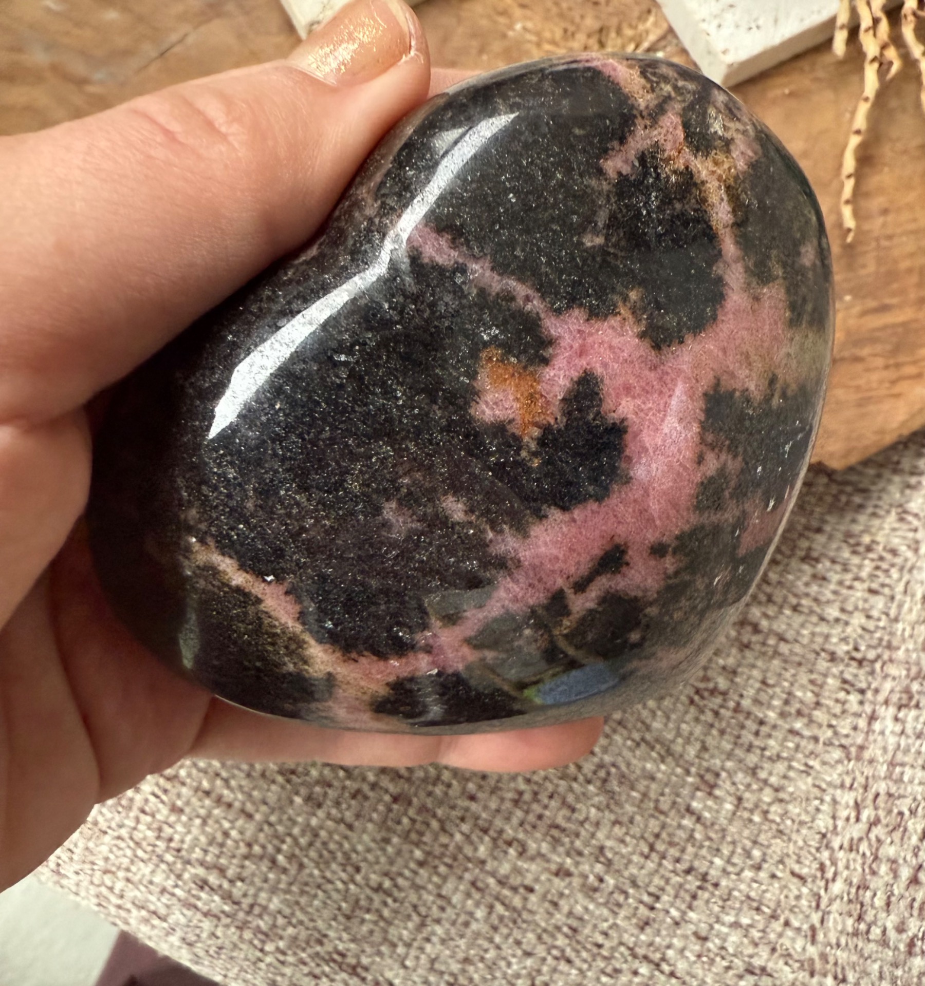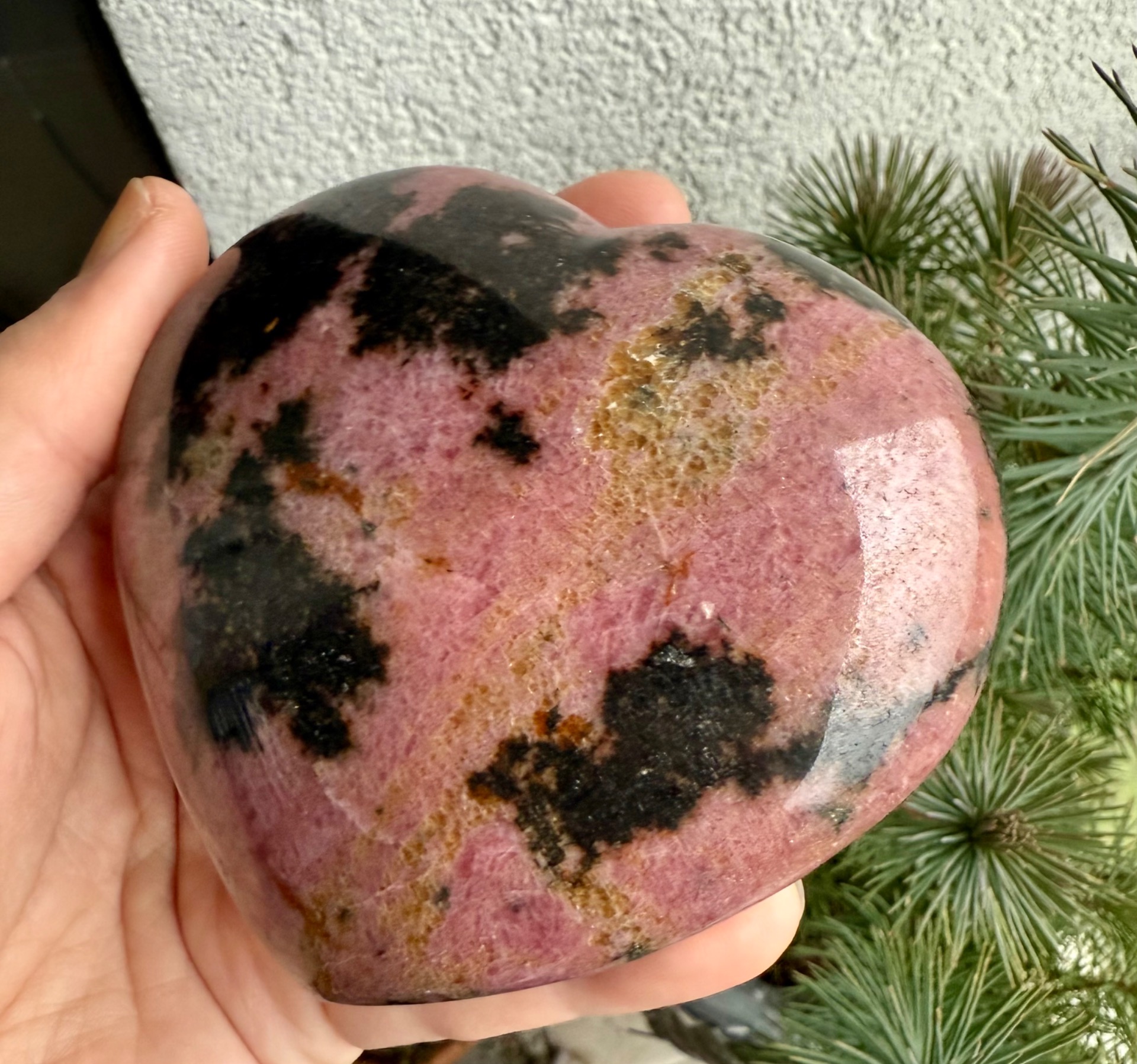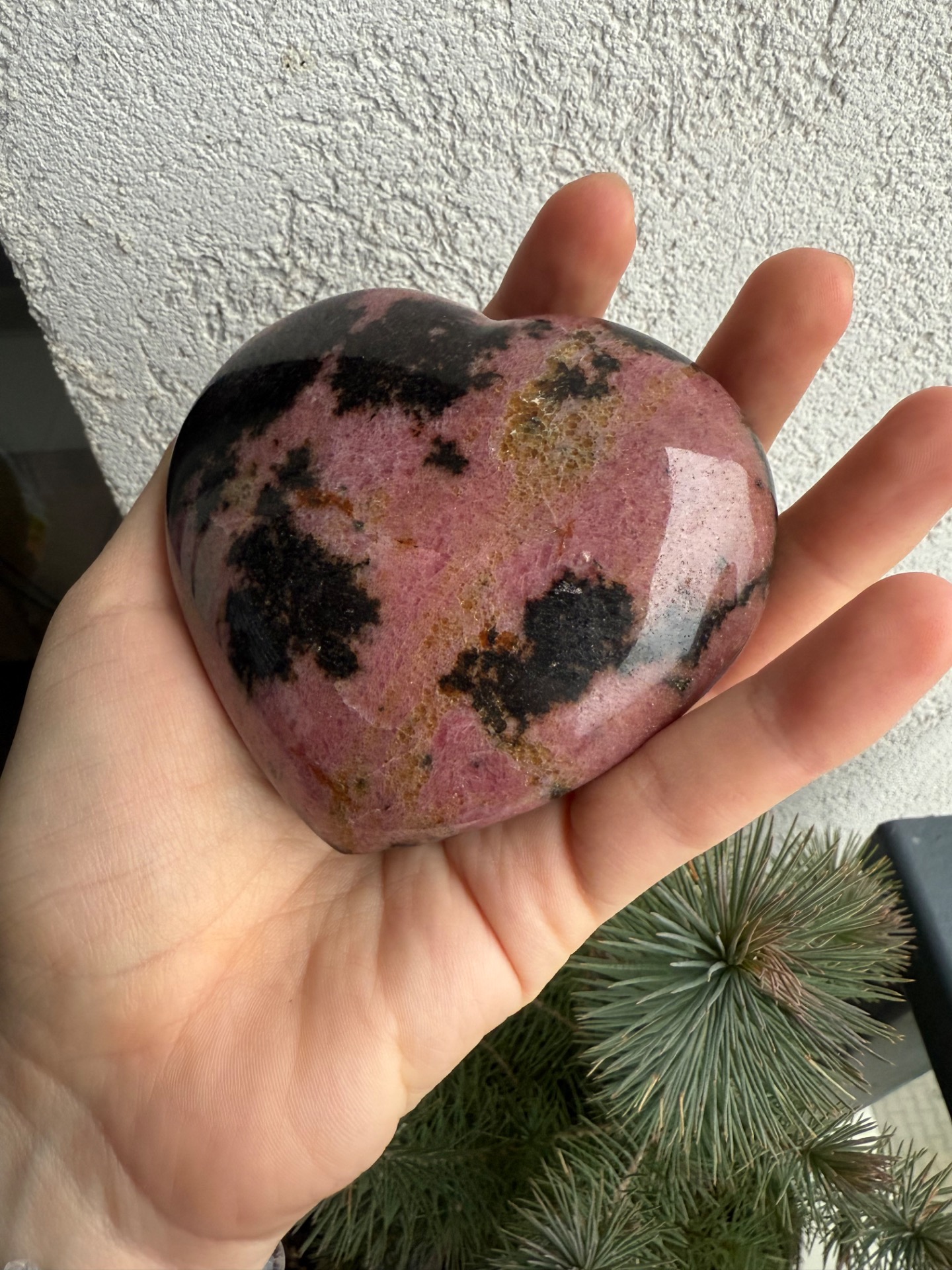 Toto srdce z rodonitu váži 0,662 kg a nesie jemnú, liečivú energiu lásky a vnútorného pokoja. Rodonit podporuje emočné uzdravenie, uvoľňuje staré emocionálne rany a pomáha budovať harmonické vzťahy.