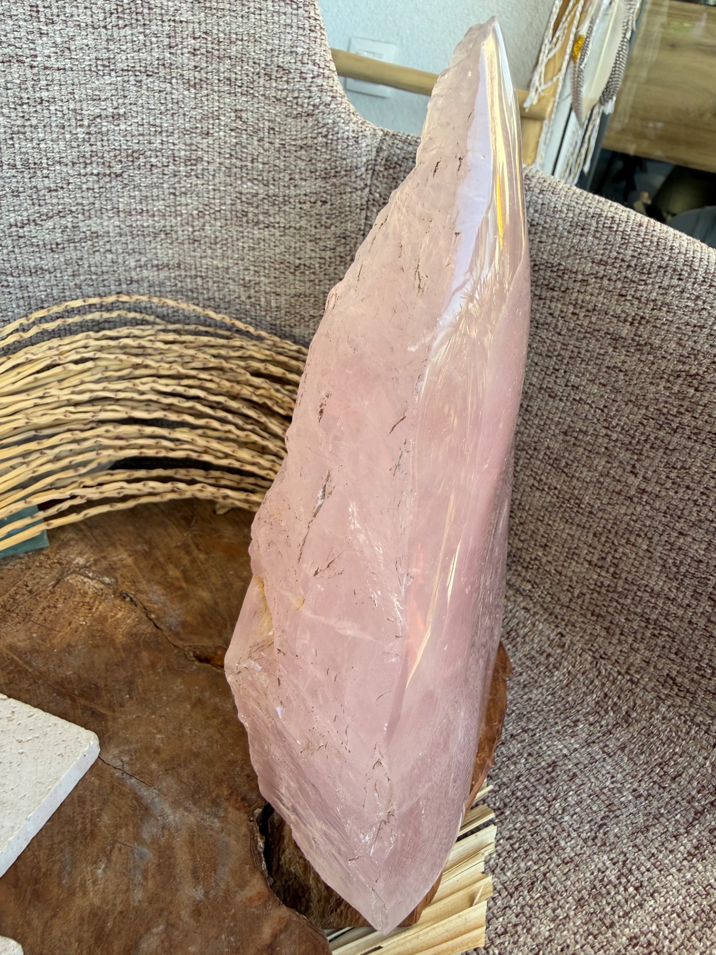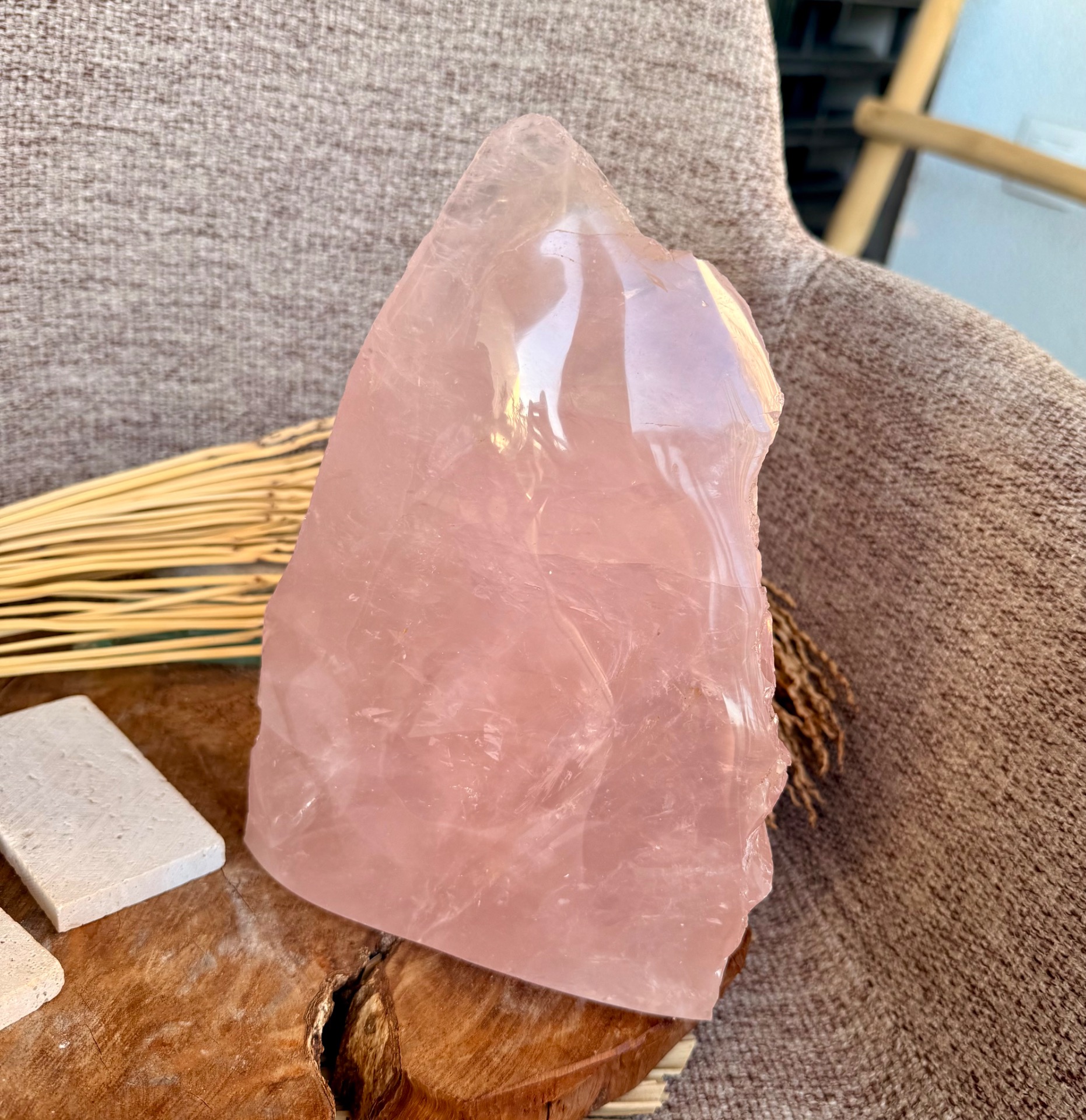 Táto kombinácia vytvára jedinečný kontrast: jemnosť, plynutie a láskavosť na jednej strane, a čistú, prvotnú silu prírody na strane druhej. Tvar pyramídy navyše zosilňuje a sústreďuje energiu smerom nahor, čím podporuje harmonizáciu priestoru aj vnútorného prežívania.