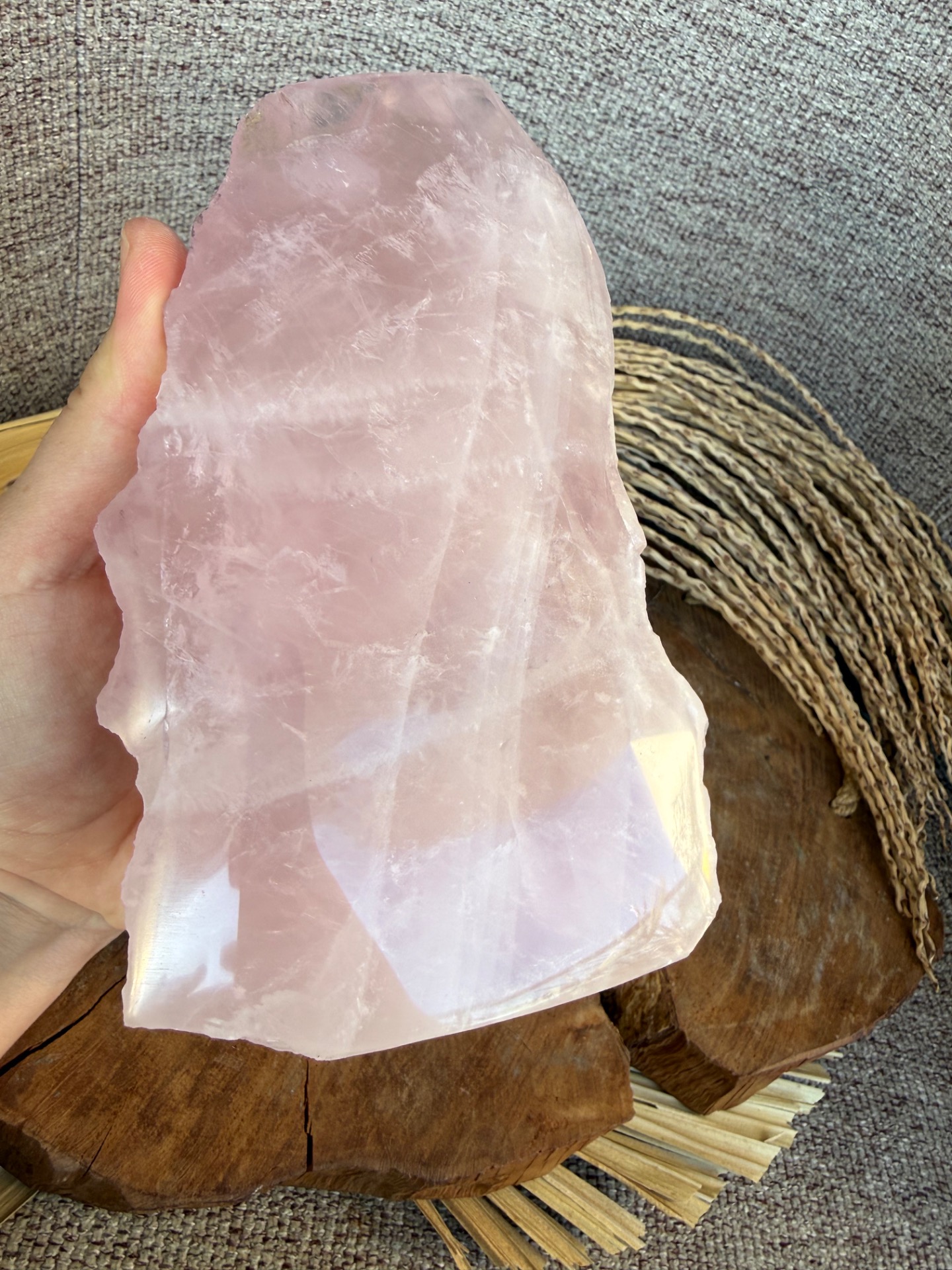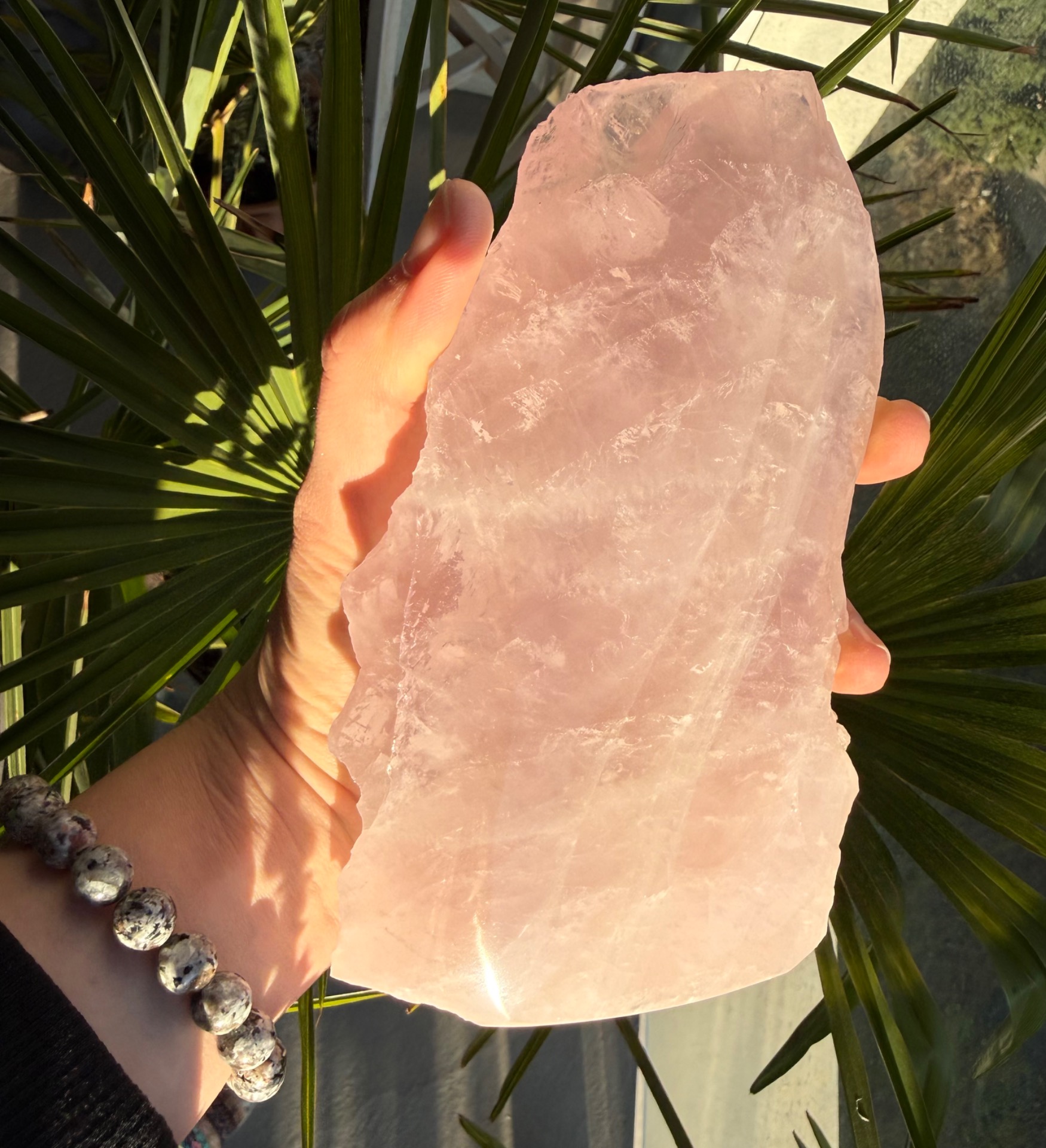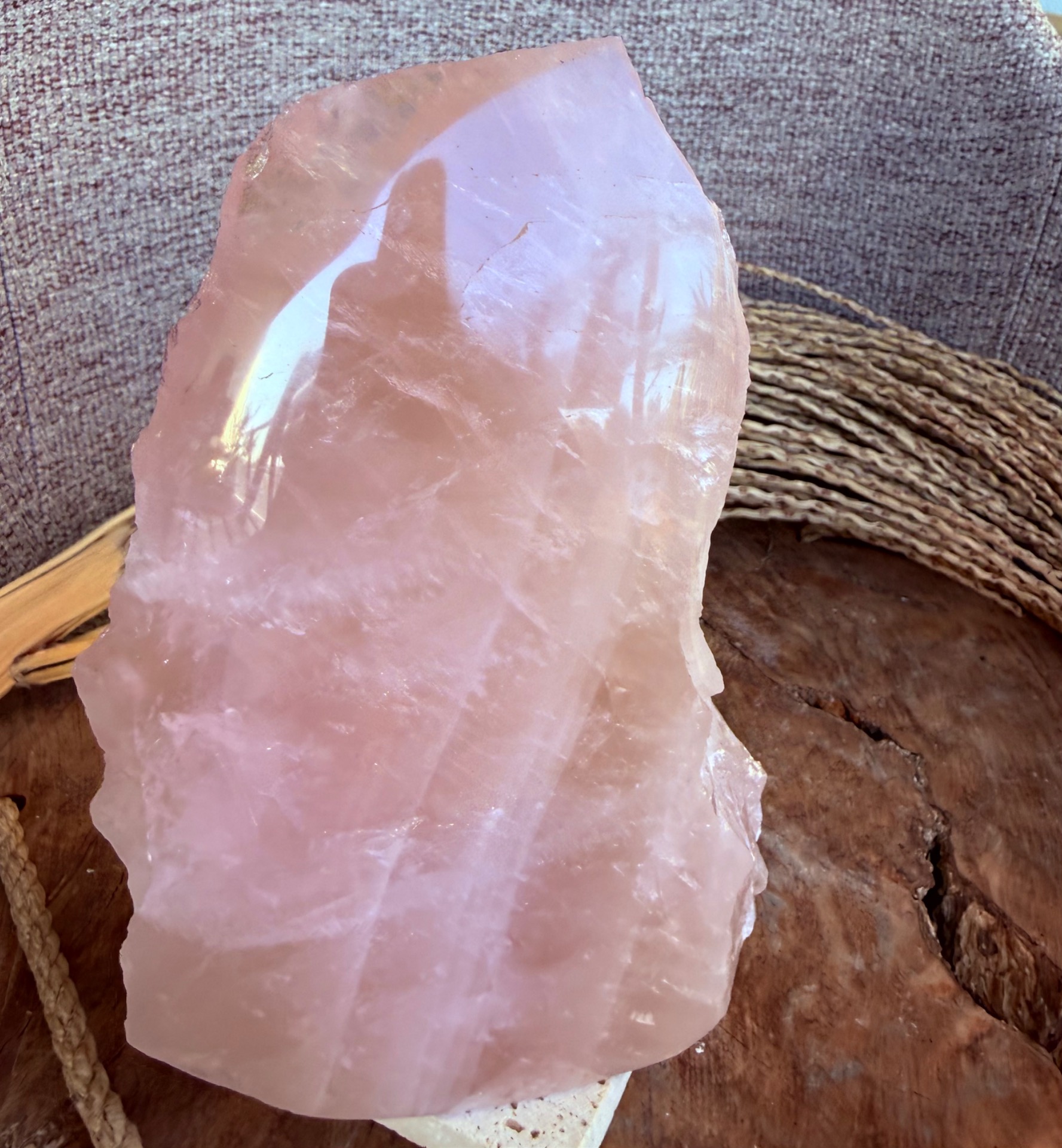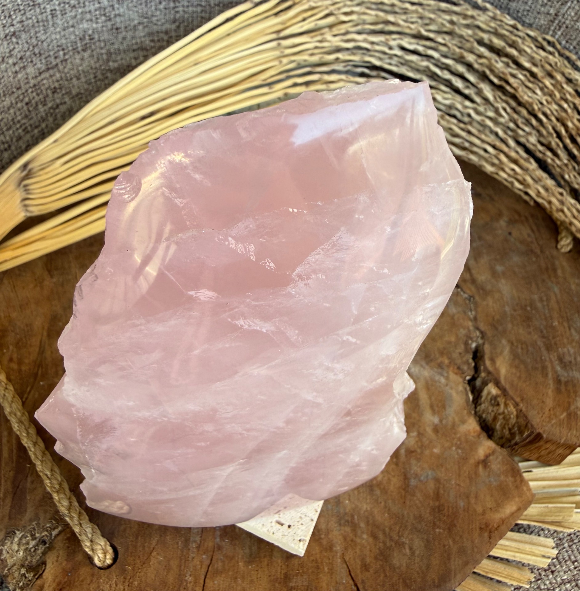 Jedna strana je precízne leštená, čo zvýrazňuje jemnosť, čistotu a nežnú vibráciu kameňa. Druhá strana zostáva v surovom prírodnom stave, čím pripomína jeho autentický pôvod a silu Zeme. Tento kontrast vytvára dokonalú rovnováhu medzi jemnosťou a prirodzenou silou.