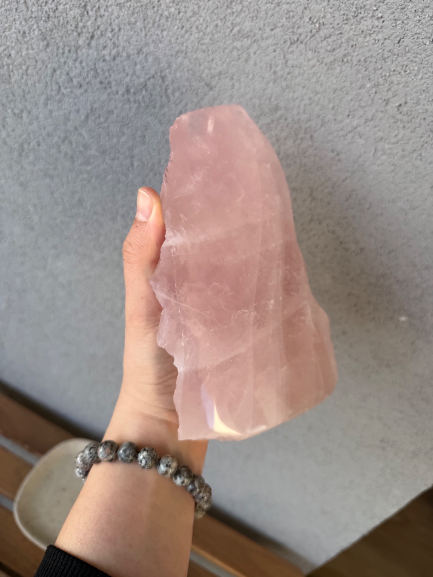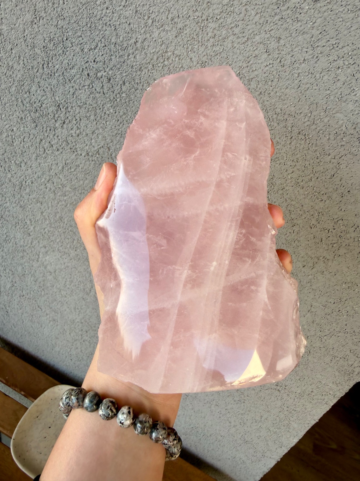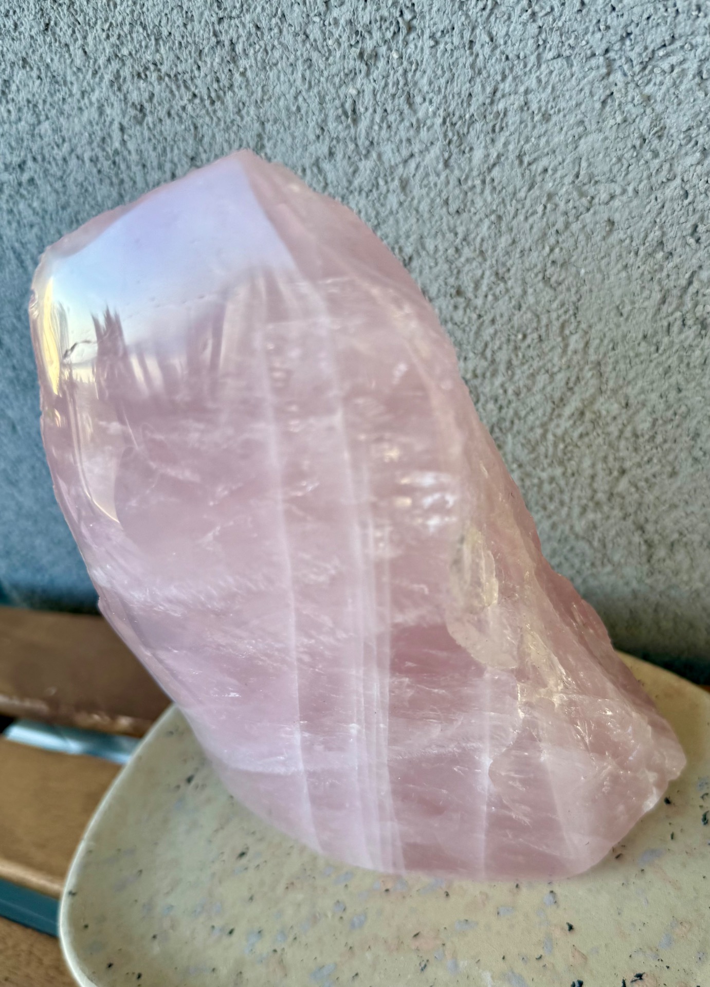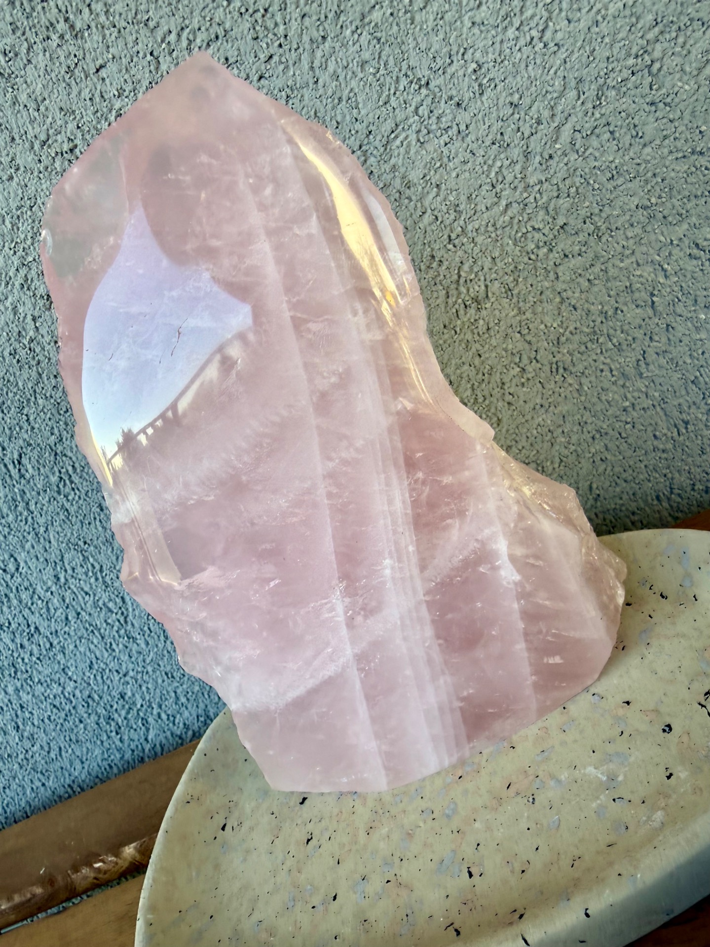 Jedna strana je precízne leštená, čo zvýrazňuje jemnosť, čistotu a nežnú vibráciu kameňa. Druhá strana zostáva v surovom prírodnom stave, čím pripomína jeho autentický pôvod a silu Zeme. Tento kontrast vytvára dokonalú rovnováhu medzi jemnosťou a prirodzenou silou.