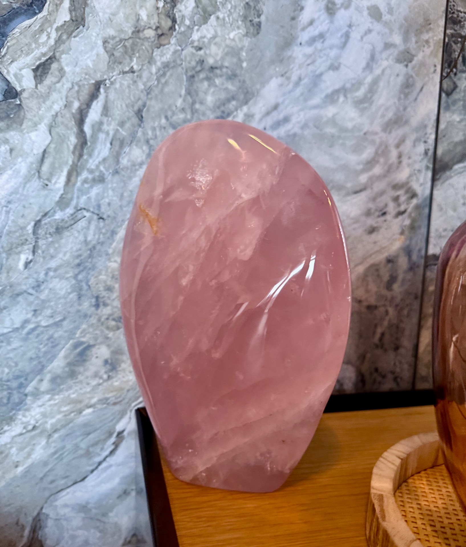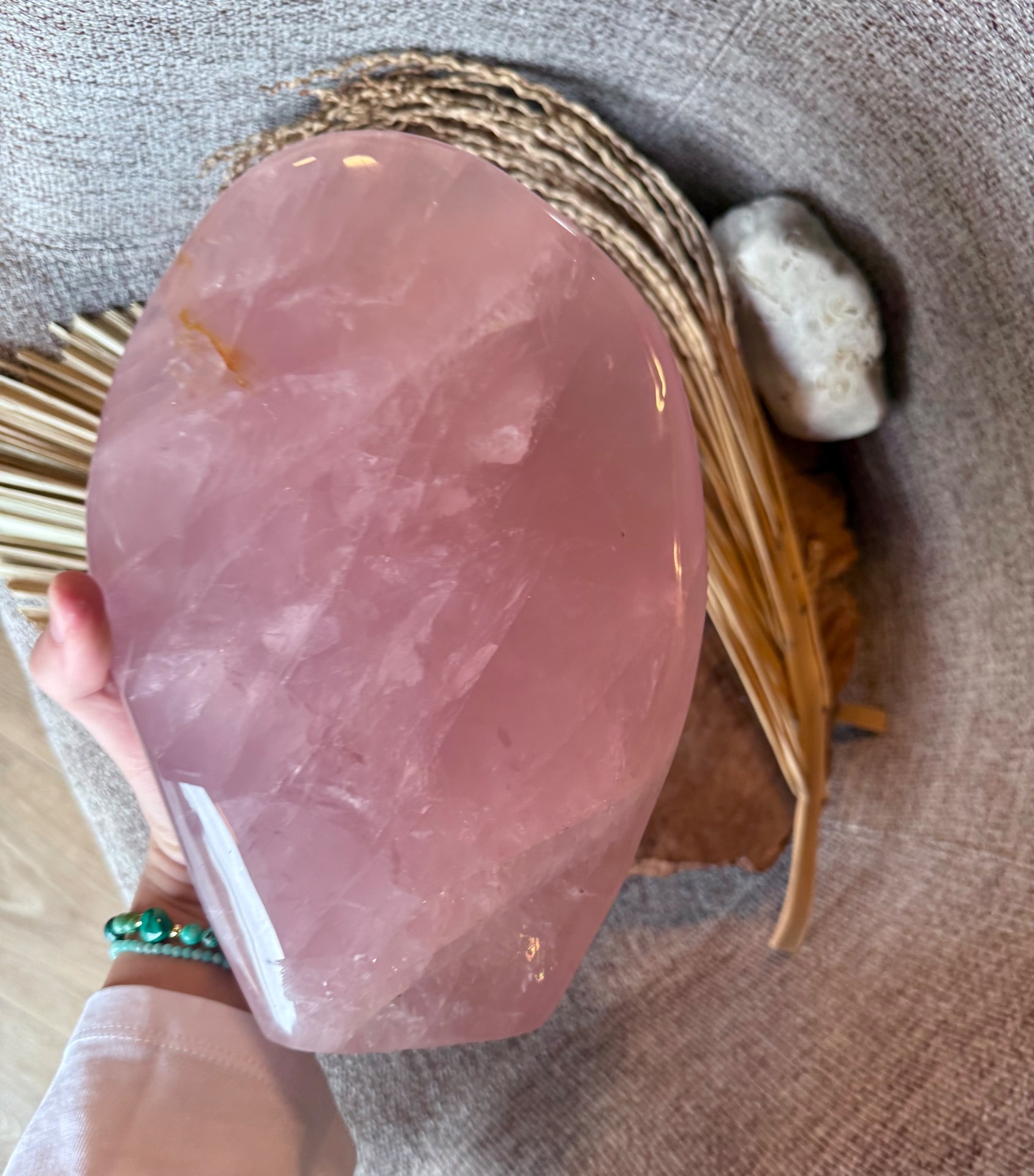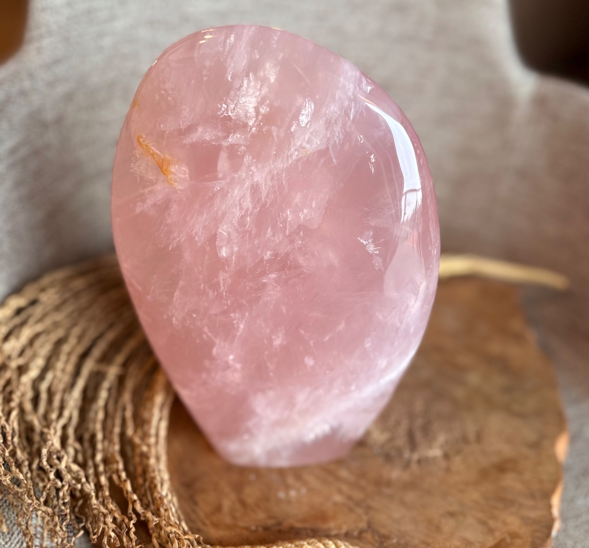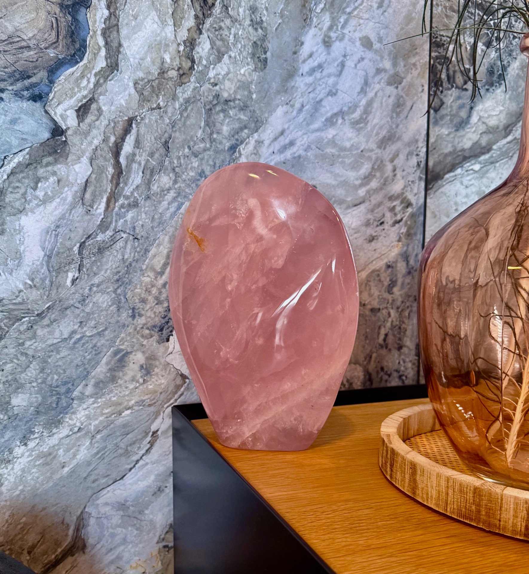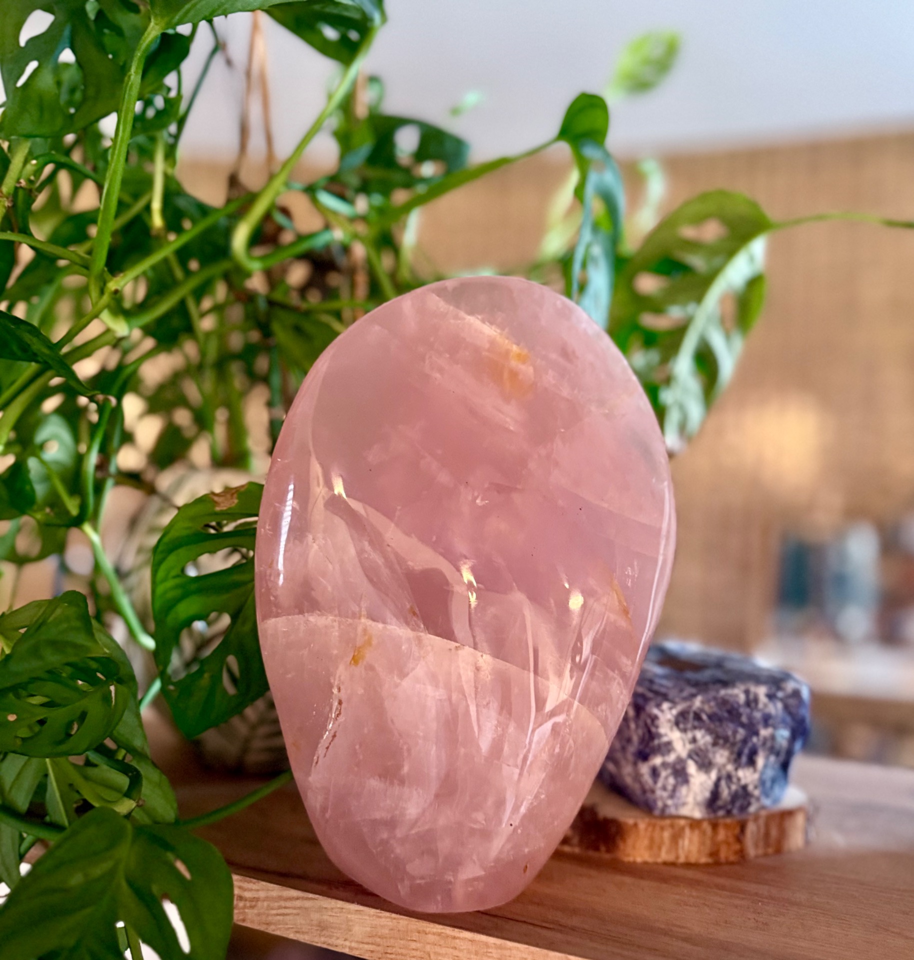 Prineste do svojho priestoru jemnú energiu lásky, starostlivosti a vnútorného pokoja s týmto nádherným kusom ruženínu z Madagaskaru. Free form tvar kameňa, nazvaný Maternica, zdôrazňuje jeho prirodzenú krásu a silu, pričom hmotnosť 3,9 kg robí z neho výrazný a impozantný solitér – ideálny do spálne alebo osobného kútika.
