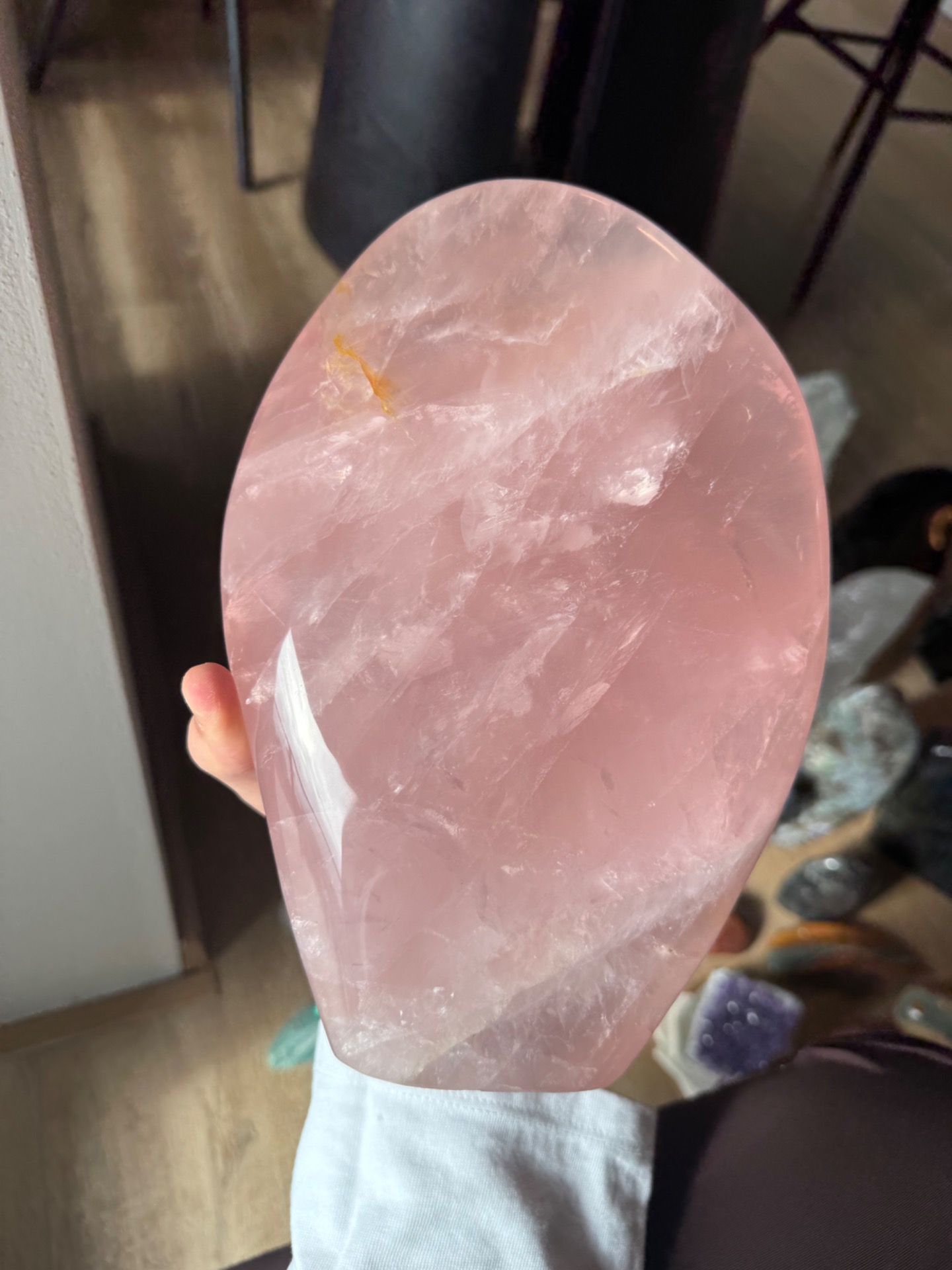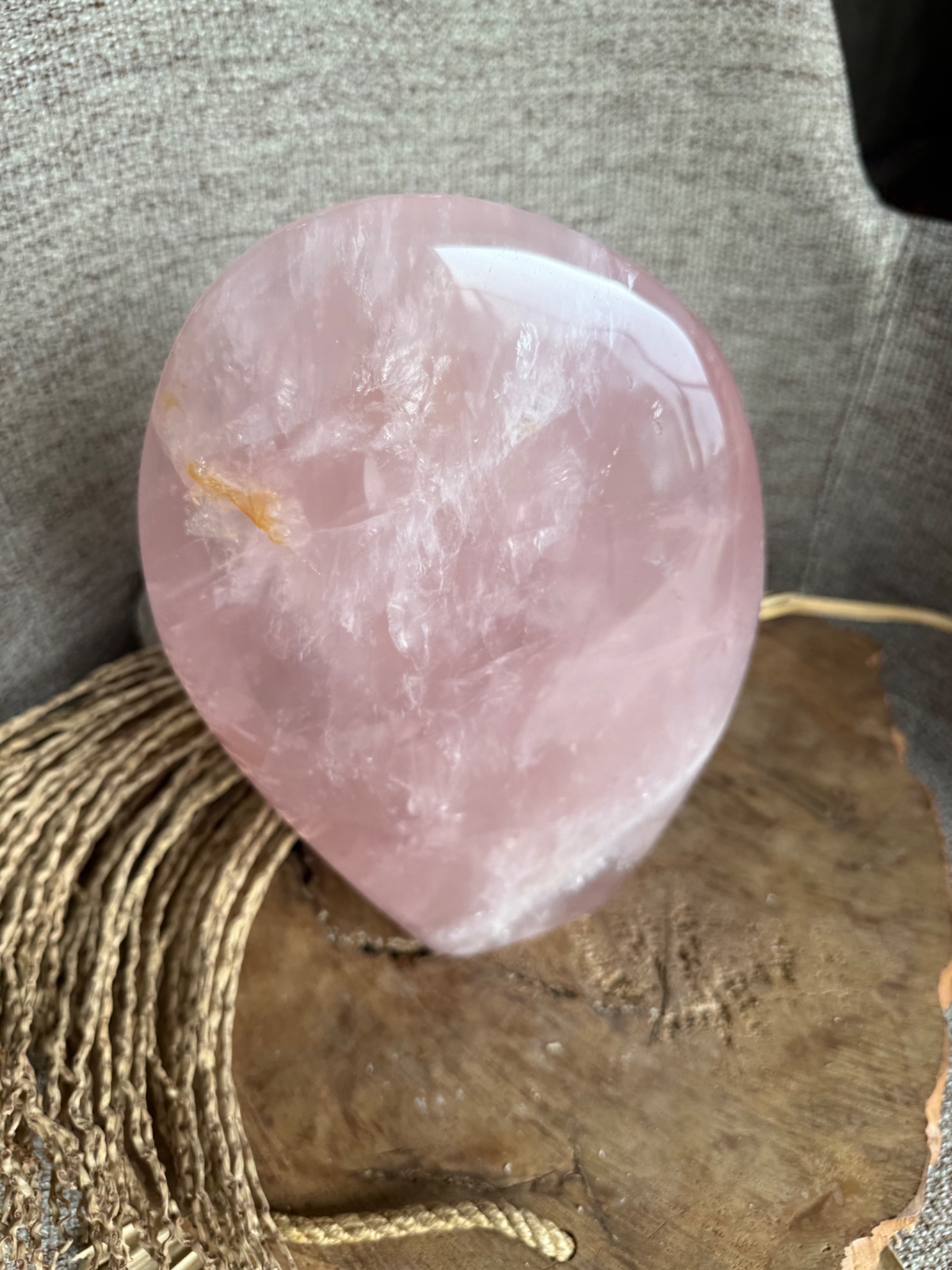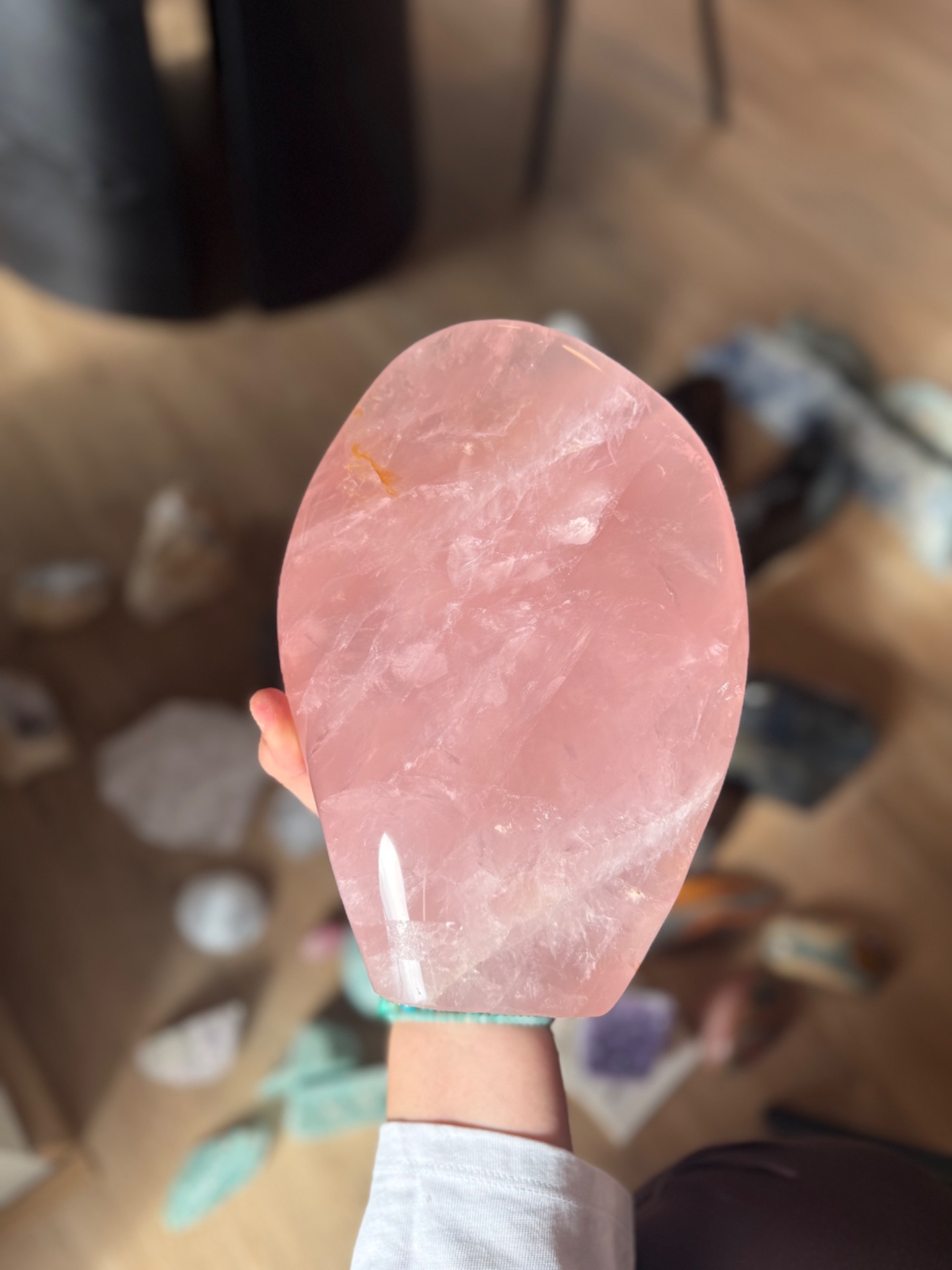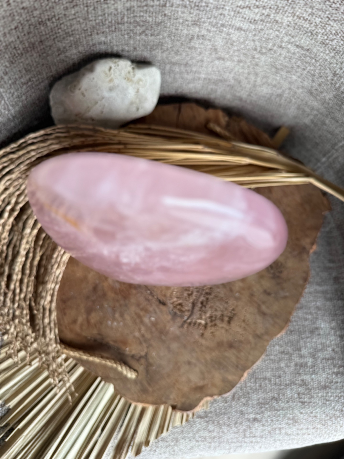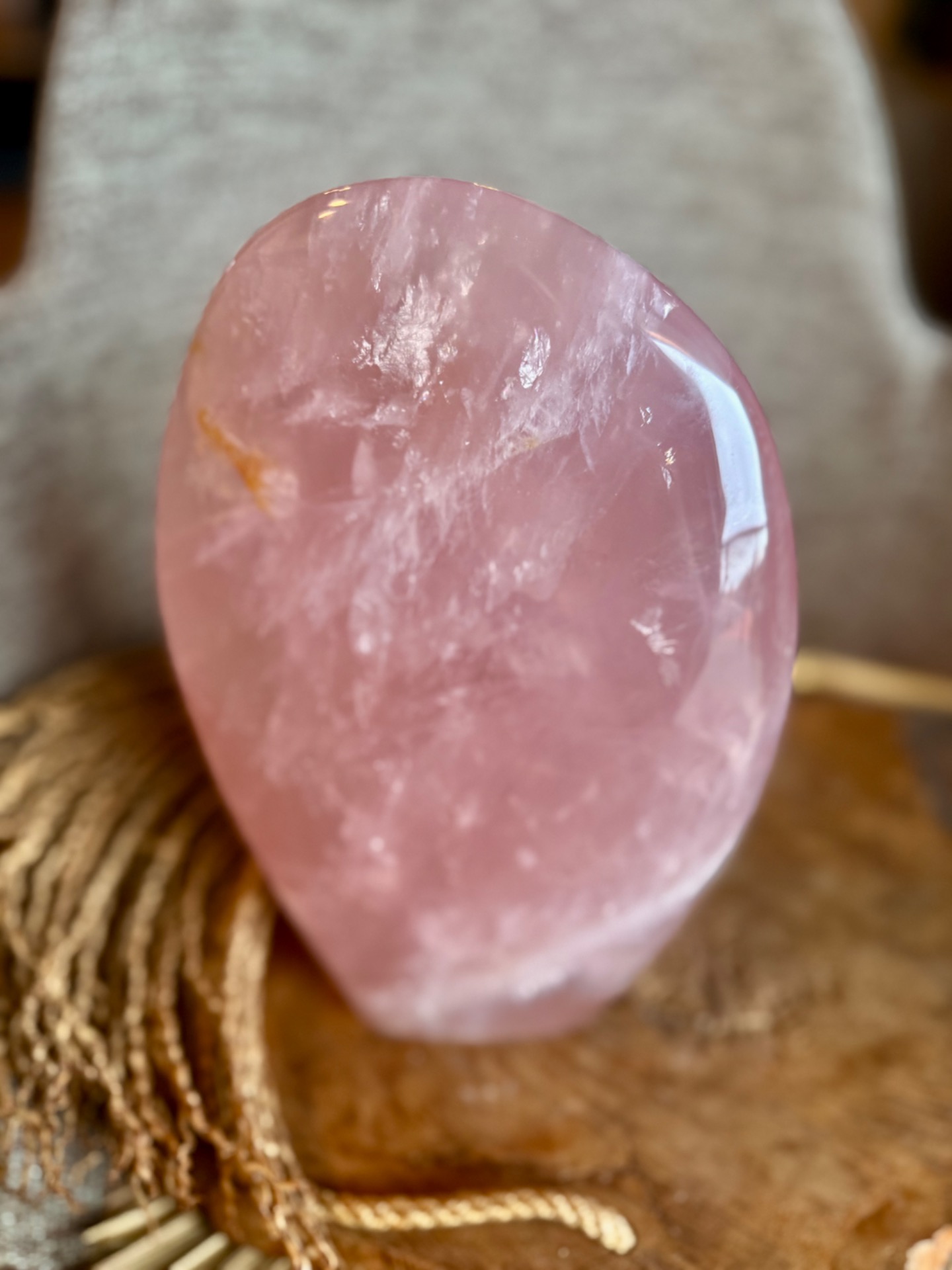 Prineste do svojho priestoru jemnú energiu lásky, starostlivosti a vnútorného pokoja s týmto nádherným kusom ruženínu z Madagaskaru. Free form tvar kameňa, nazvaný Maternica, zdôrazňuje jeho prirodzenú krásu a silu, pričom hmotnosť 3,9 kg robí z neho výrazný a impozantný solitér – ideálny do spálne alebo osobného kútika.