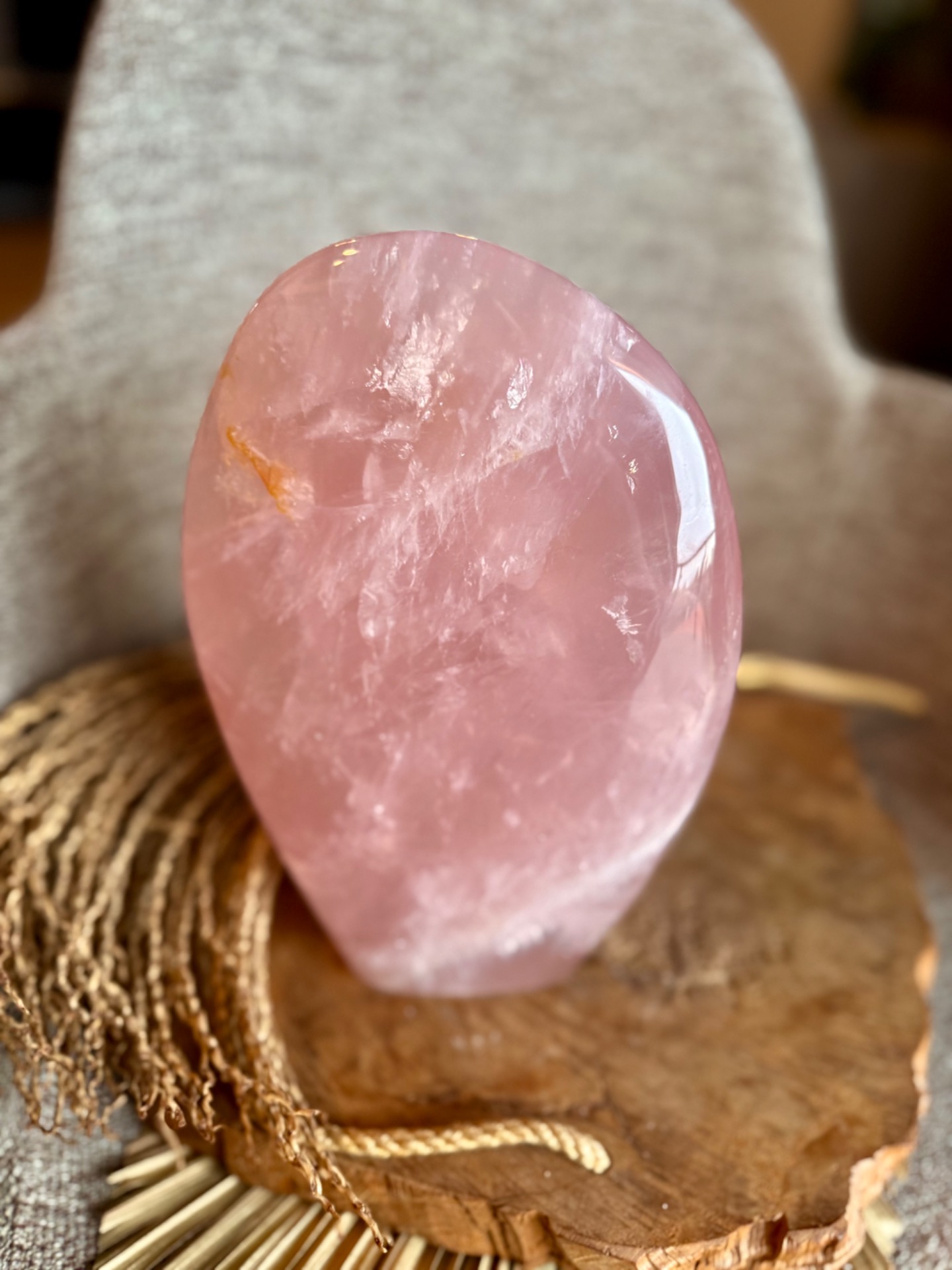 Tento ruženín free form Maternica je ideálny pre plodnosť, zrod, energiu matky, jemnosť a harmonizáciu spálne, pričom zároveň slúži ako výrazný a jedinečný dekoratívny solitér.