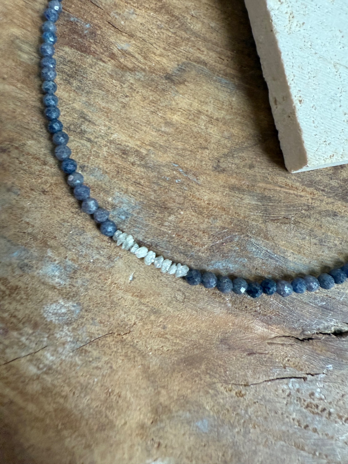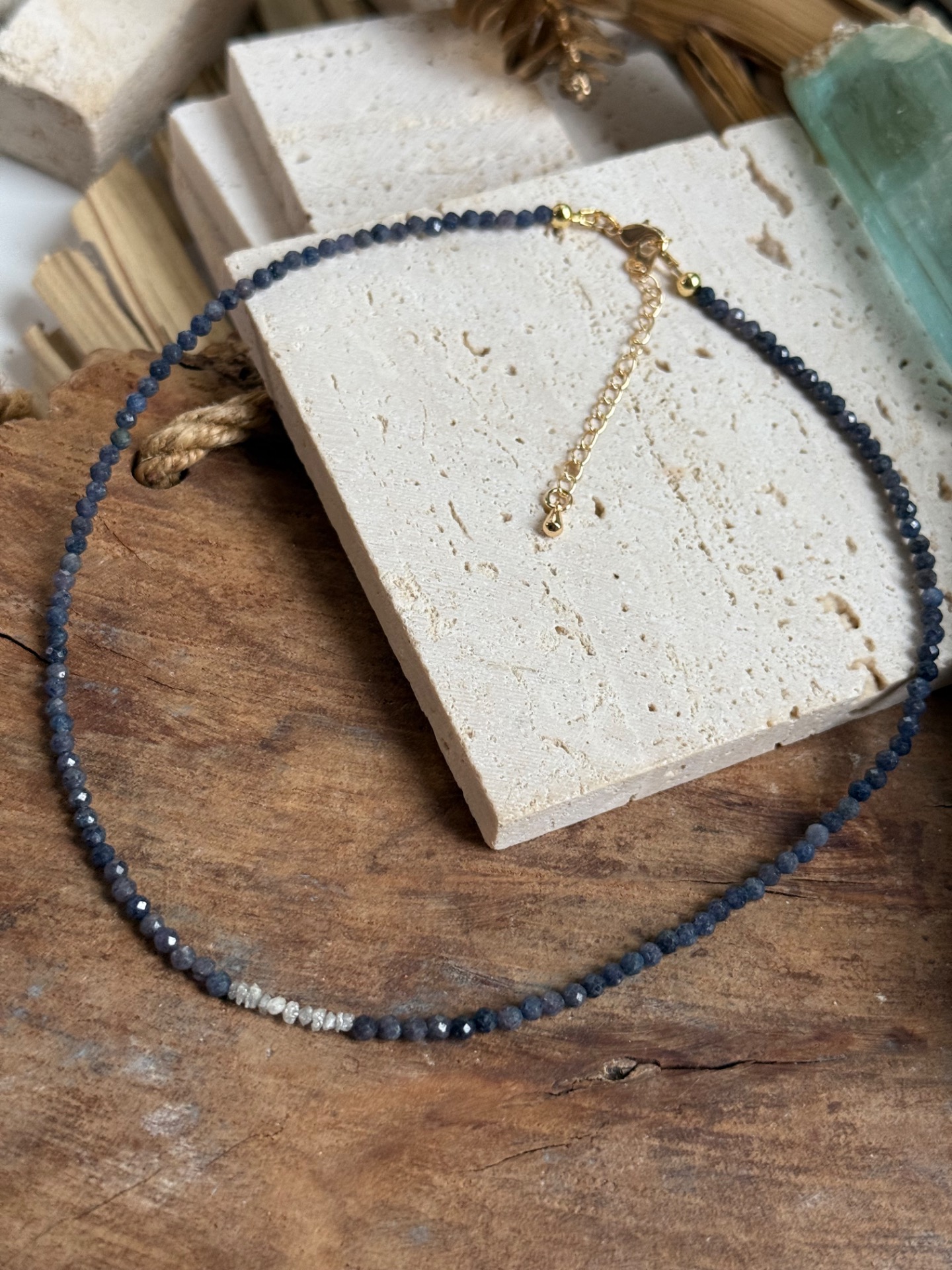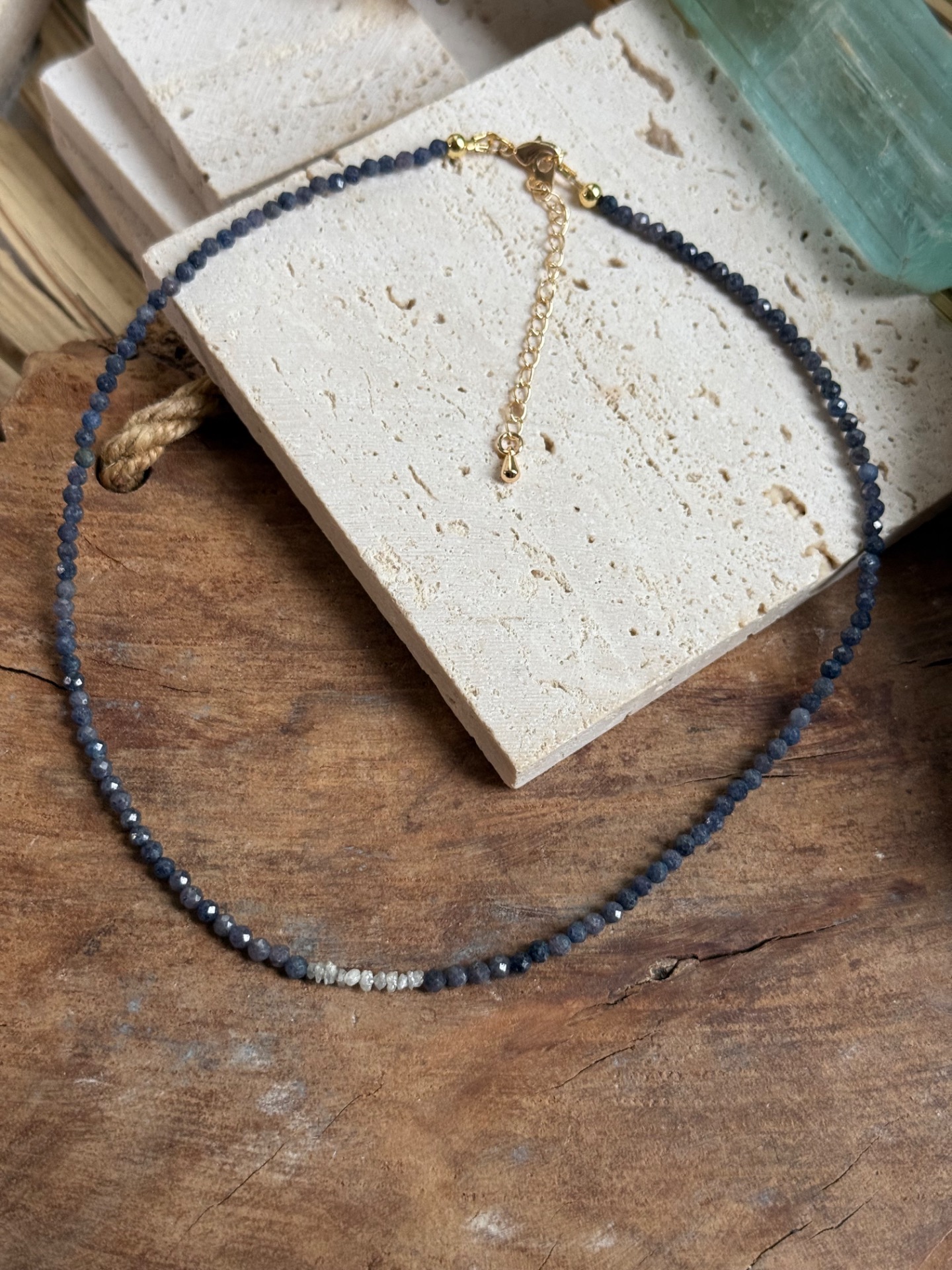 Zafírový choker so surovým diamantom