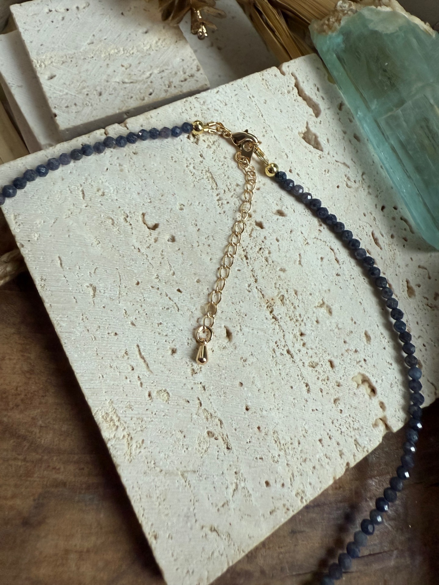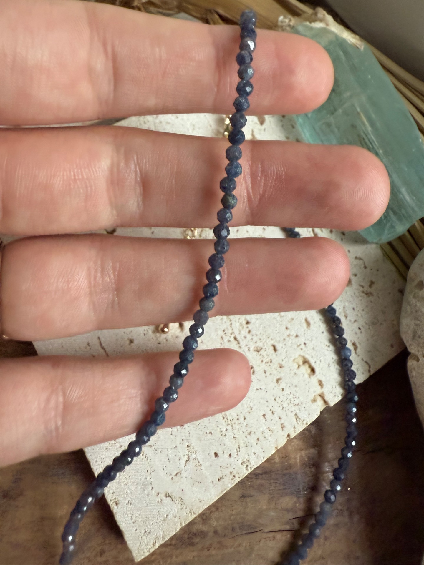 • prírodný zafír 2 mm, fazetovaný výbrus (40 cm, choker)