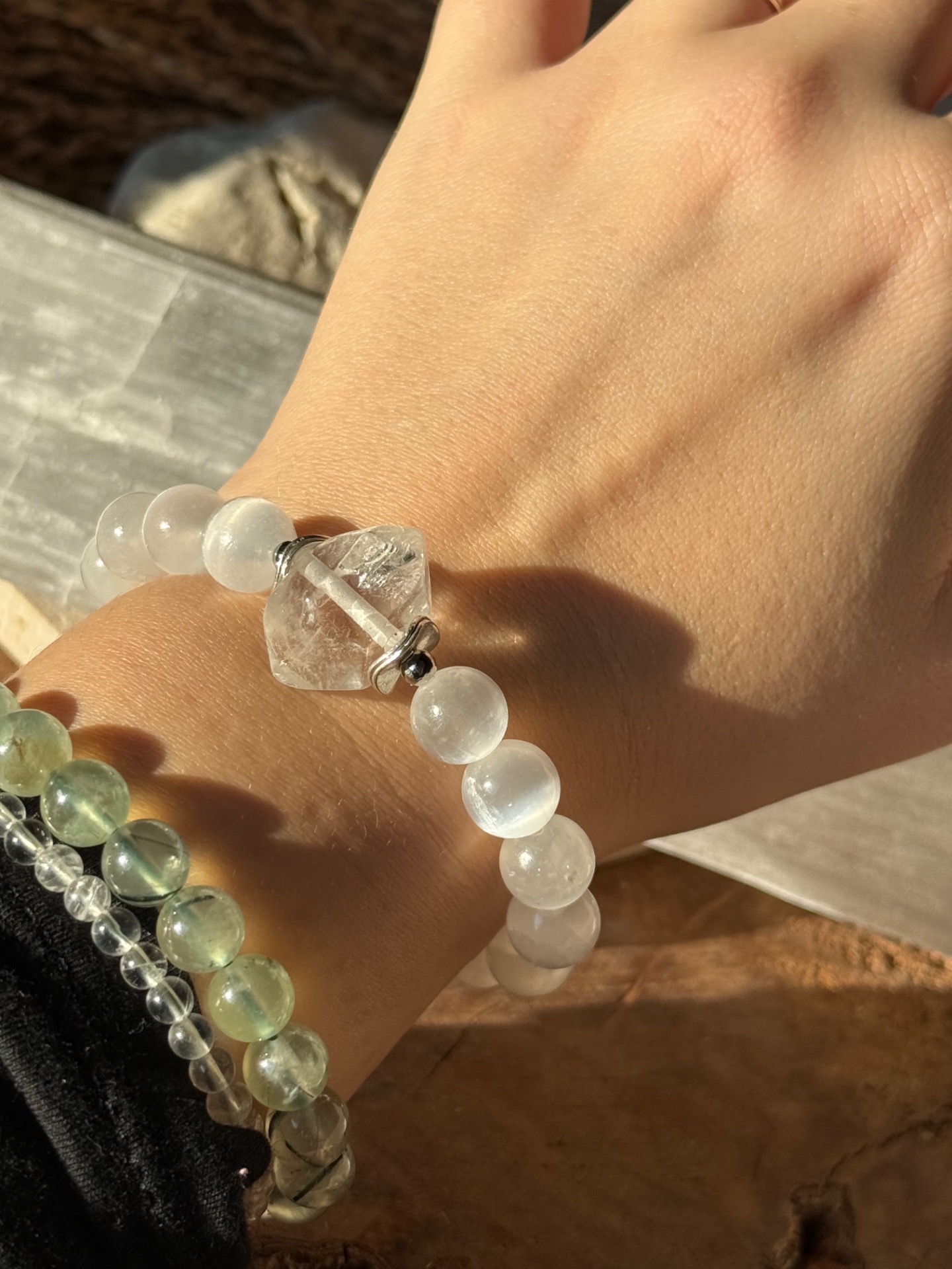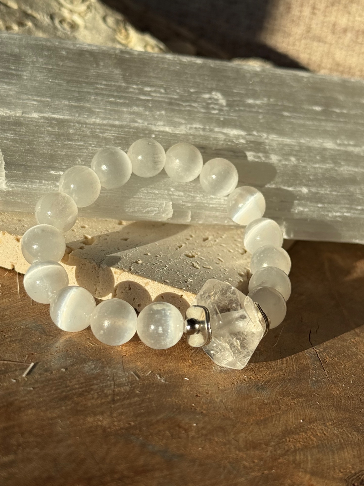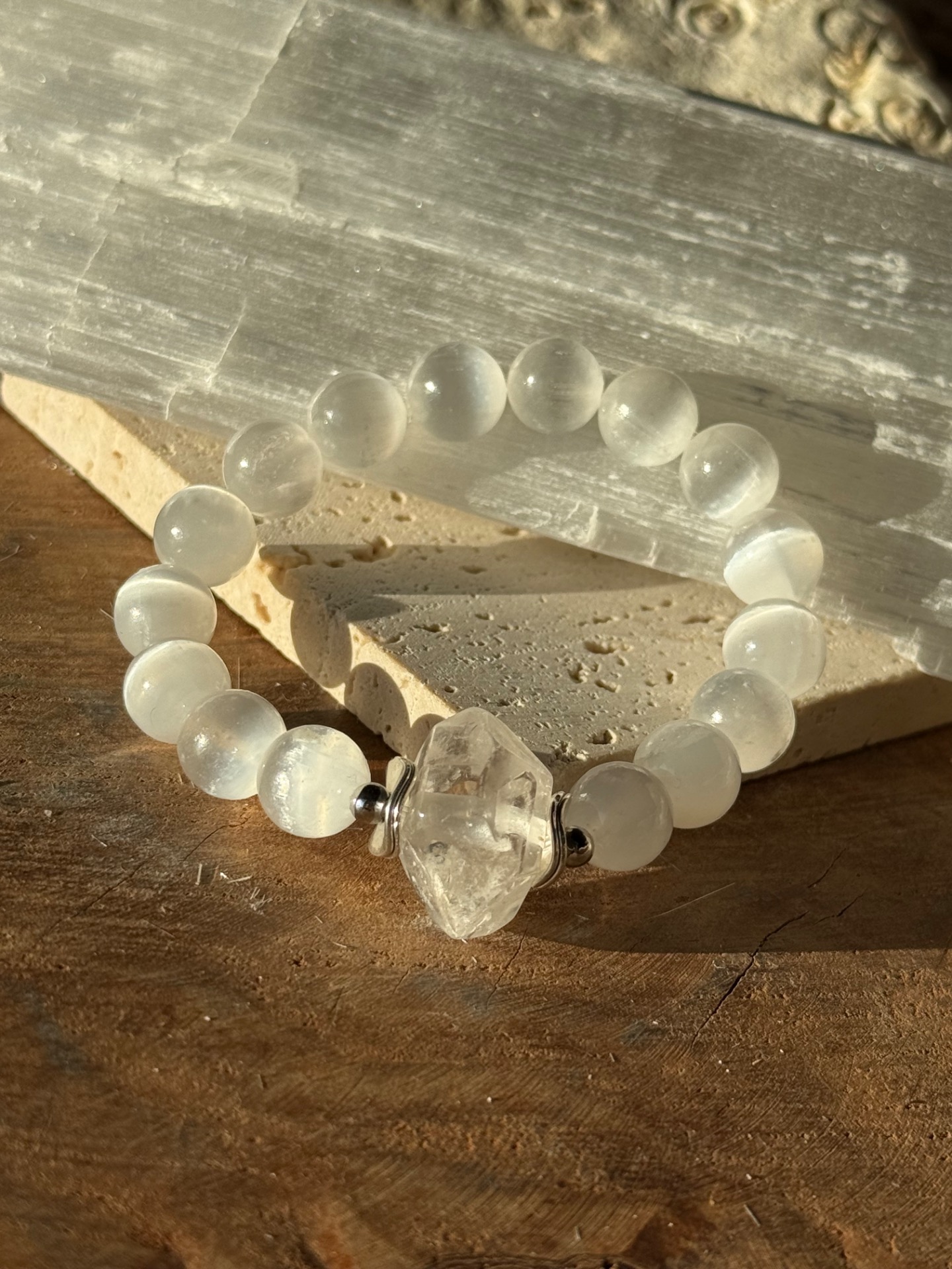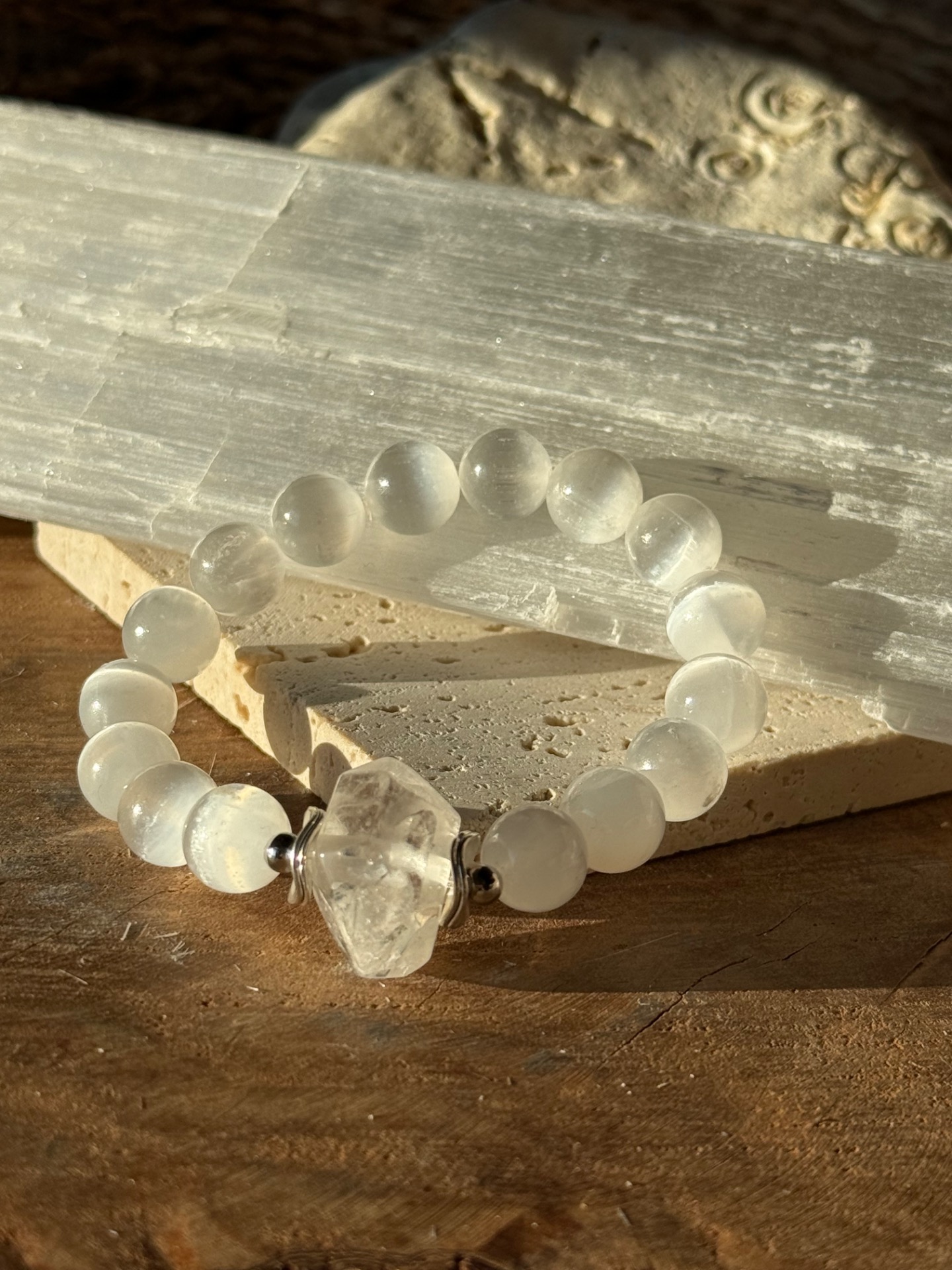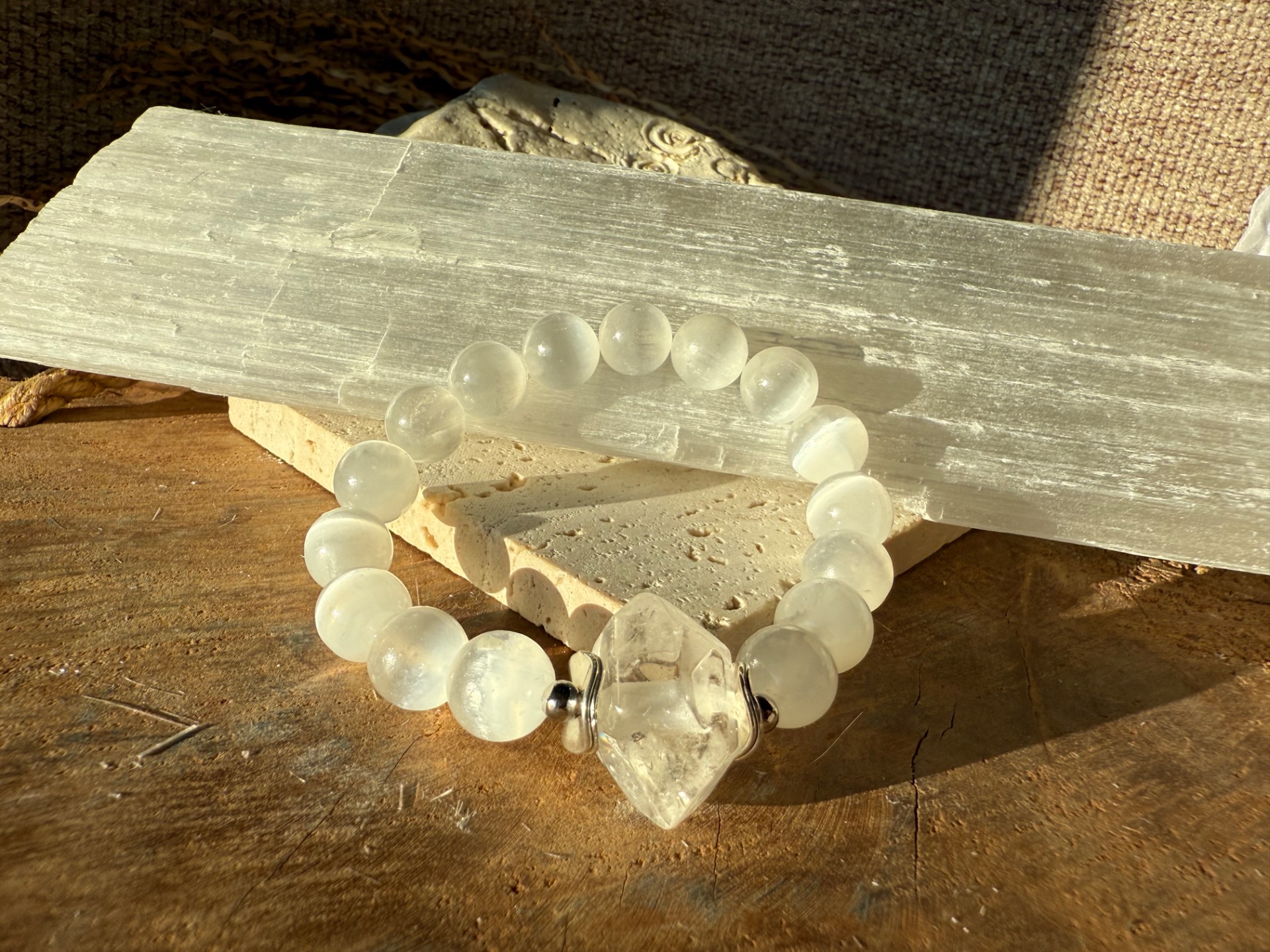 Náramok SELENIT + OBOJSTRANNÝ KRIŠTÁĽ – "Čistota"
