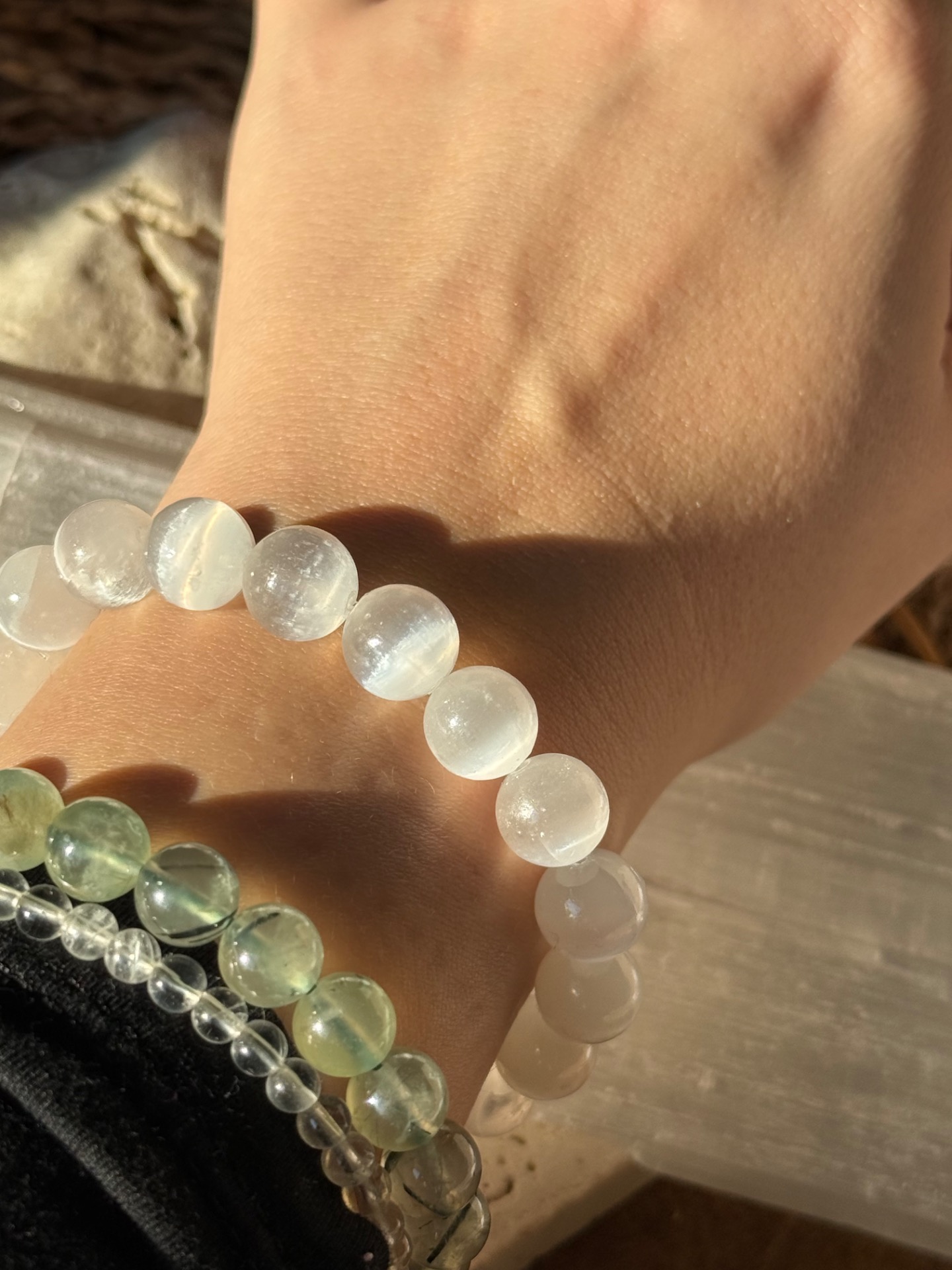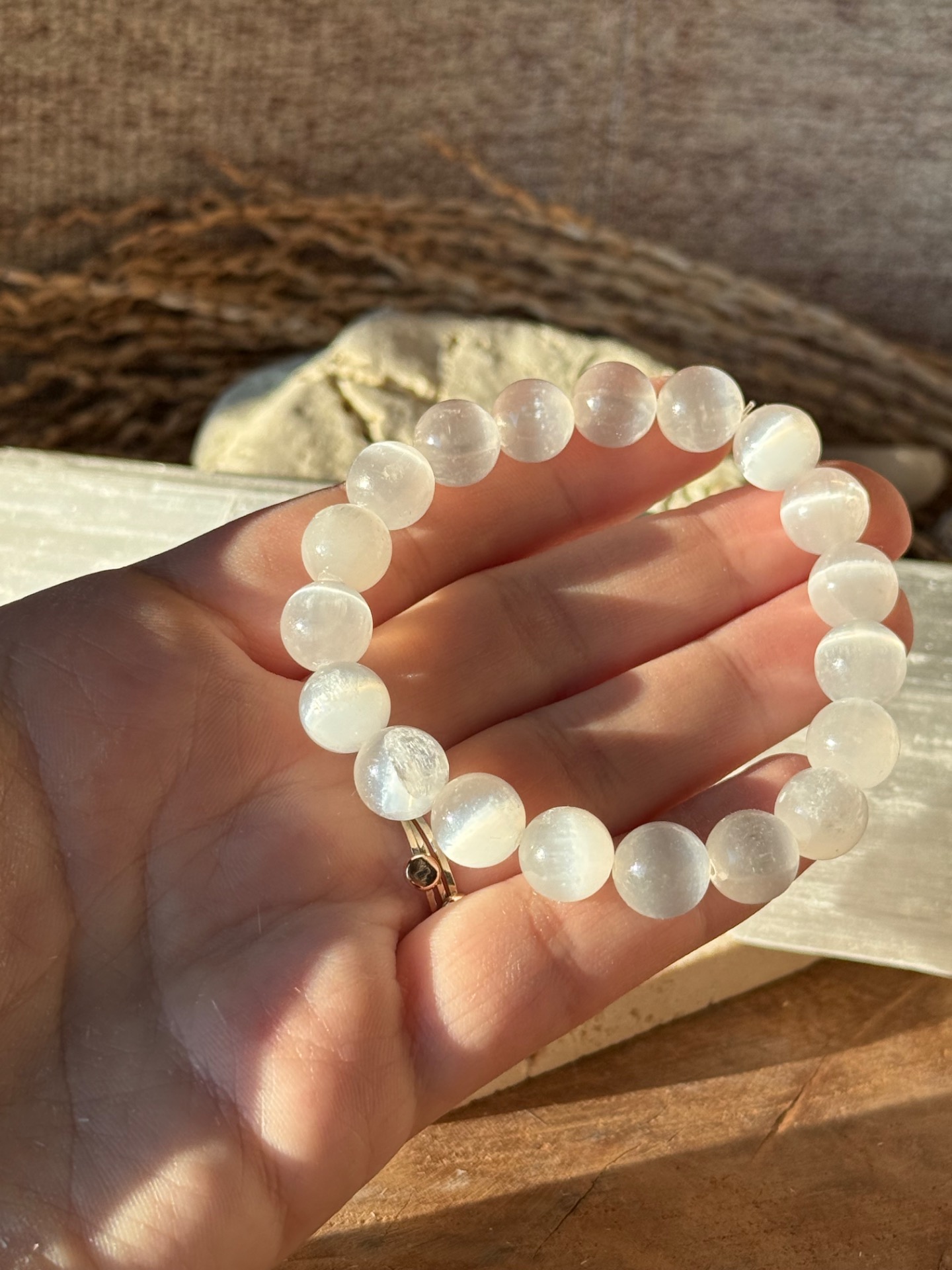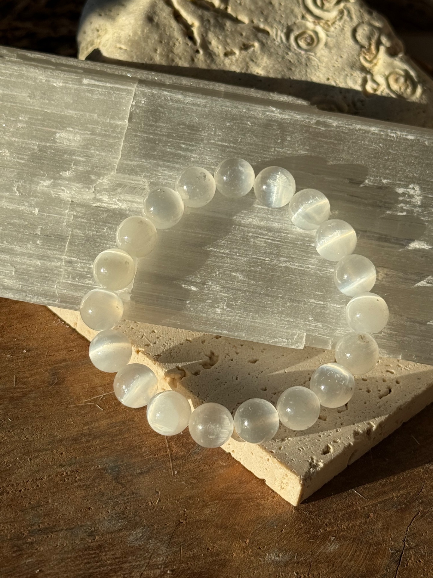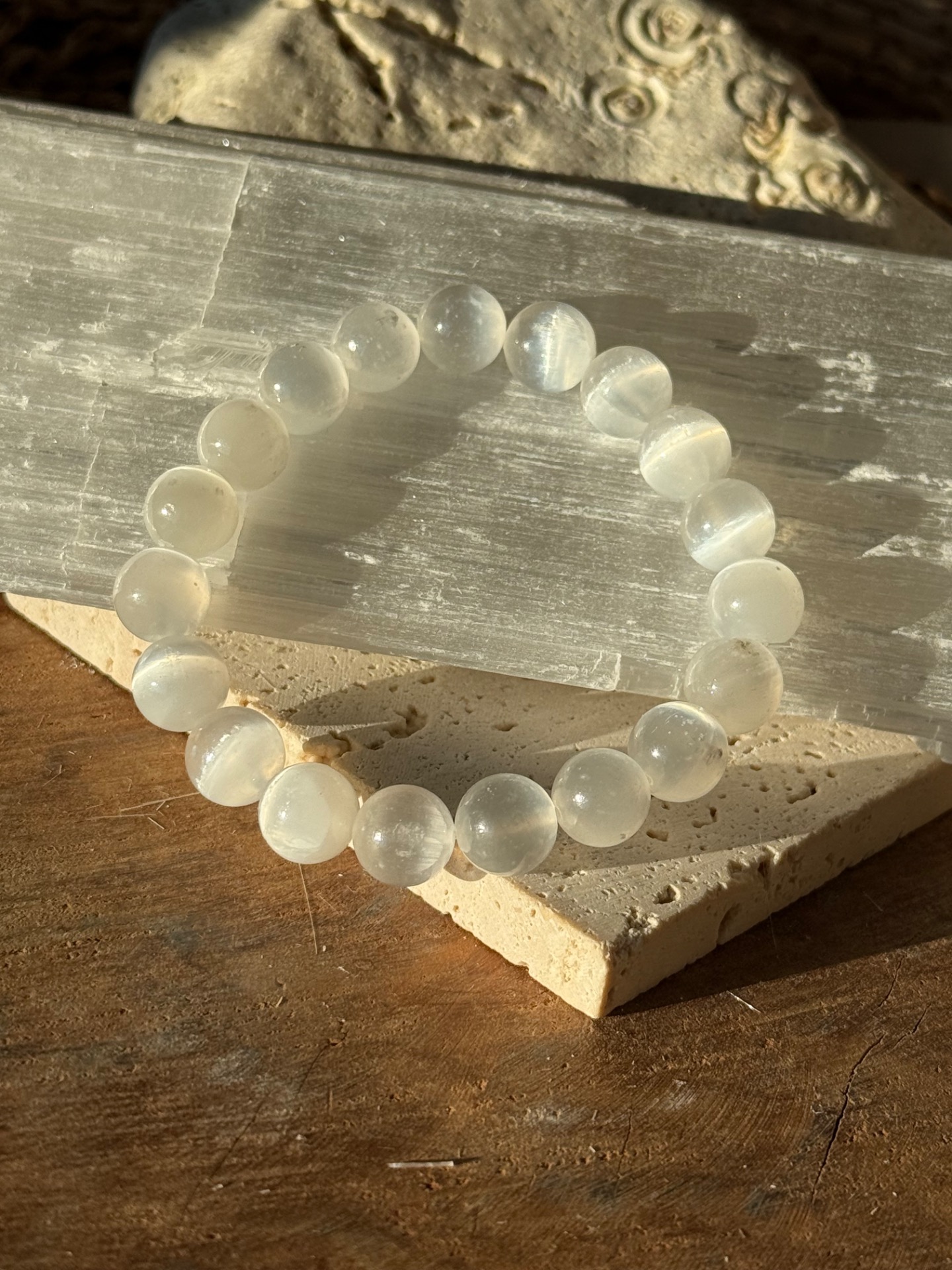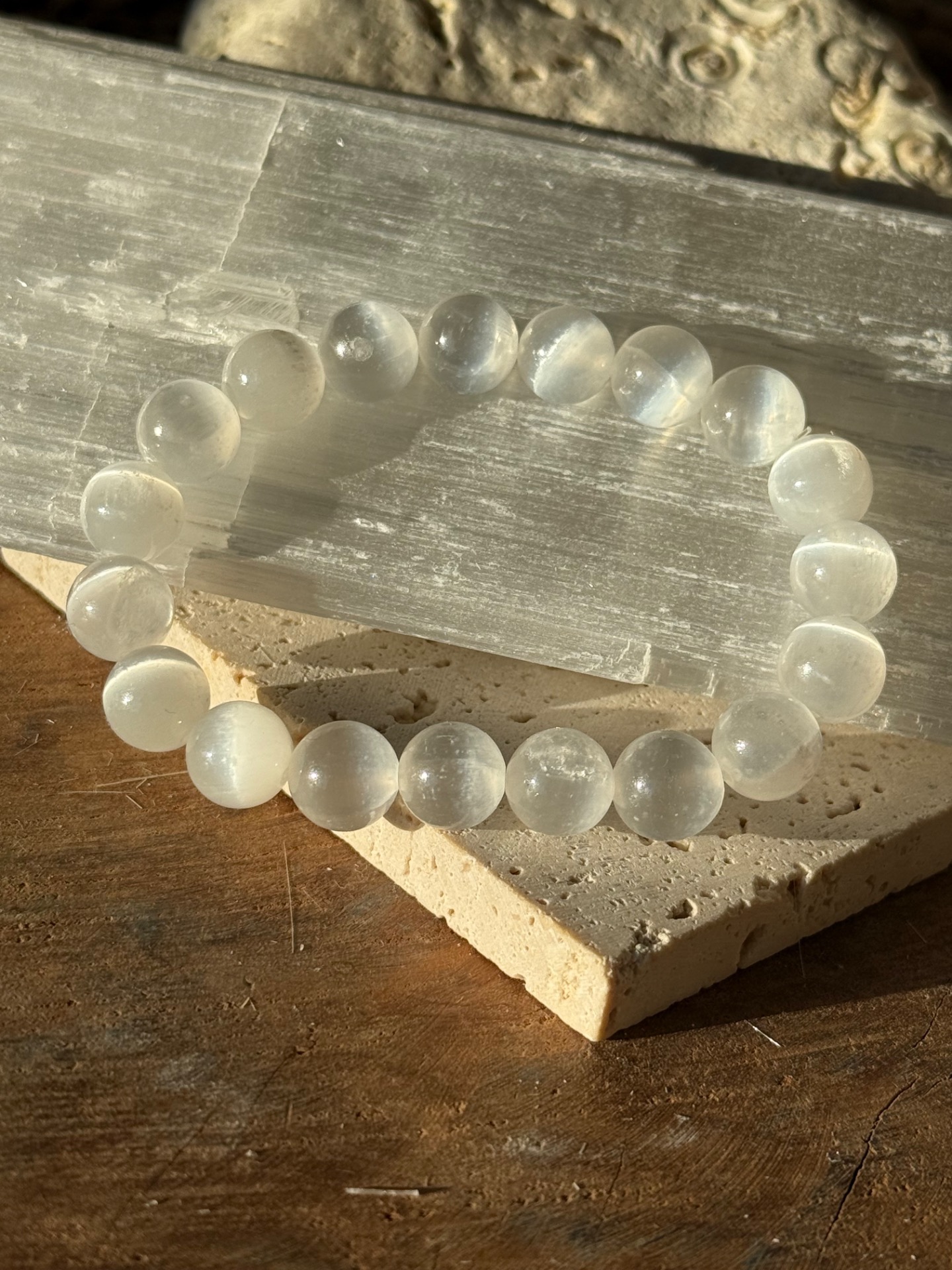 Náramok z minerálu selenit 10mm.