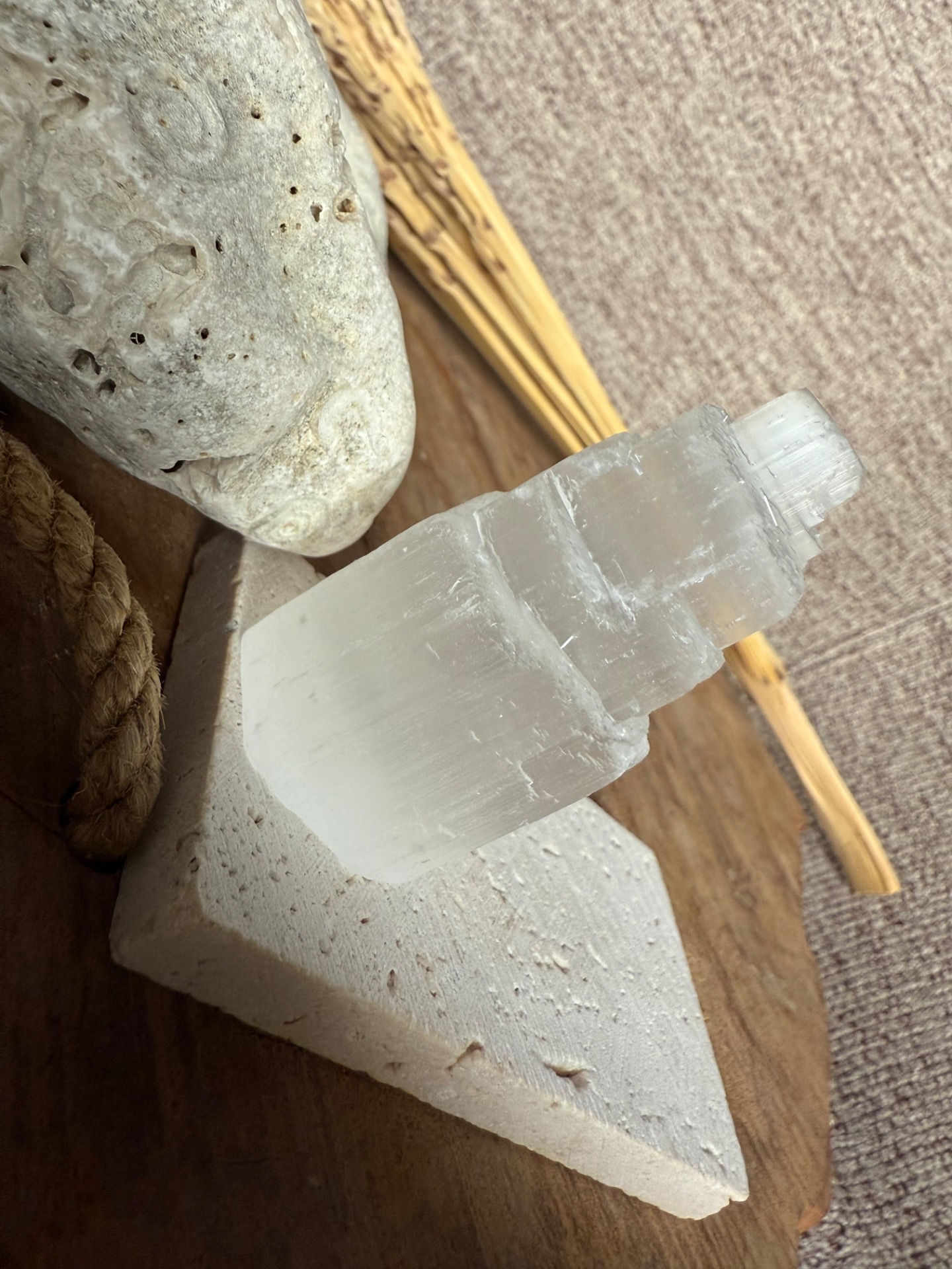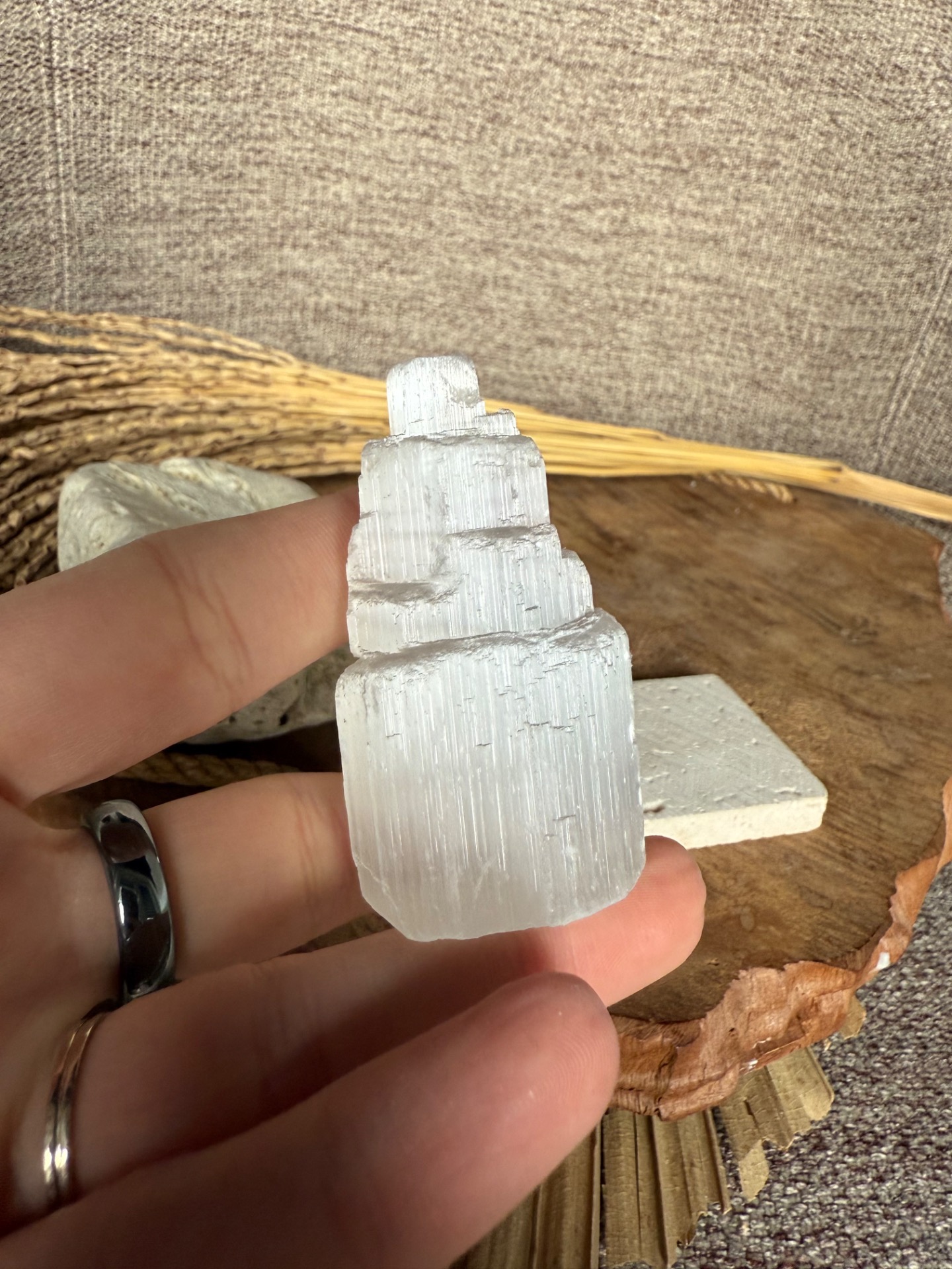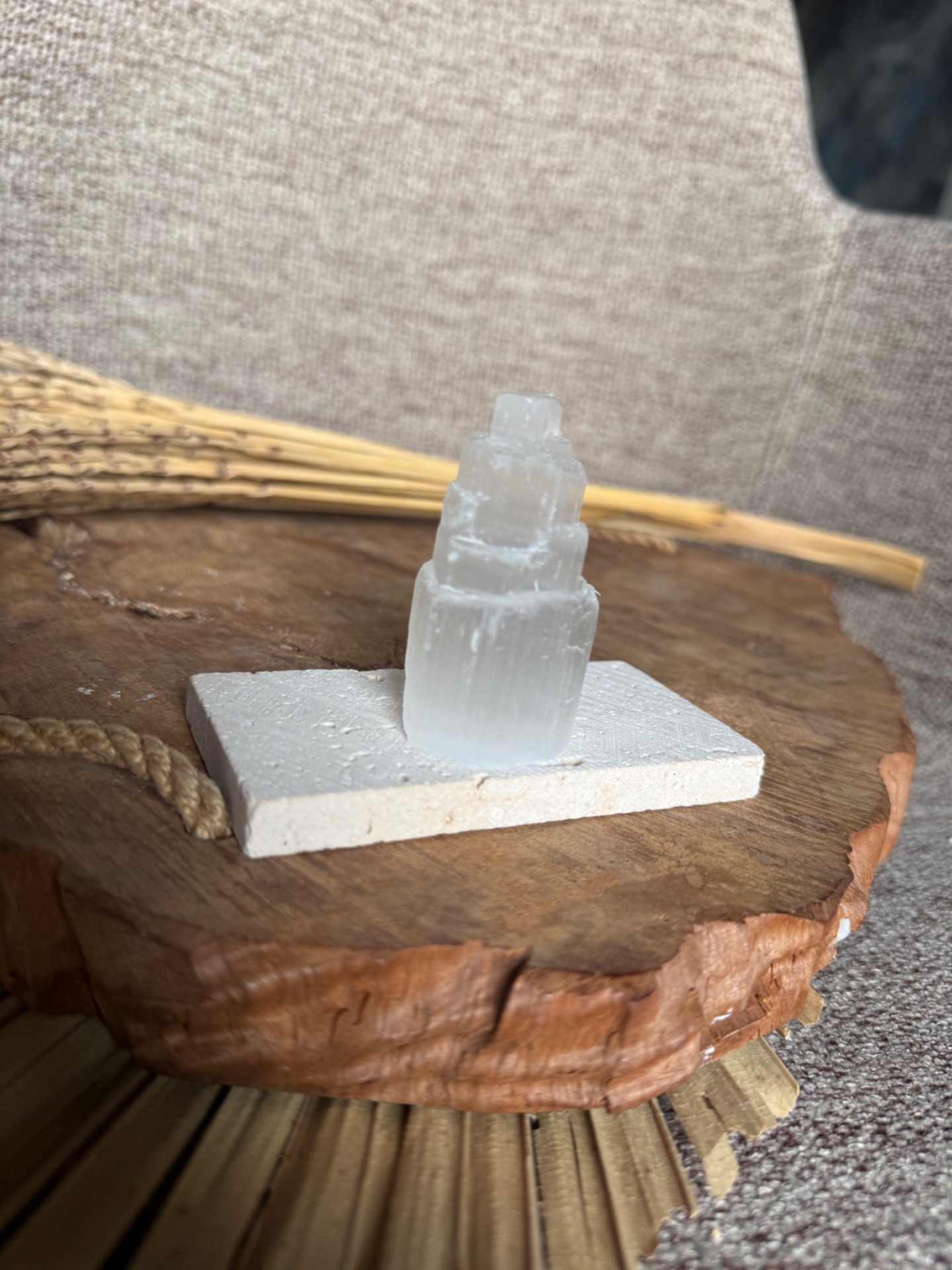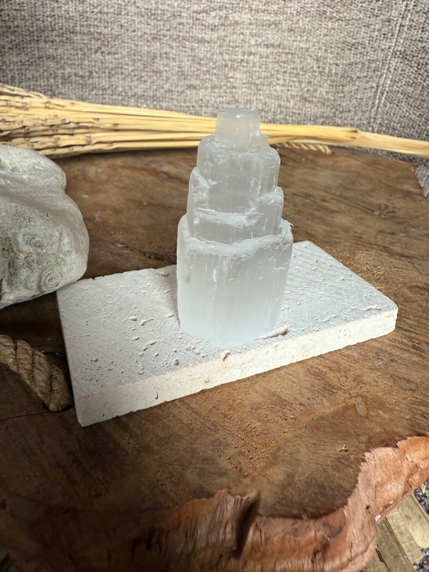 Pôvod a vznik: Selenit vzniká z minerálu gipsu a je známy svojou čistou, jemnou a svetelnou energiou. Každá vežička je ručne opracovaná, aby zachovala prirodzenú štruktúru minerálu a zároveň pôsobila ako elegantný dekoratívny prvok.