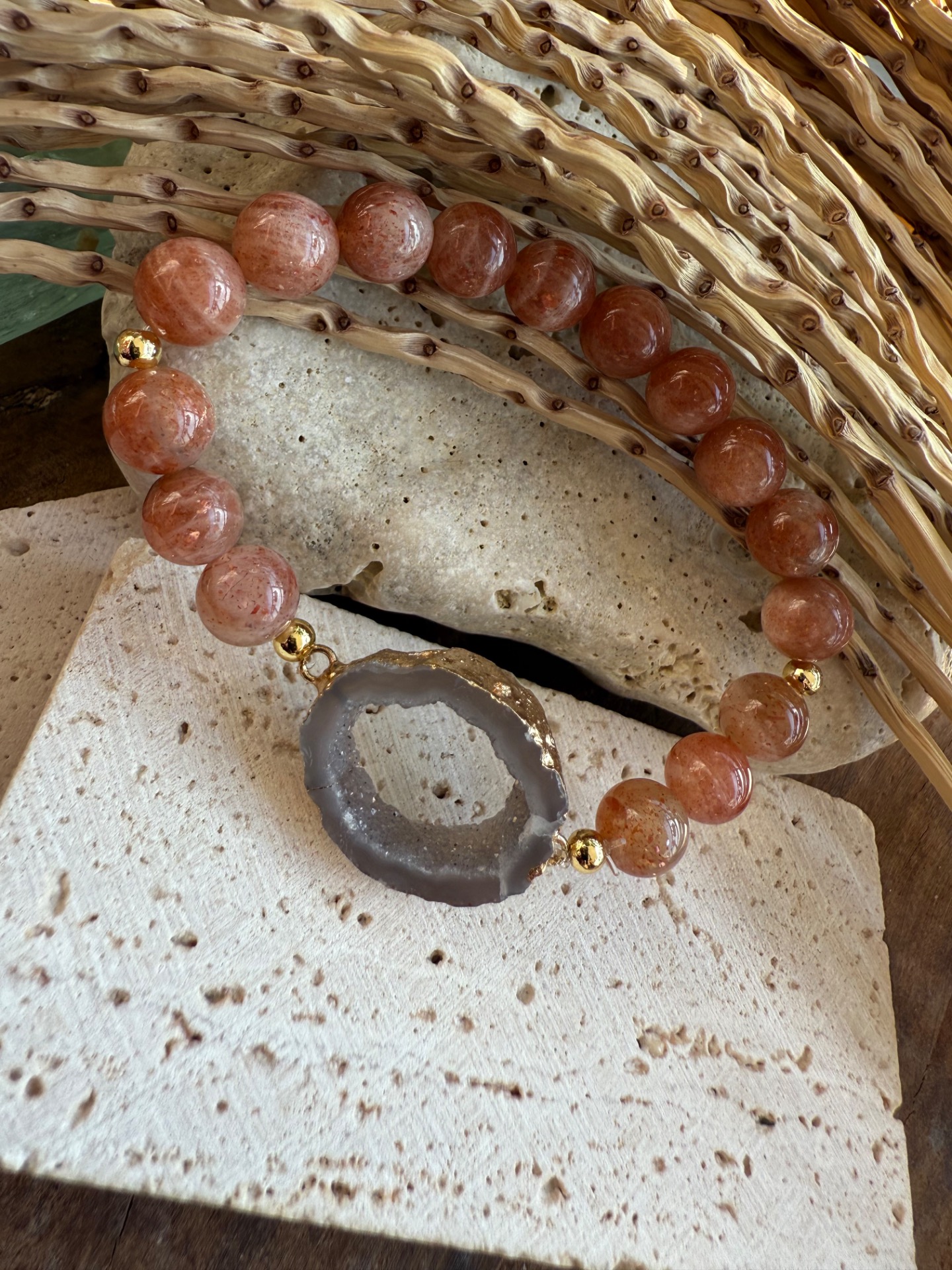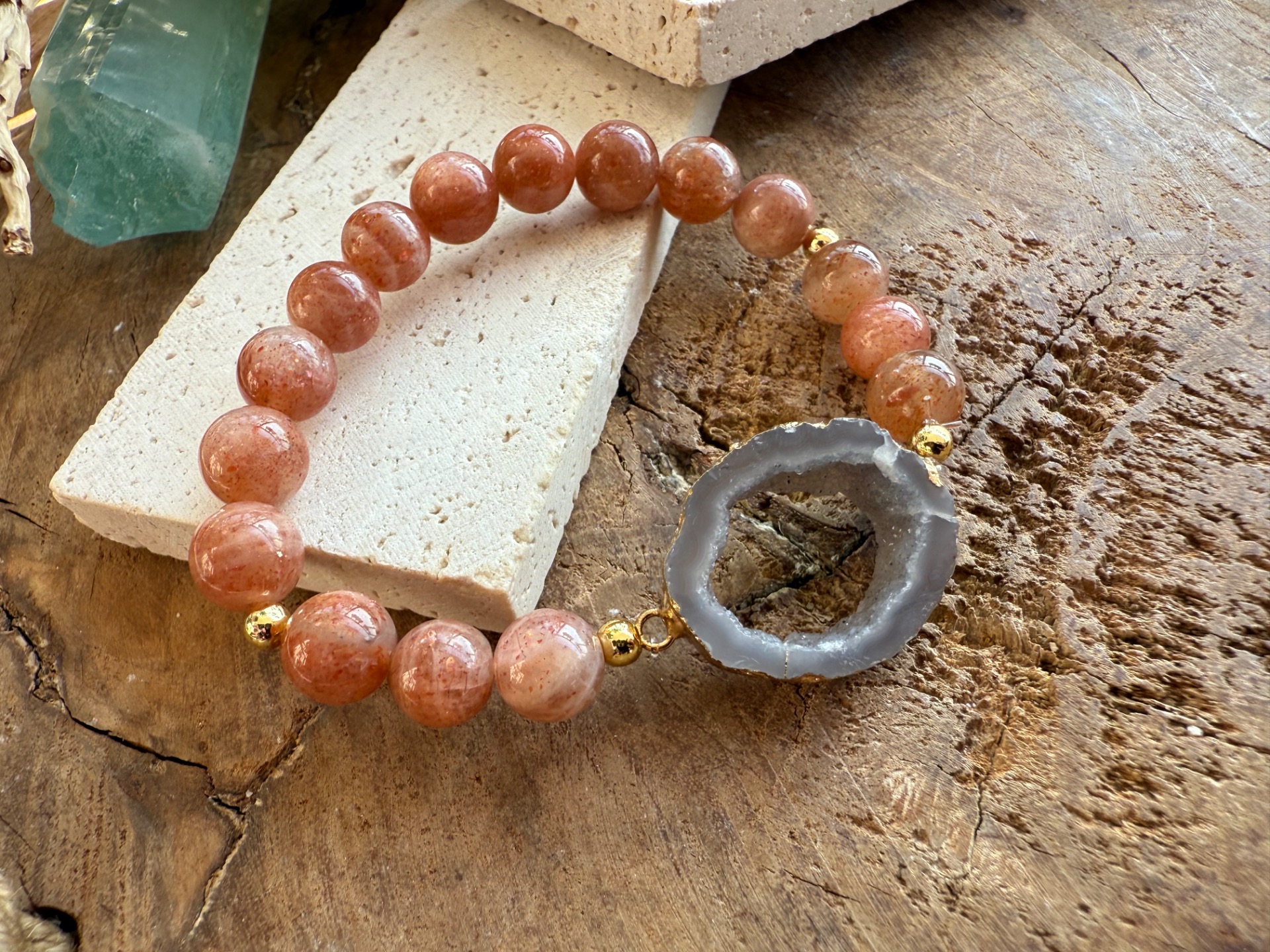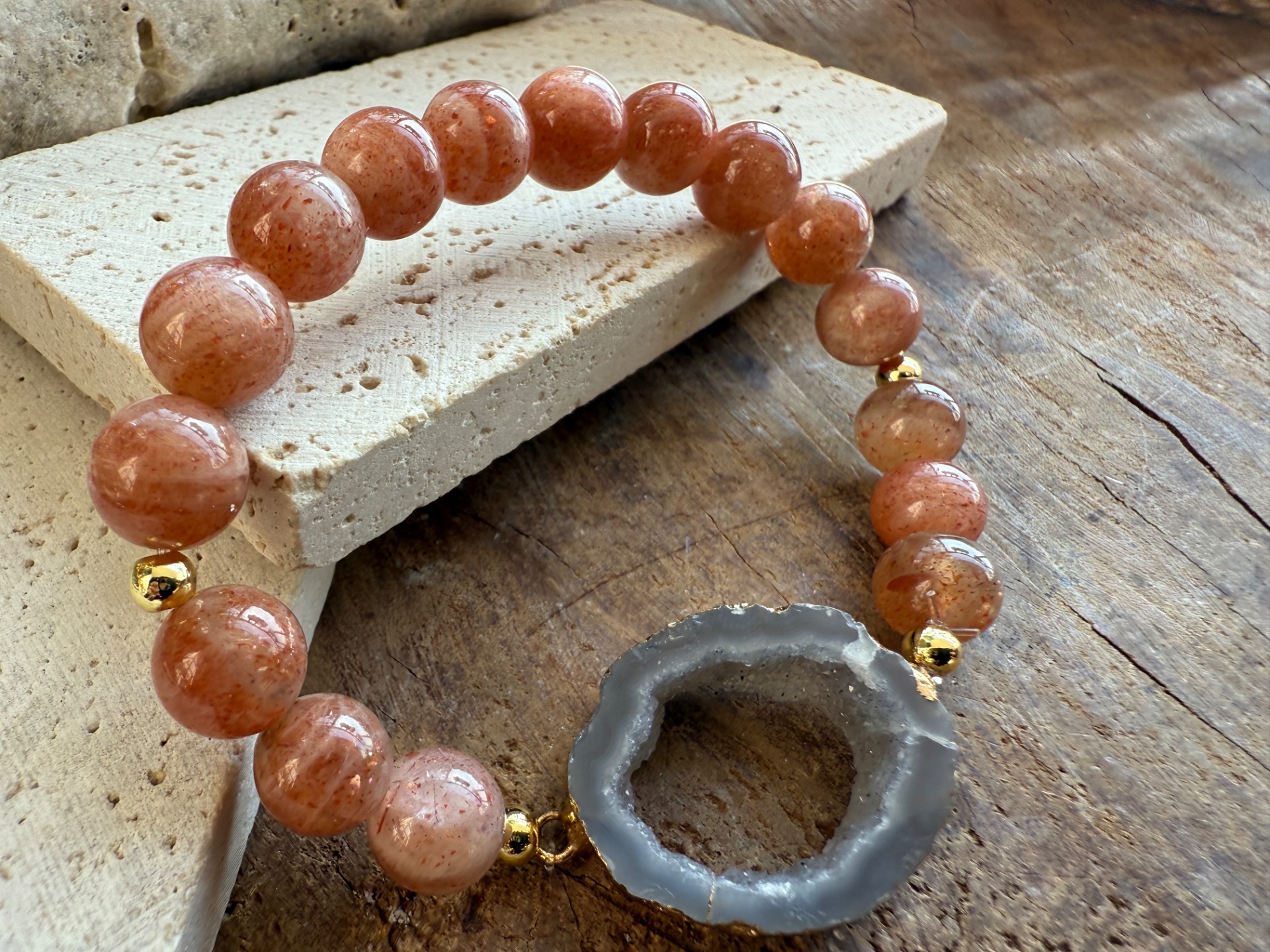 Náramok zo slnečného kameňa a achátovej drúzy