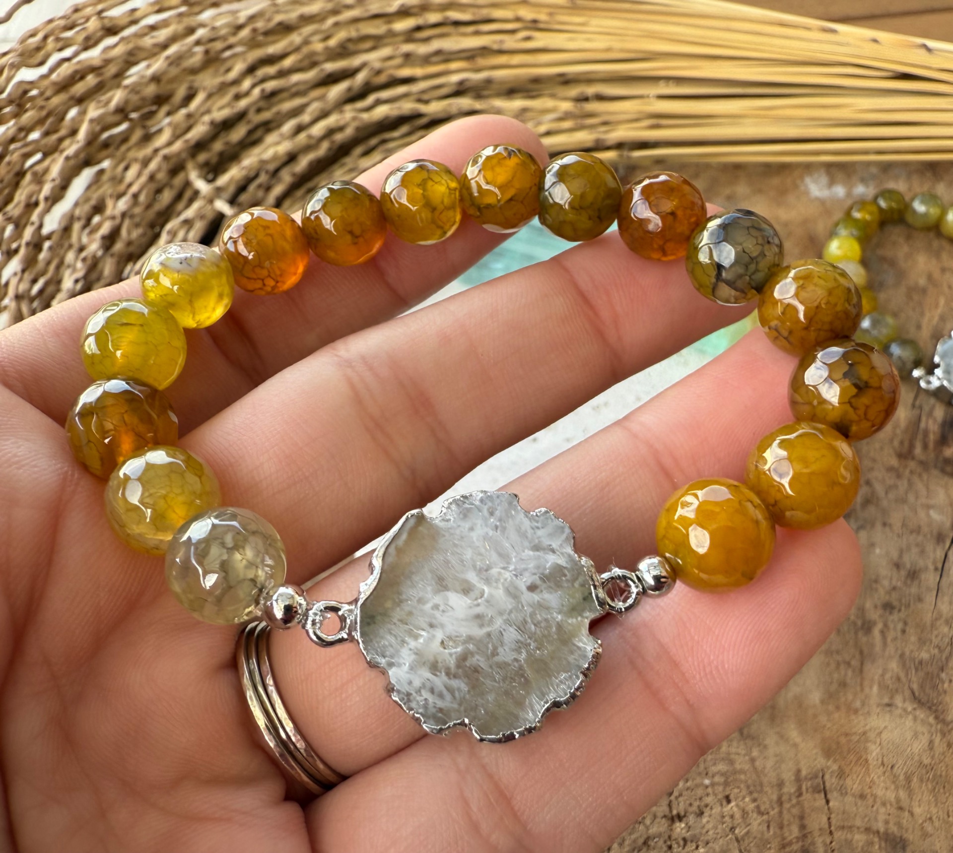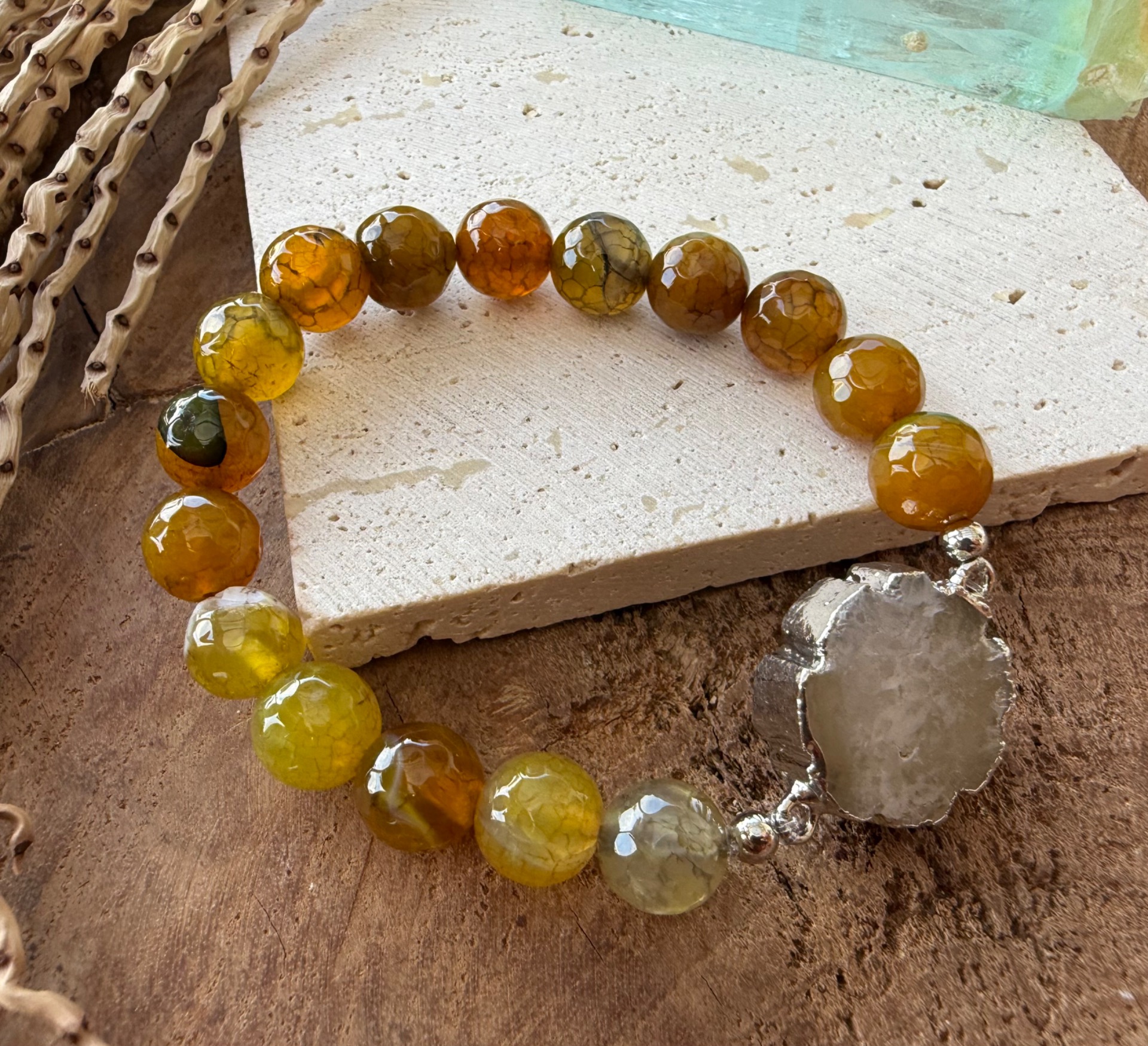 Náramok z minerálu achát pestry+ achát drúza - draco