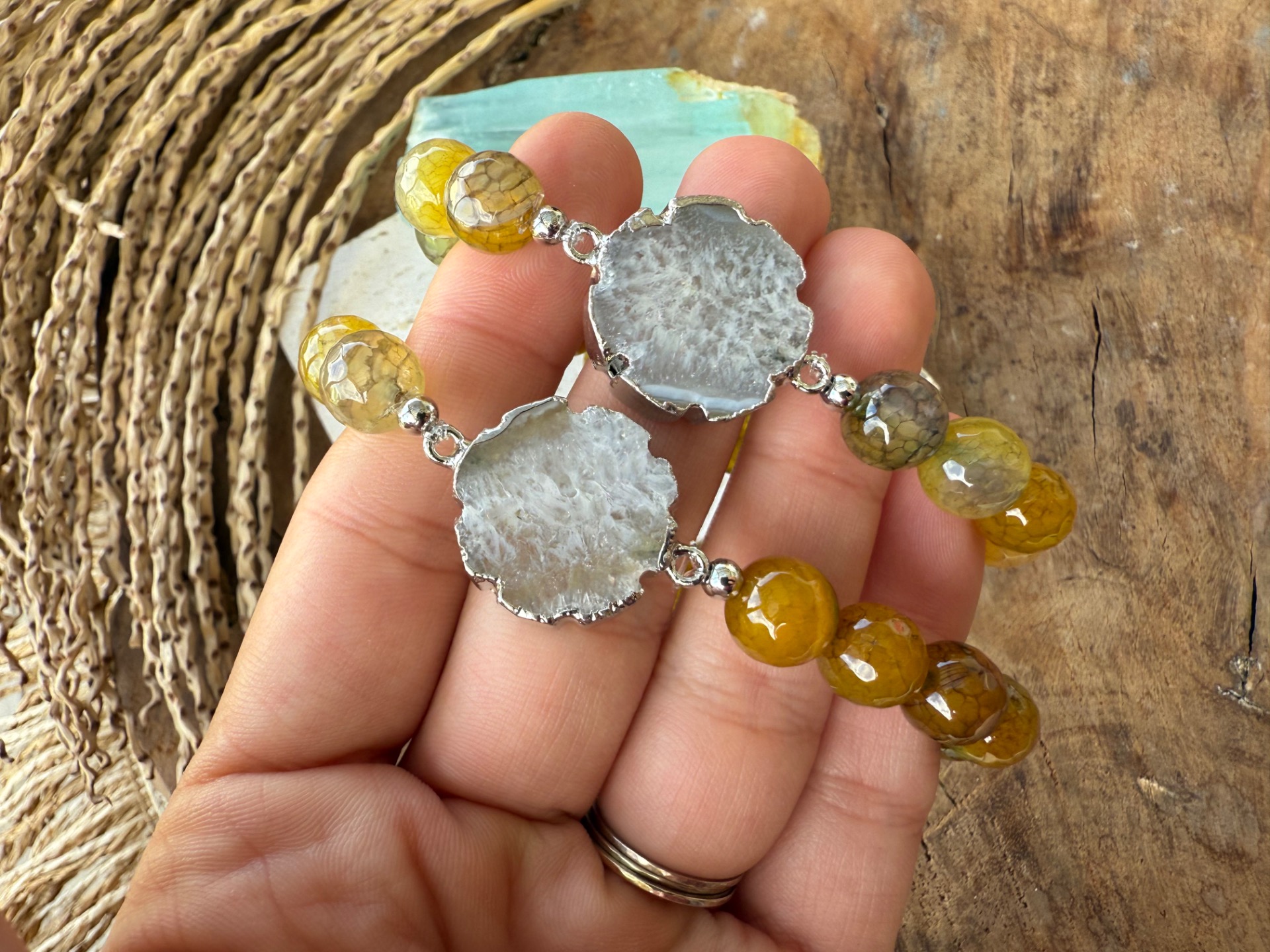 Náramok z minerálu achát krajkový 10mm, doplnený achátovou drúzou v striebornom okove.
