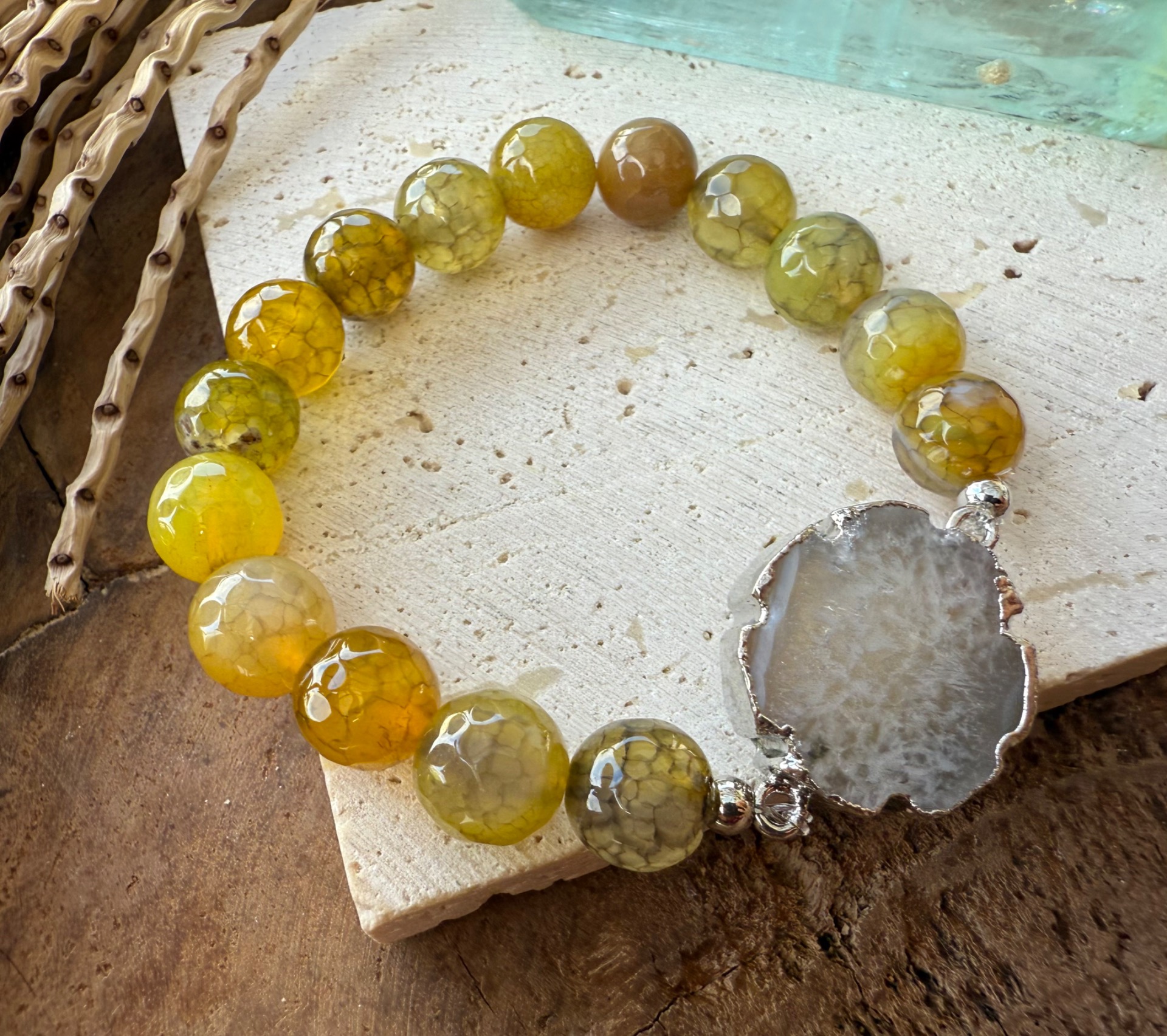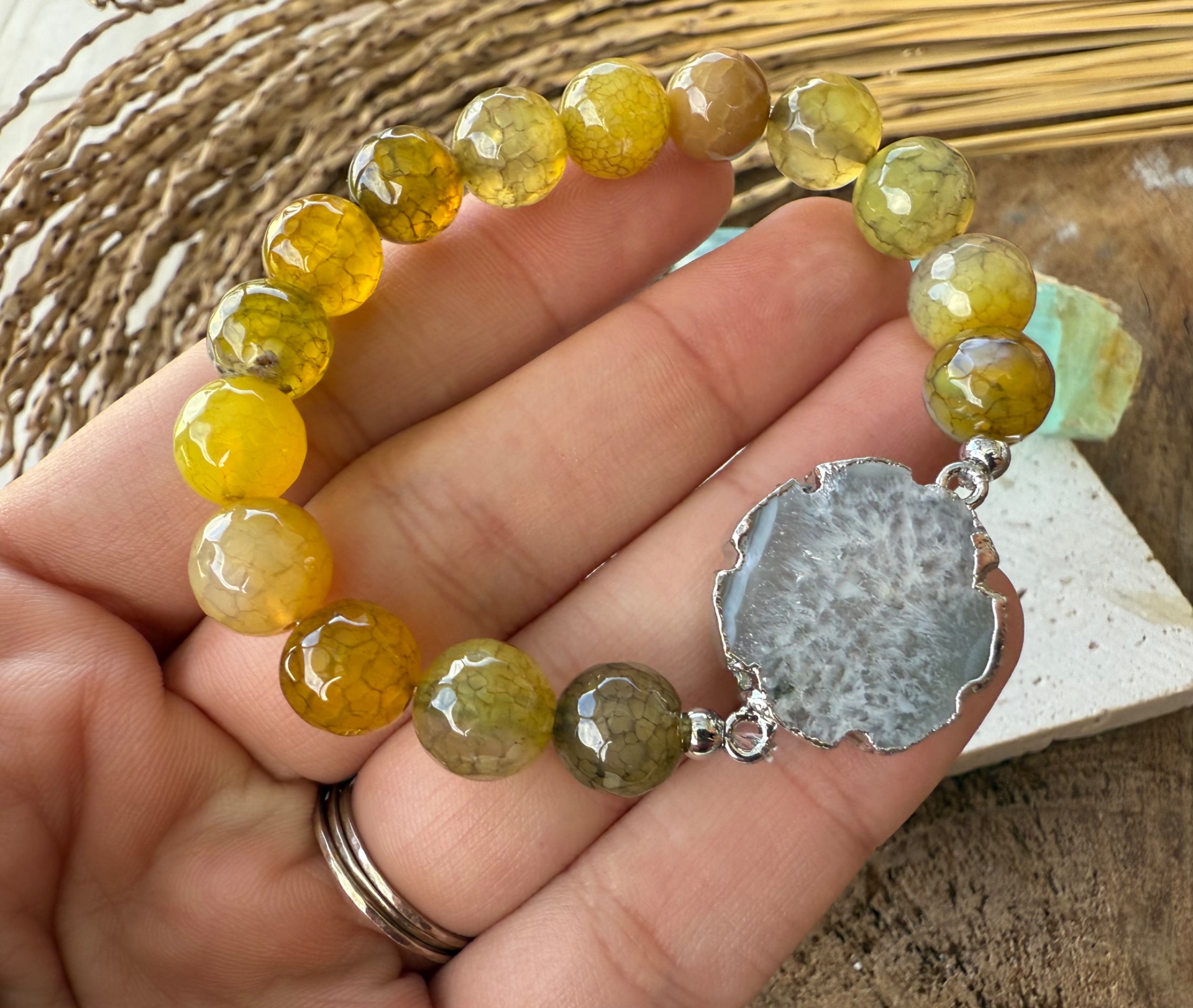 Náramok z minerálu achát krajkový 10mm, doplnený achátovou drúzou v striebornom okove.