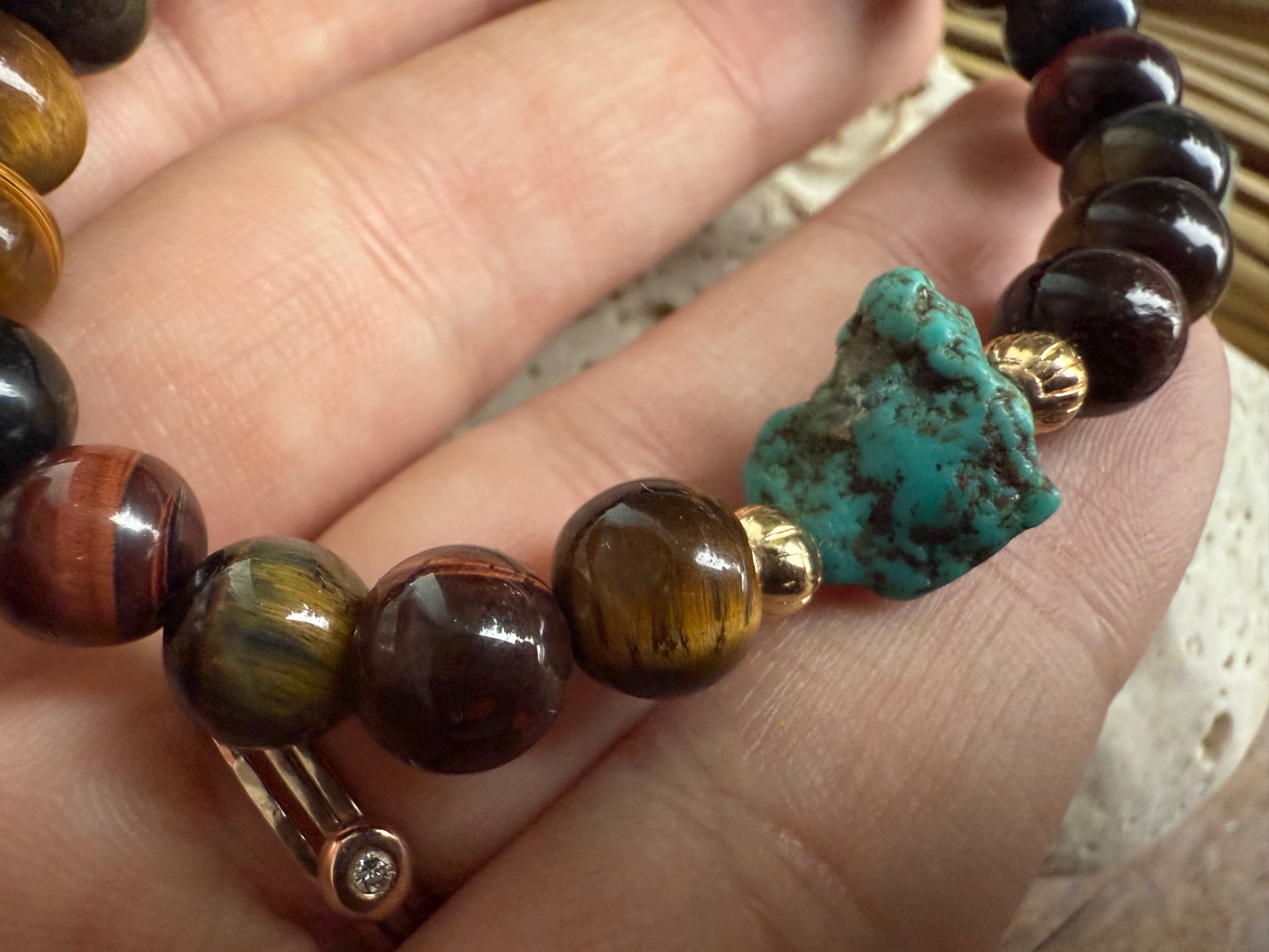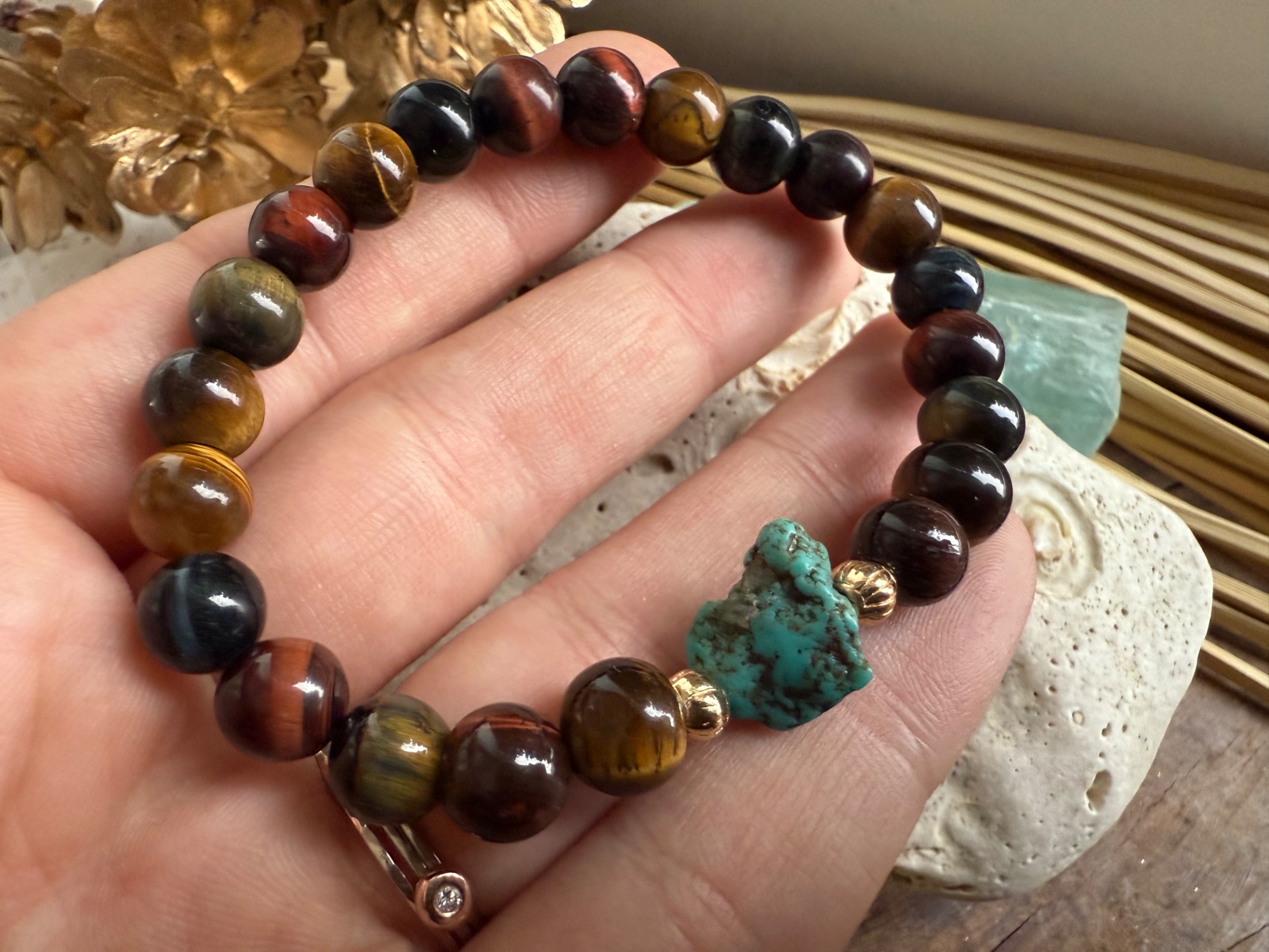 Náramok "Oko Strážcu" – Tigrie oko, Býčie oko, Sokolie oko & Tyrkys Hubei