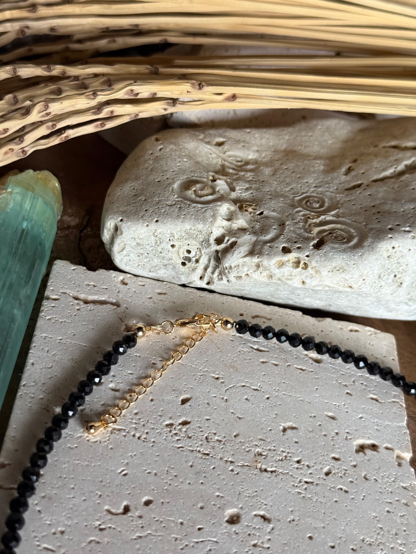 - Čierny Spinel (4 mm fazetovaný) – majster ochrany a uzemnenia. Spinel je silne antistresový kameň, ktorý odvádza negatívnu energiu a posilňuje osobnú silu. Podporuje stabilitu, ochranu rodiny a bezpečnosť v každodennom živote. Jeho elegantný čierny fazetovaný brús dodáva šperku sofistikovaný lesk a dynamiku.