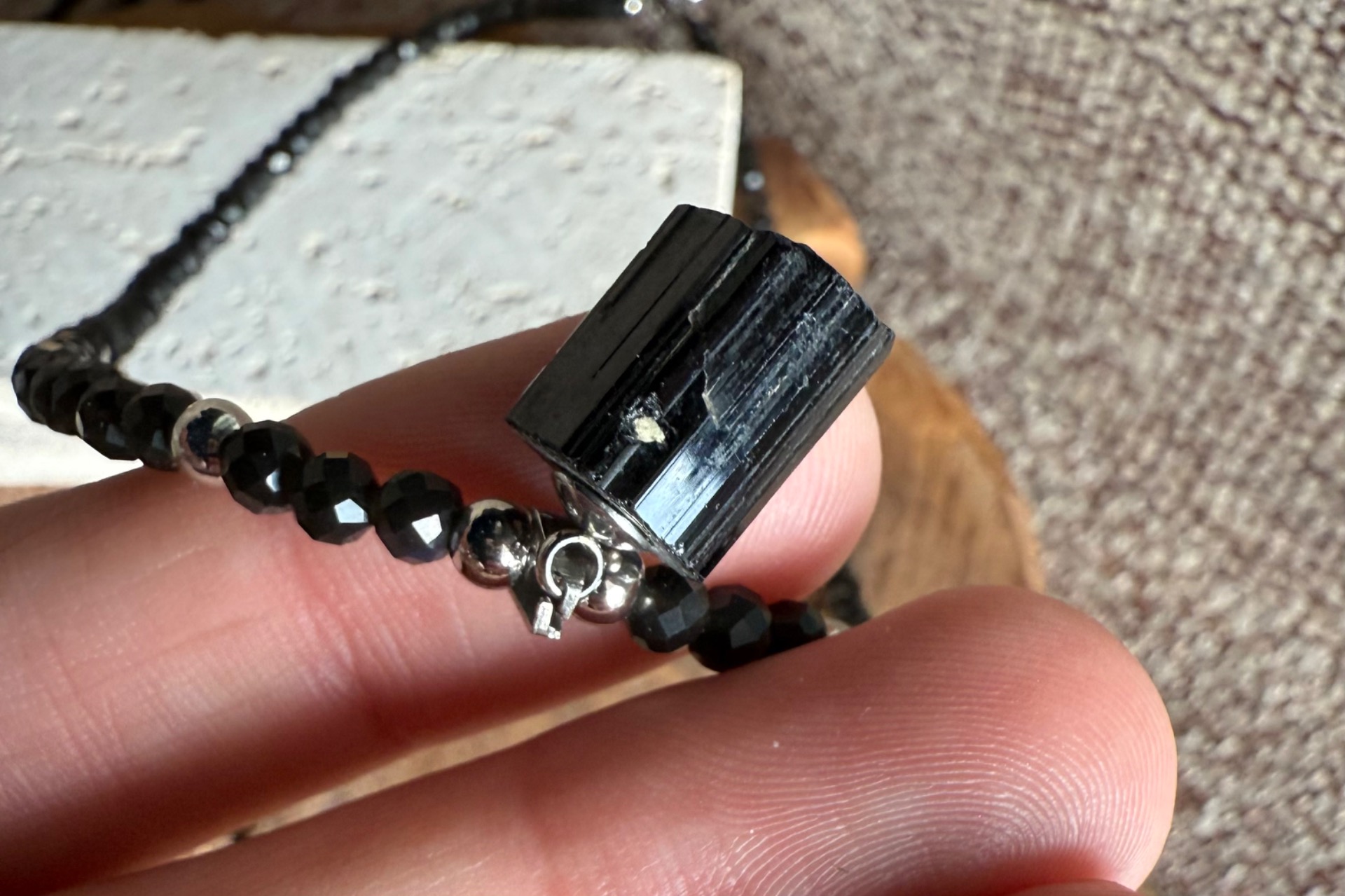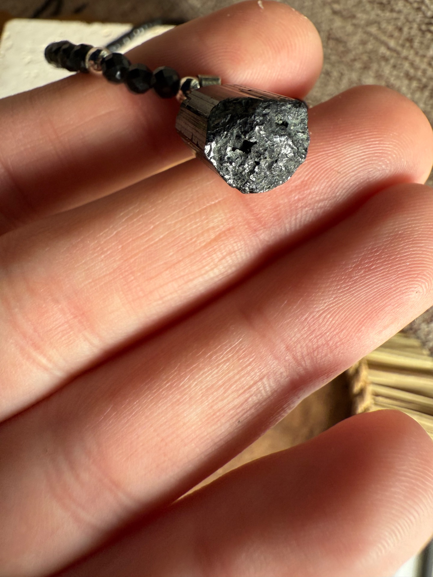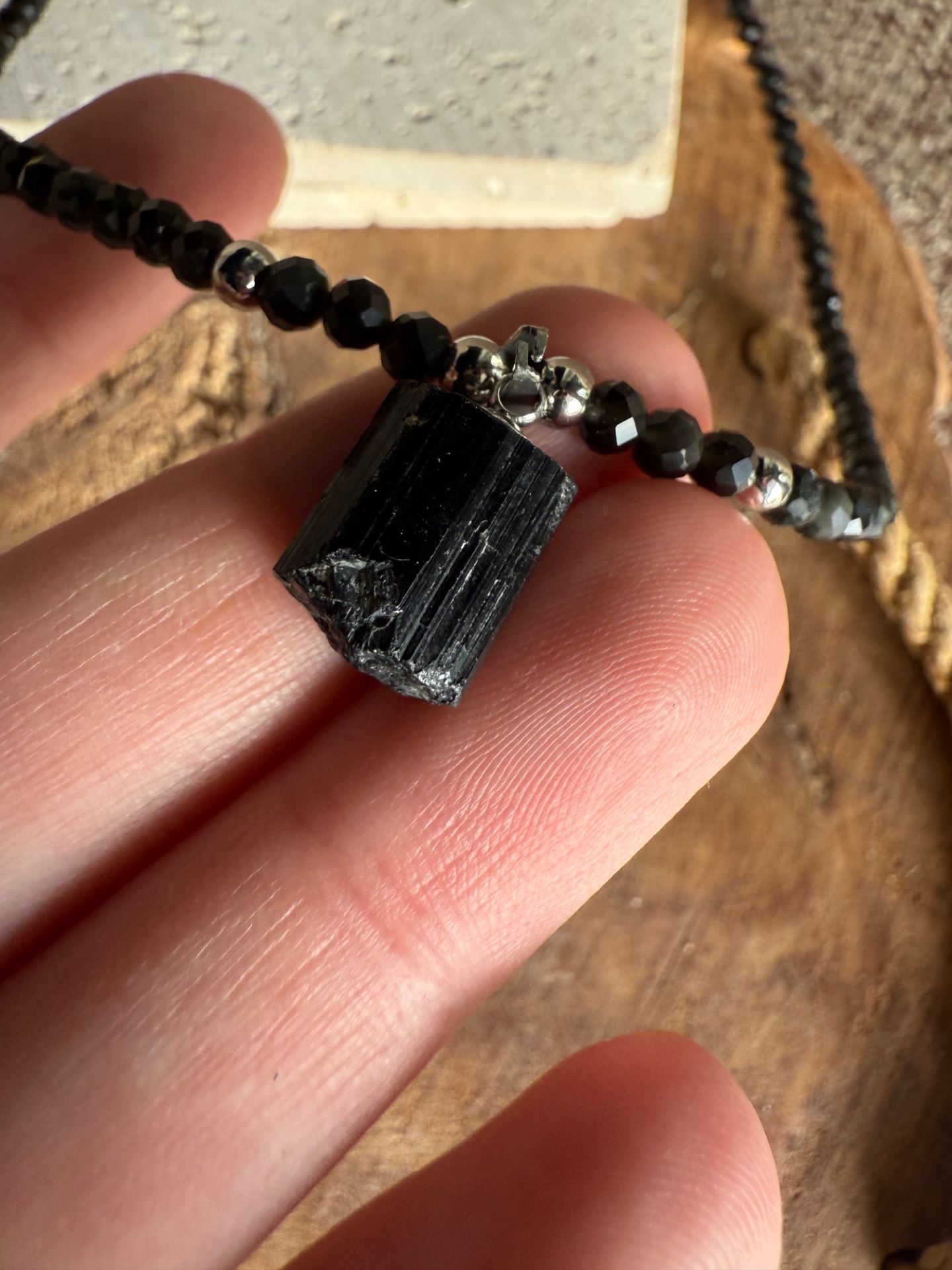 Mini prívesok z čierneho turmalínu pôsobí ako tichý ochranný symbol, ktorý ťa sprevádza počas dňa.