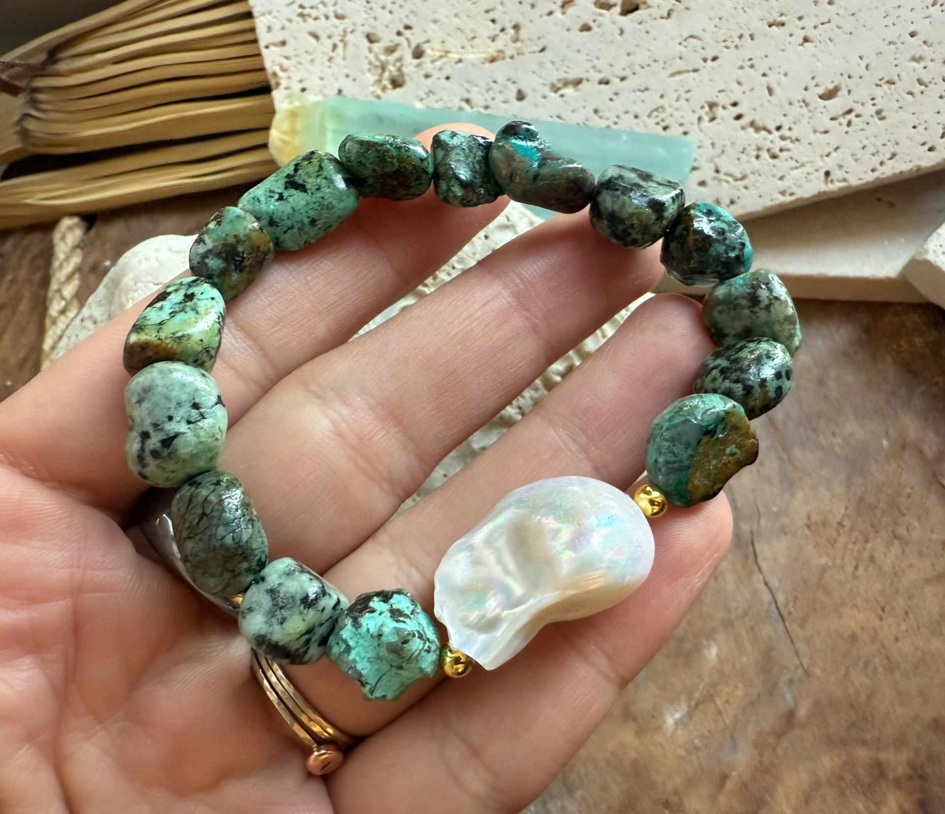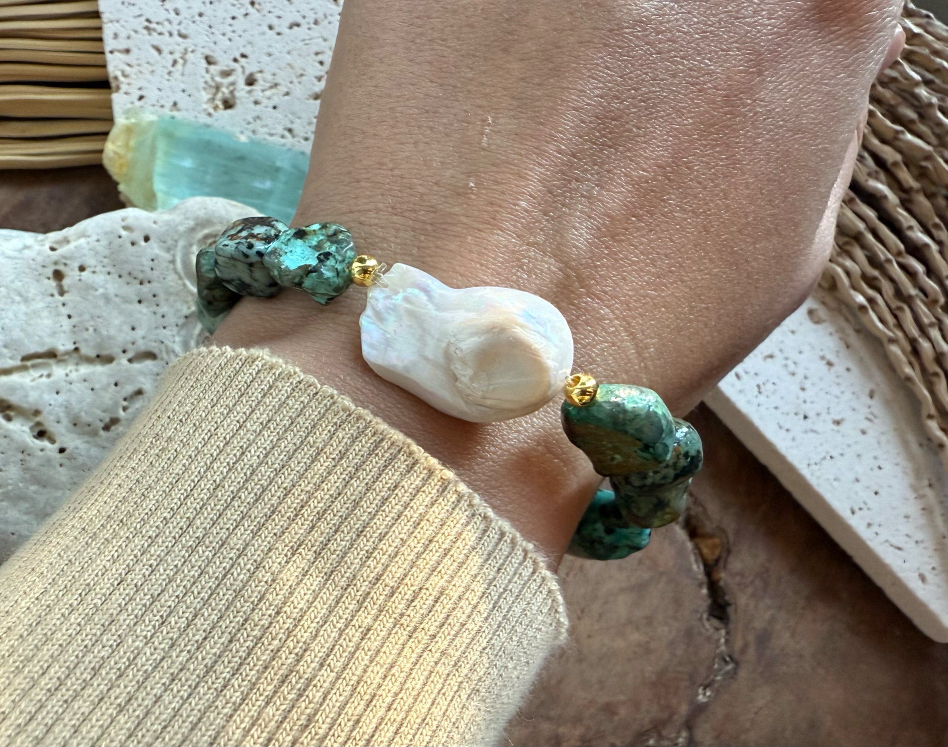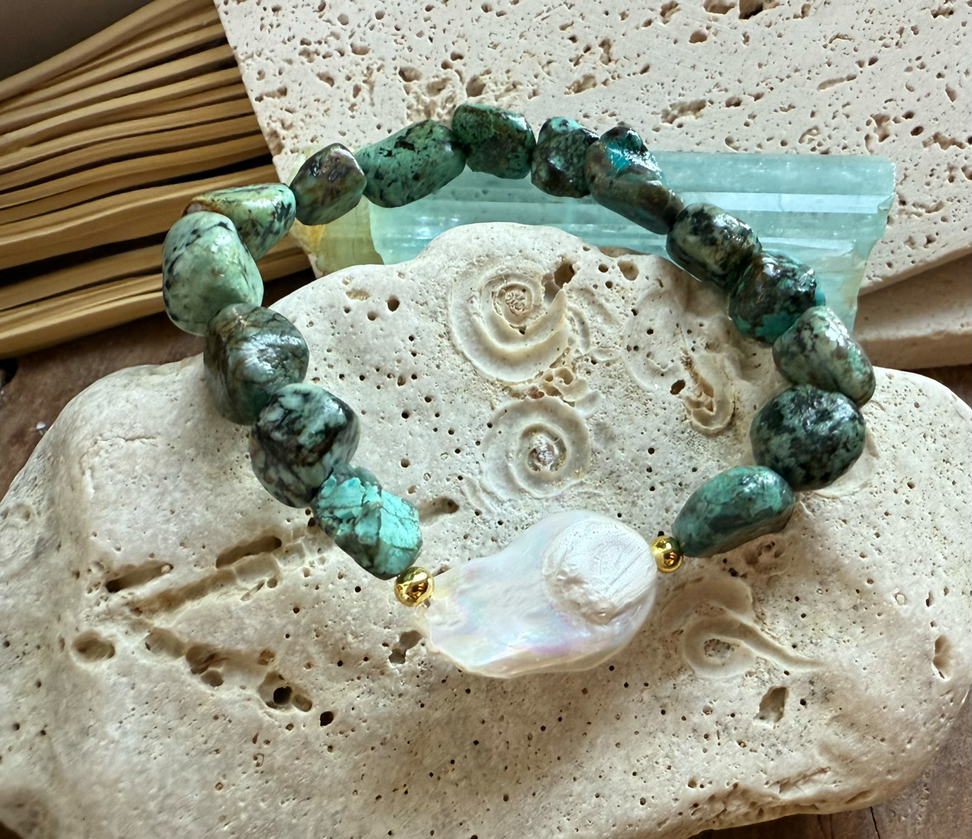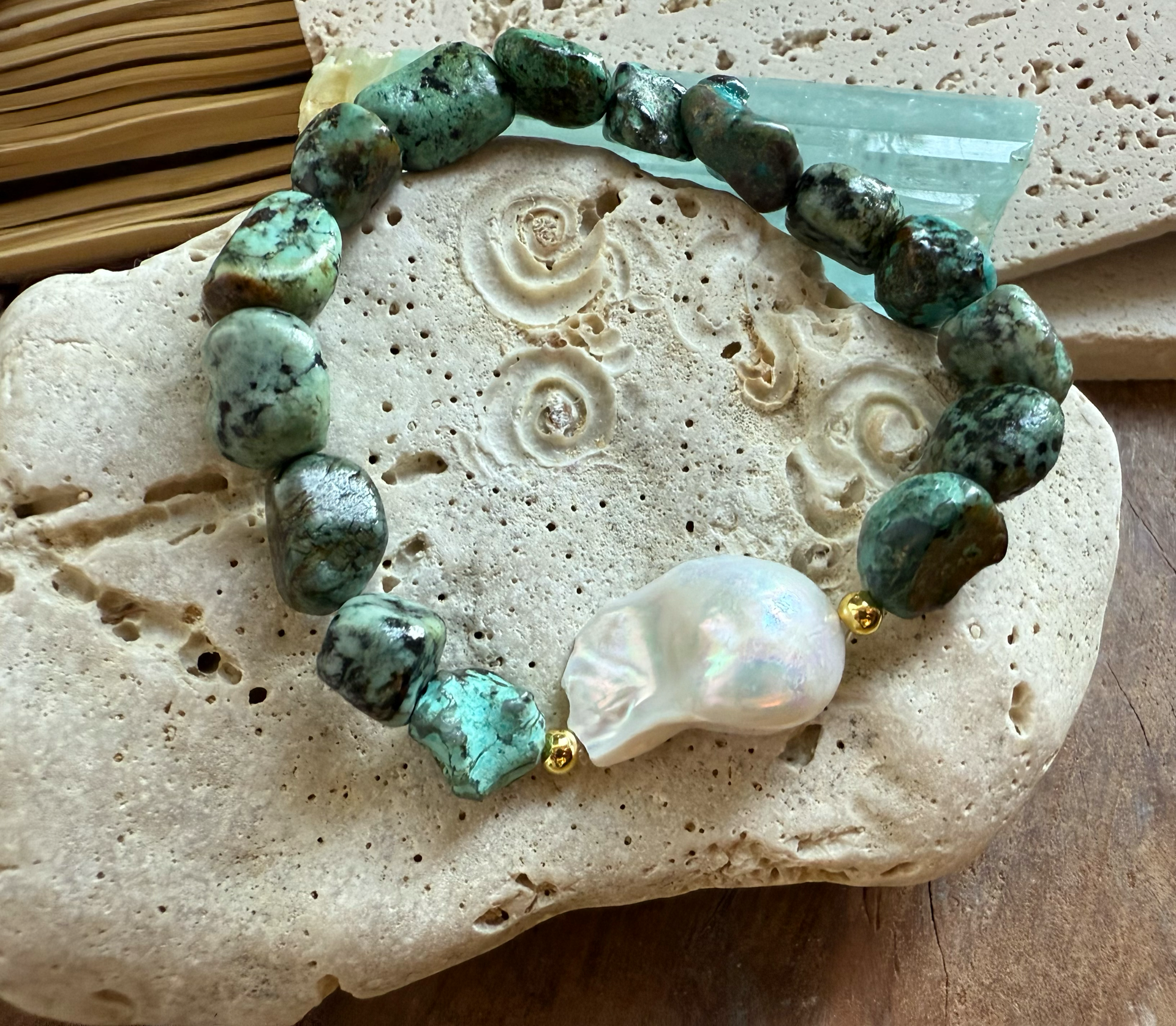 Náramok z afrického tyrkysu a barokovej perly – Ocean Vibe