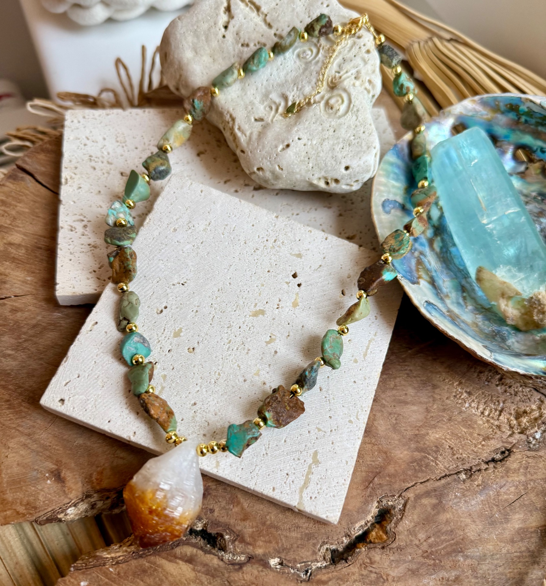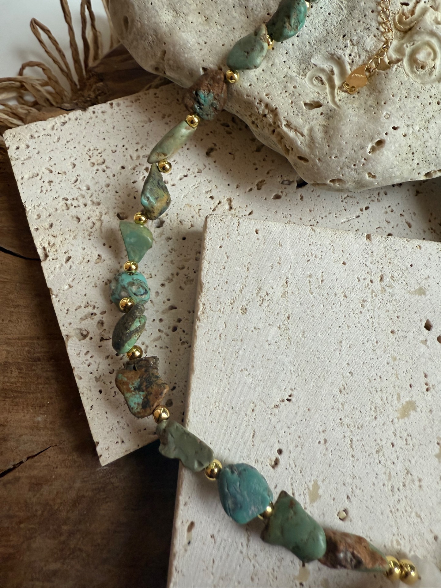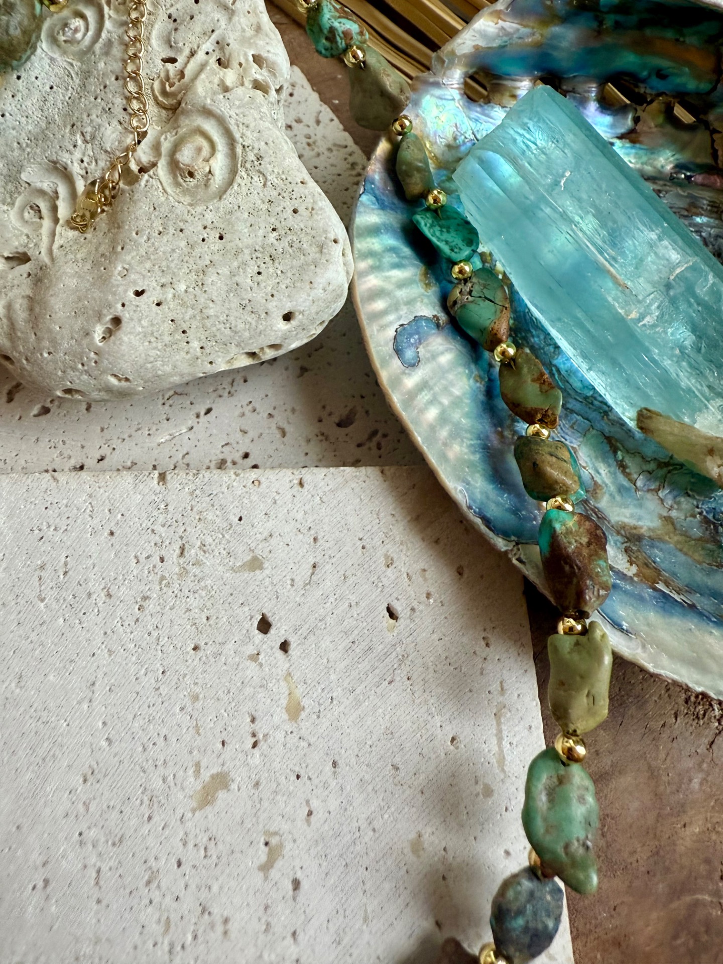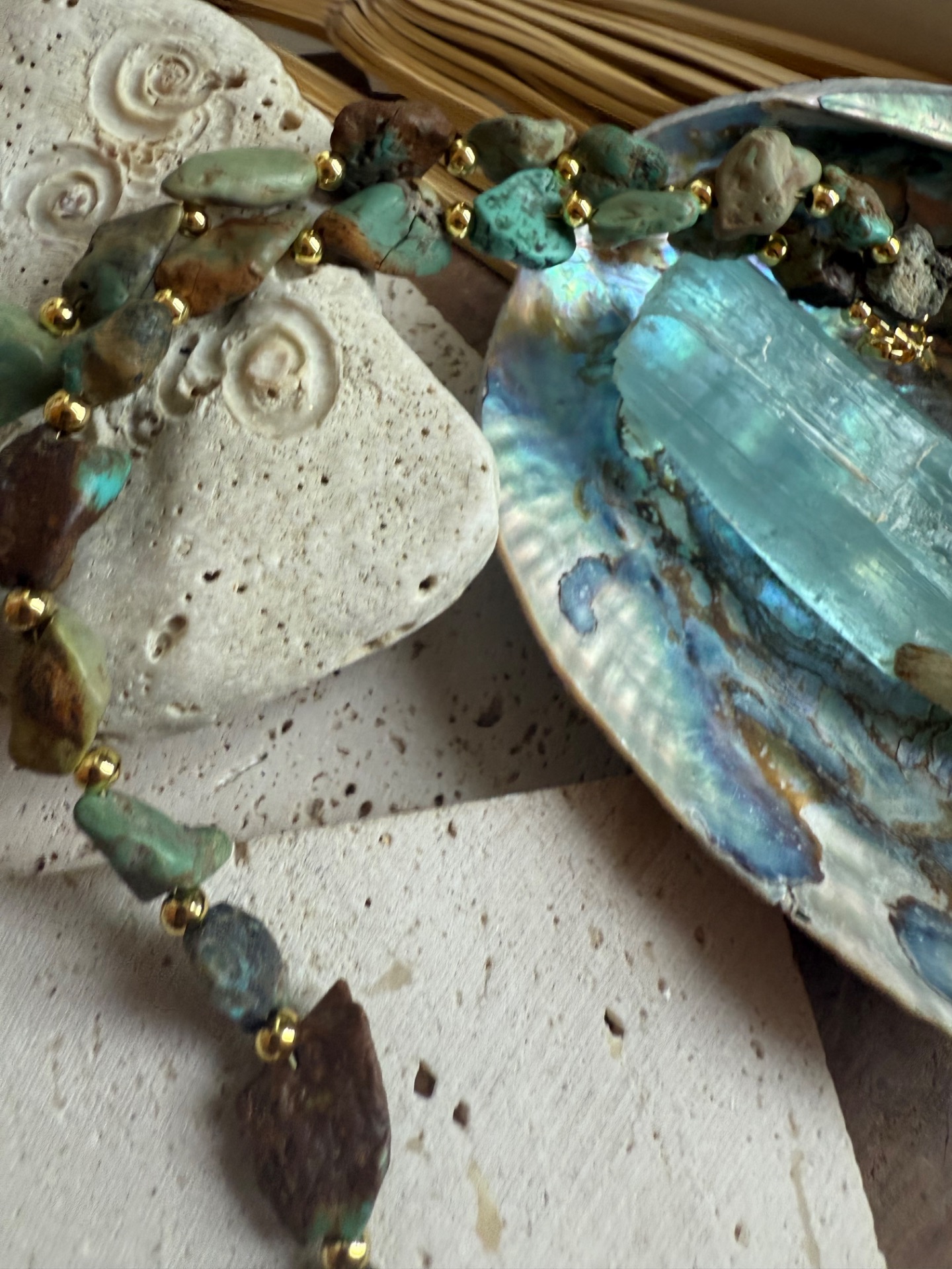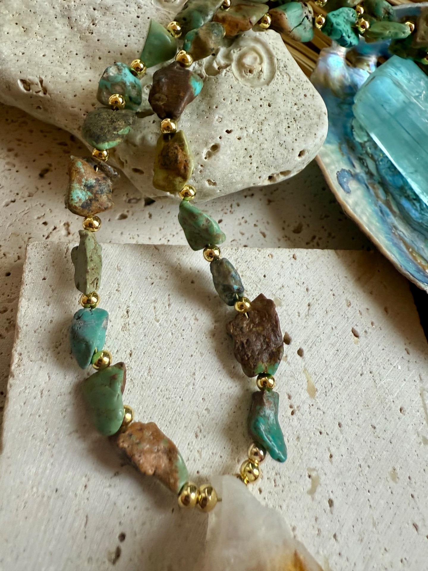 Krátky náhrdelník zo surového tyrkysu hubei+citrín surový- liečiteľka