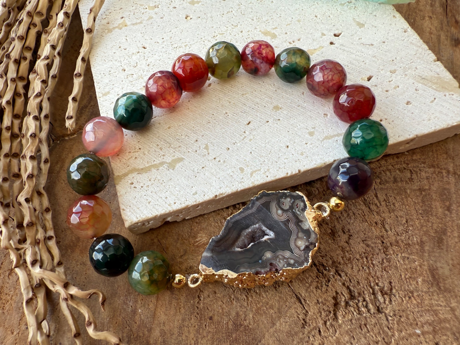 Náramok z farebného achátu +achát drúza -jesenná harmónia č.4