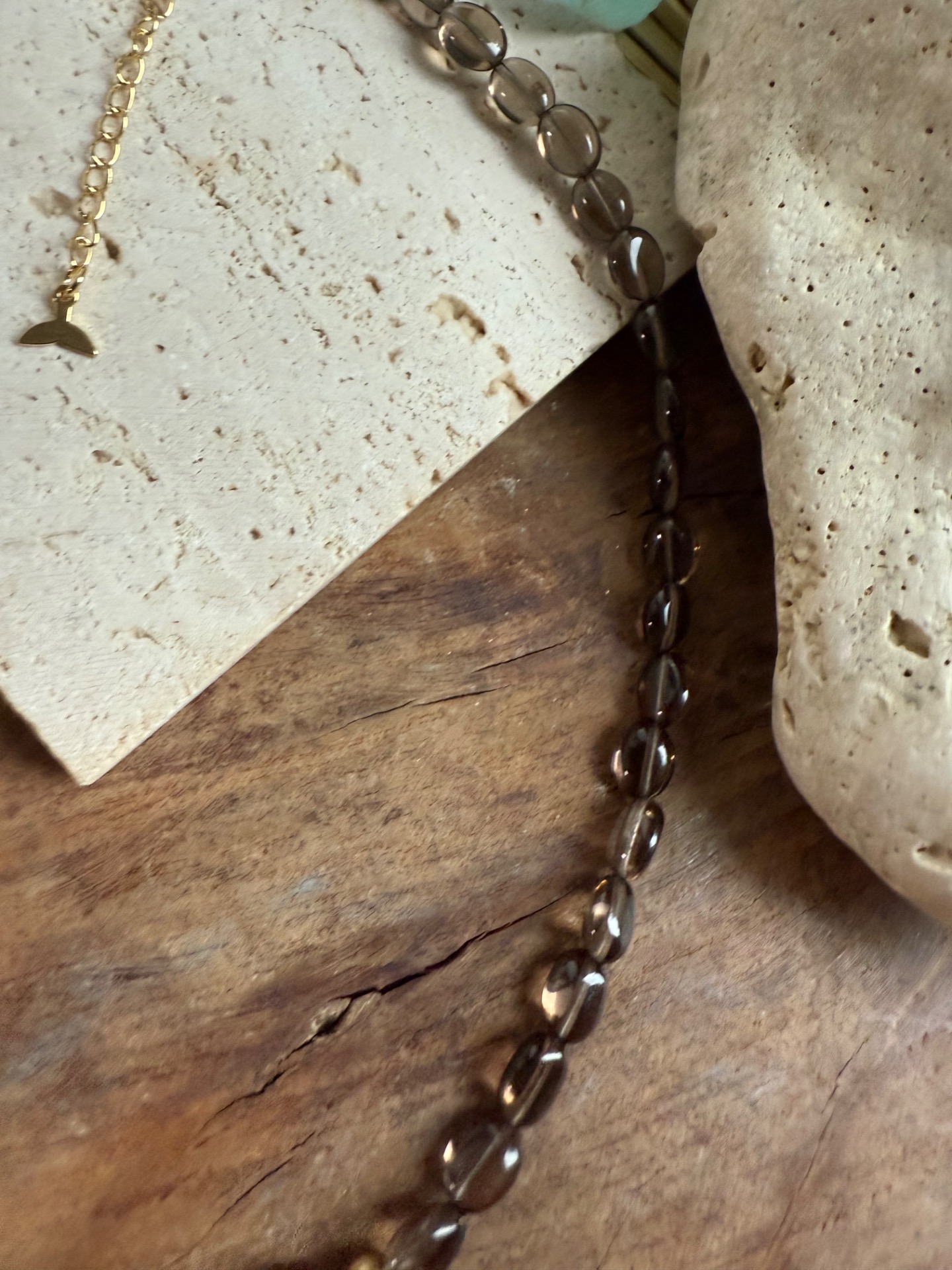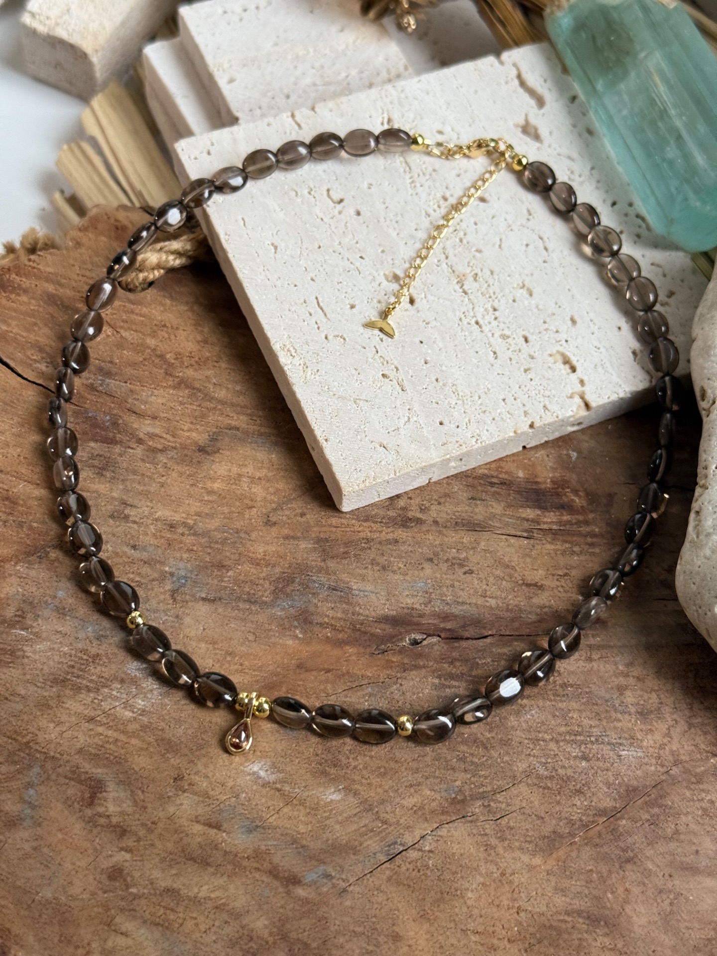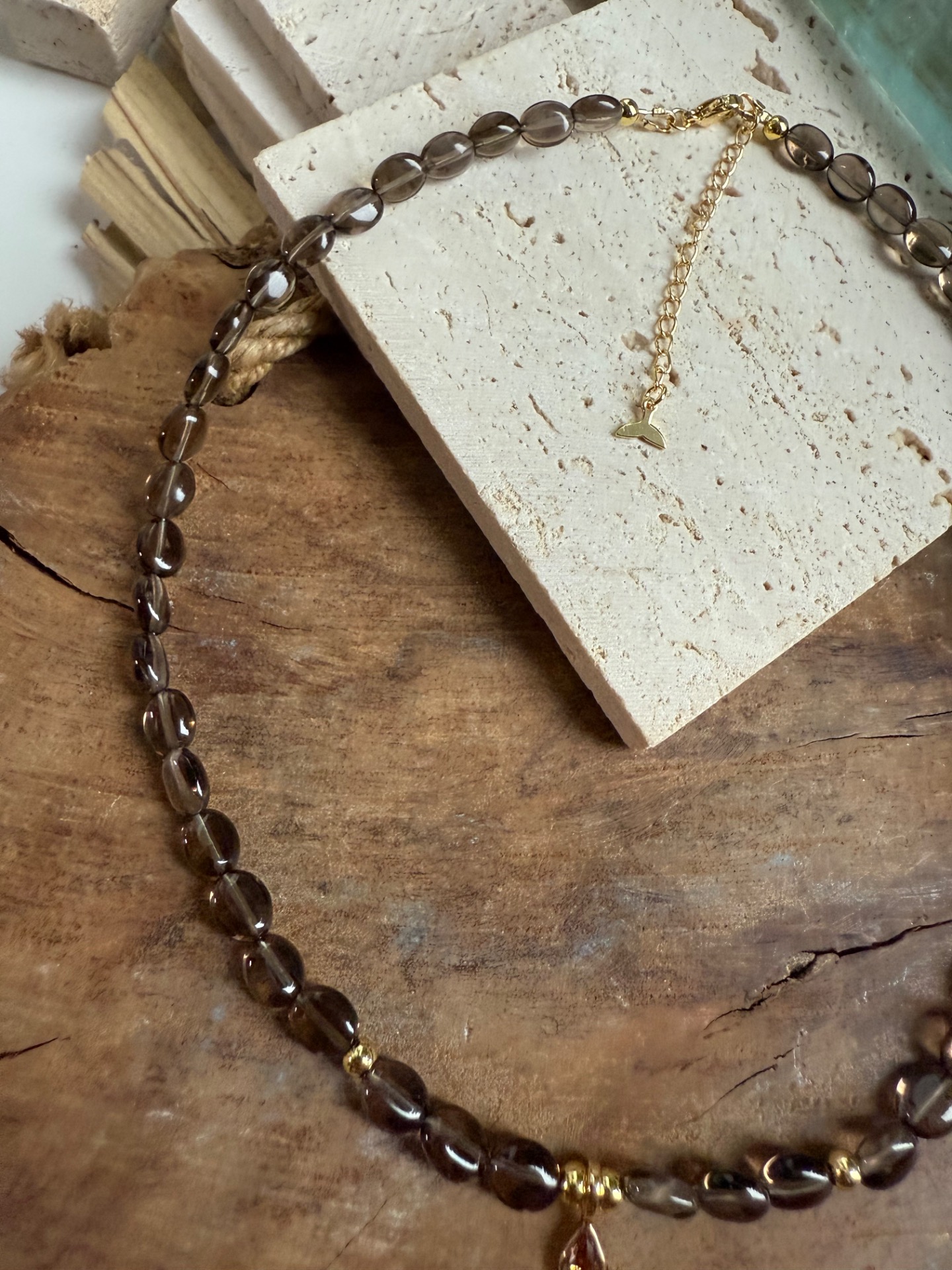 Tento výnimočný krátky náhrdelník zo záhnedy v tvare jemných nugetov nesie v sebe silu Zeme, stabilitu koreňov a pokoj, ktorý cítiš až v tele. Každý kamienok je jedinečný, rovnako ako žena, ktorá ho nosí.