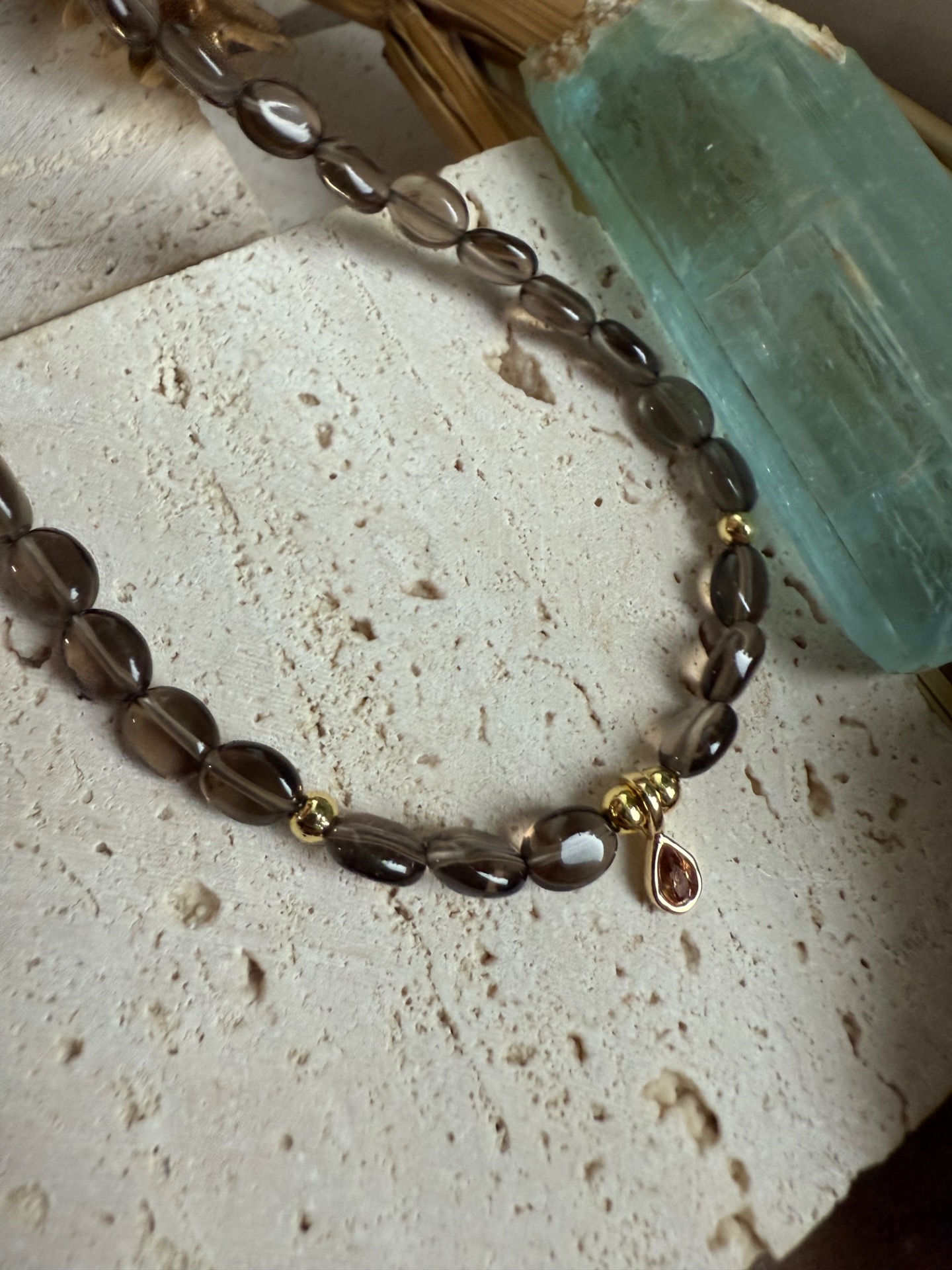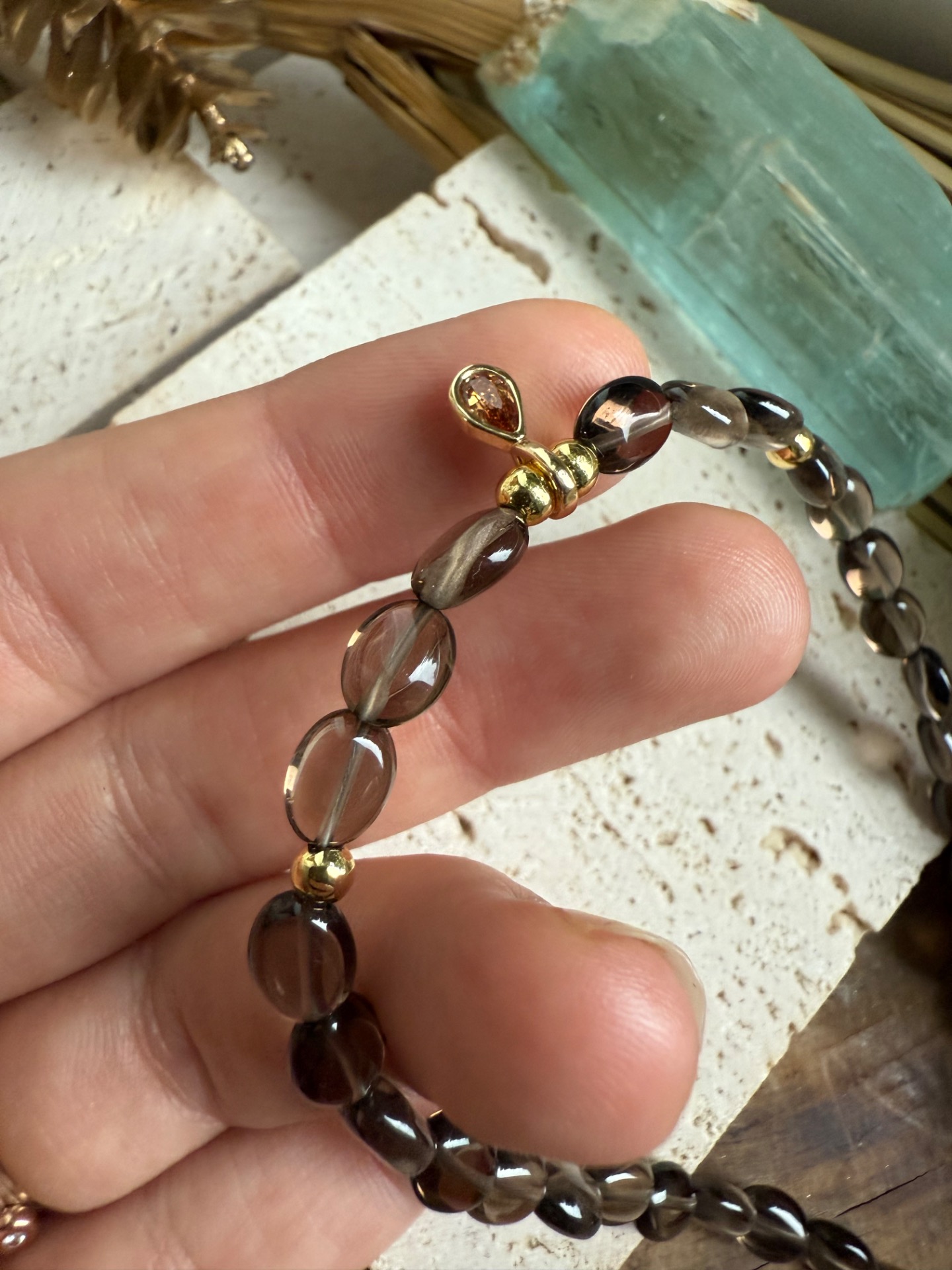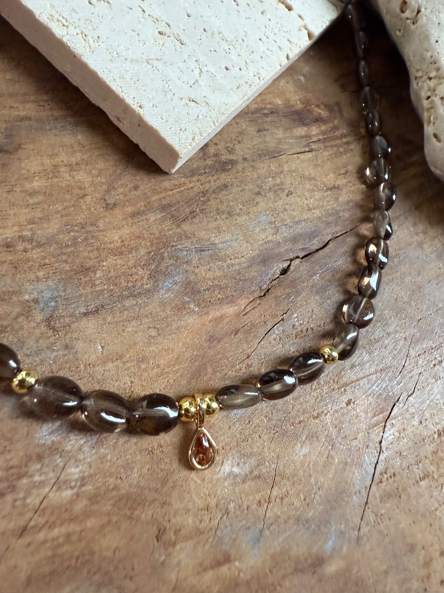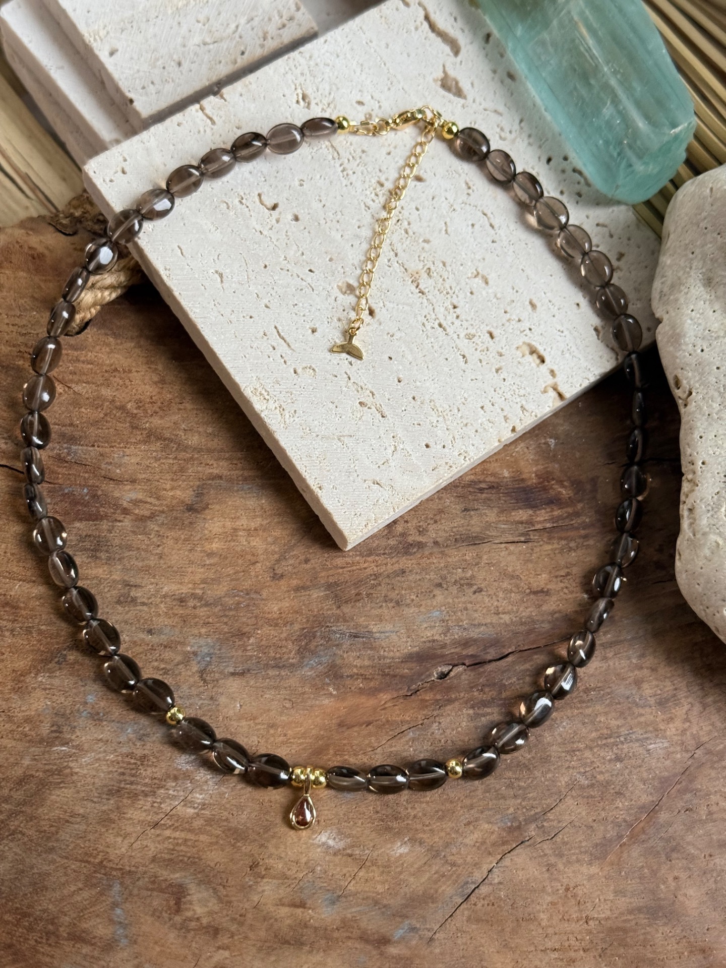 Tento výnimočný krátky náhrdelník zo záhnedy v tvare jemných nugetov nesie v sebe silu Zeme, stabilitu koreňov a pokoj, ktorý cítiš až v tele. Každý kamienok je jedinečný, rovnako ako žena, ktorá ho nosí.